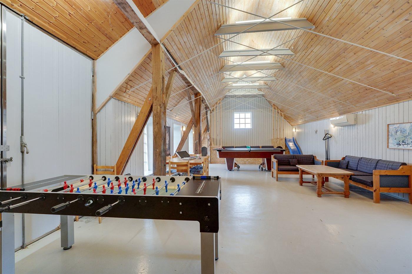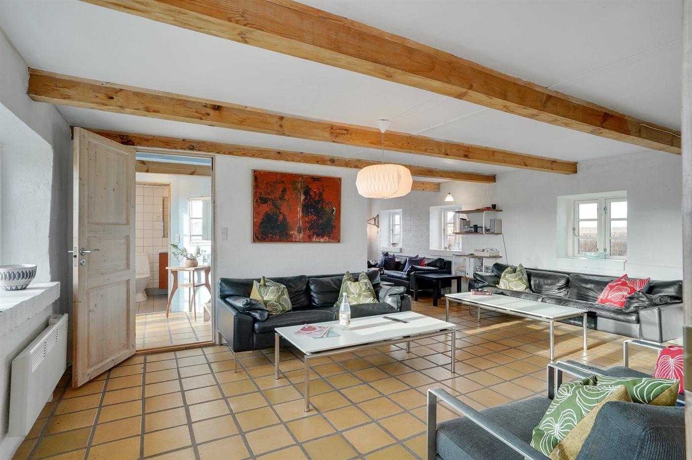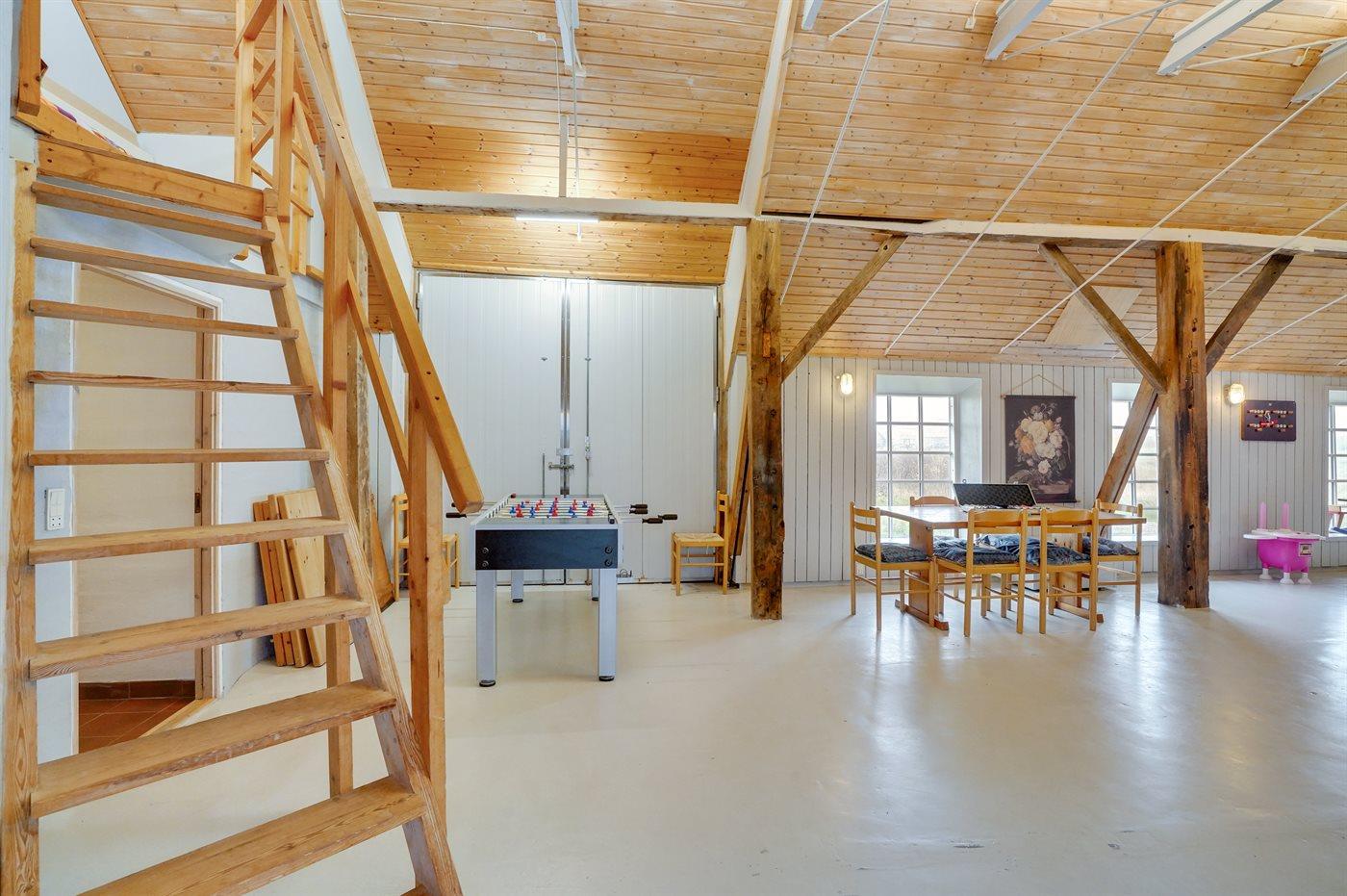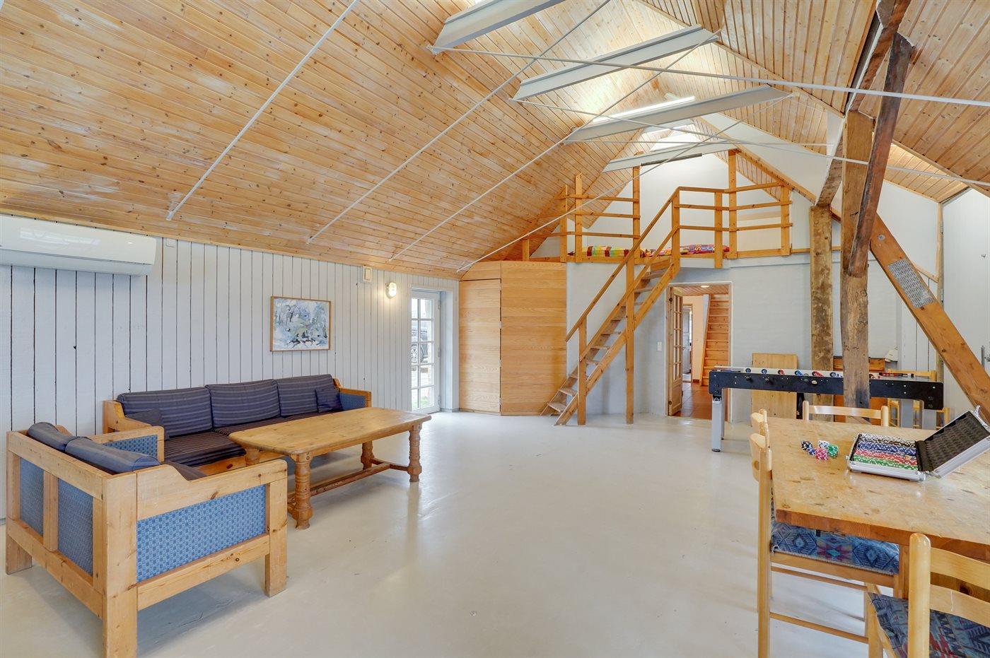 Anneksbygningen indeholder 10 sovepladser fordelt i 4 rum. Det største rum på 25 m2 egner sig fortrinligt til familier med børn som vil nyde at sove på den åbne hems, eller hele familien kan være samlet til fælles hygge sofagruppen. Desuden er der en entre og et badeværelse.