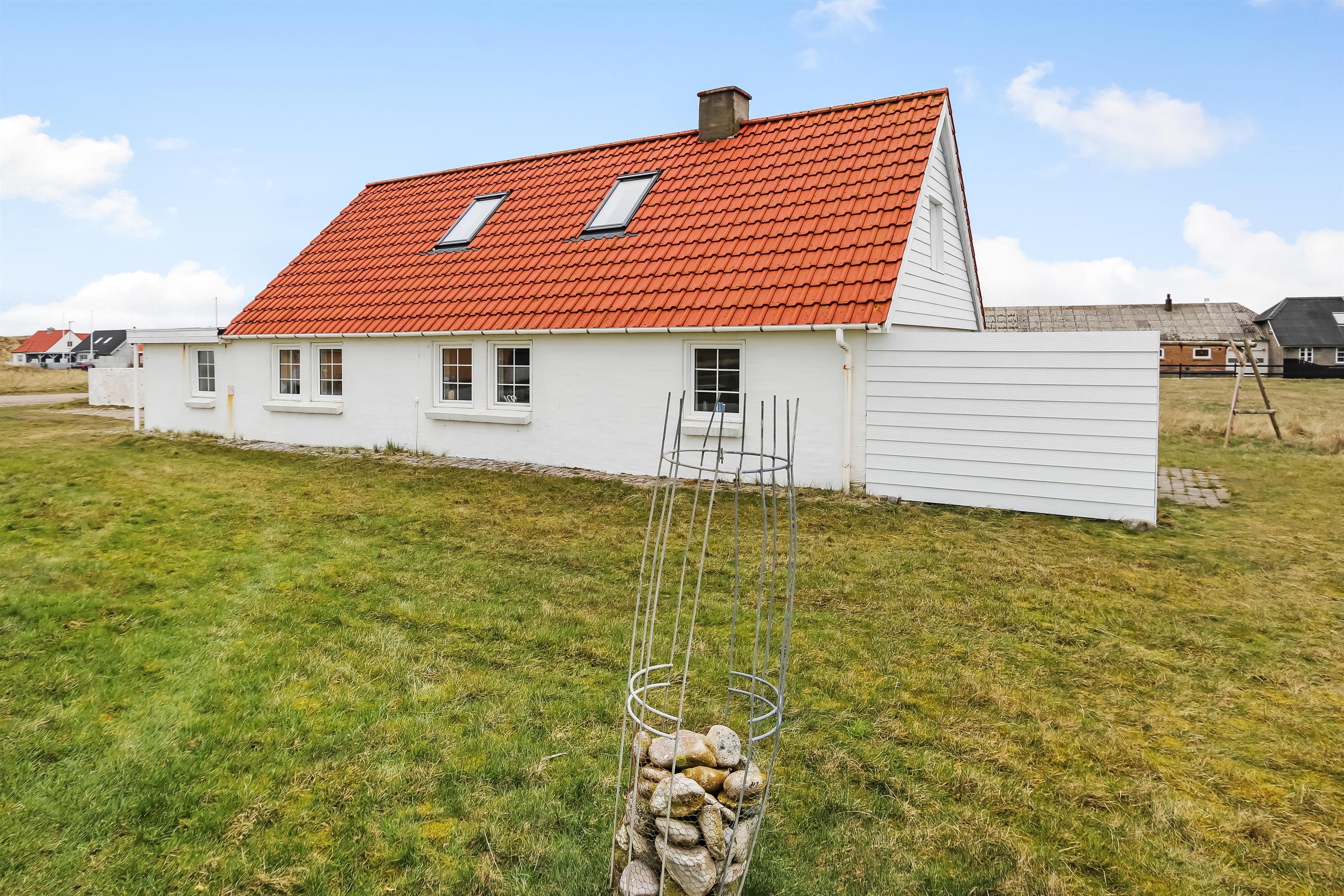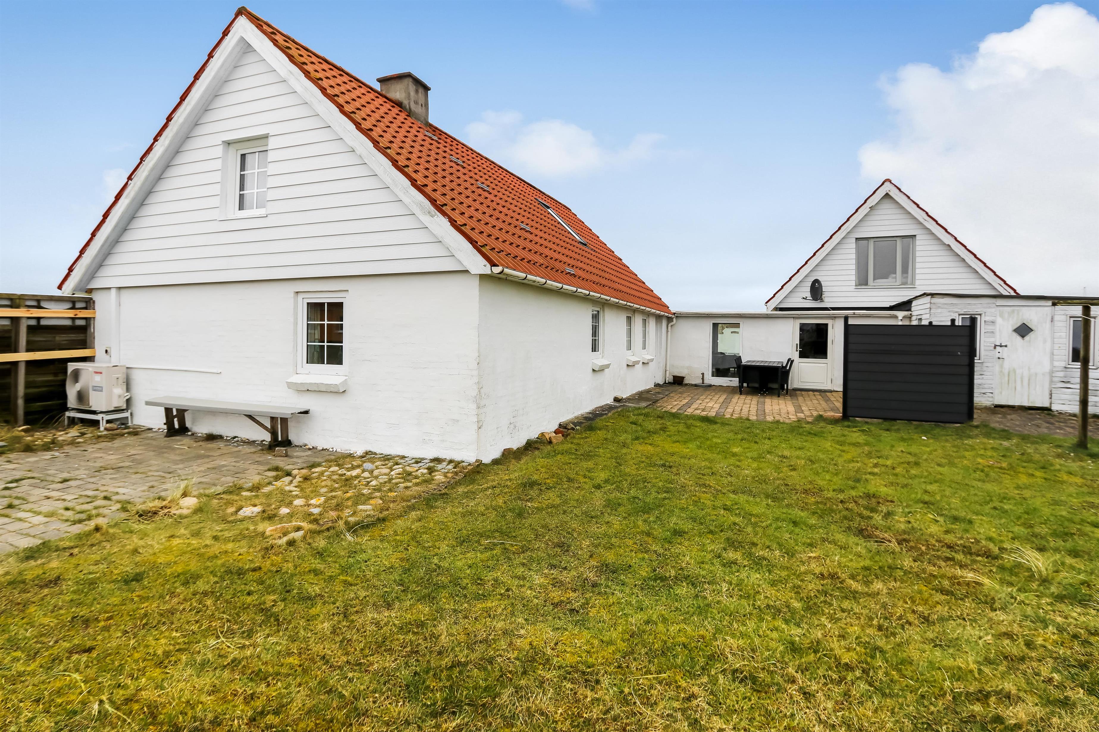 Huset ligger ved t-krydset i langerhuse. Vesterhavet nås let til fods. Bagved huset er der en dejlig terrasse med havemøbler, grill og udsigt over landskabet. Terrassen er lavet i hjørnet mellem 2 bygninger og byder altid på dejlige læforhold. På grunden er der flere bygninger, som ikke bebos men der er kun hovedhuset som udlejes. Et rustik hus i gammel stil som tilbyder hyggelig atmosfære