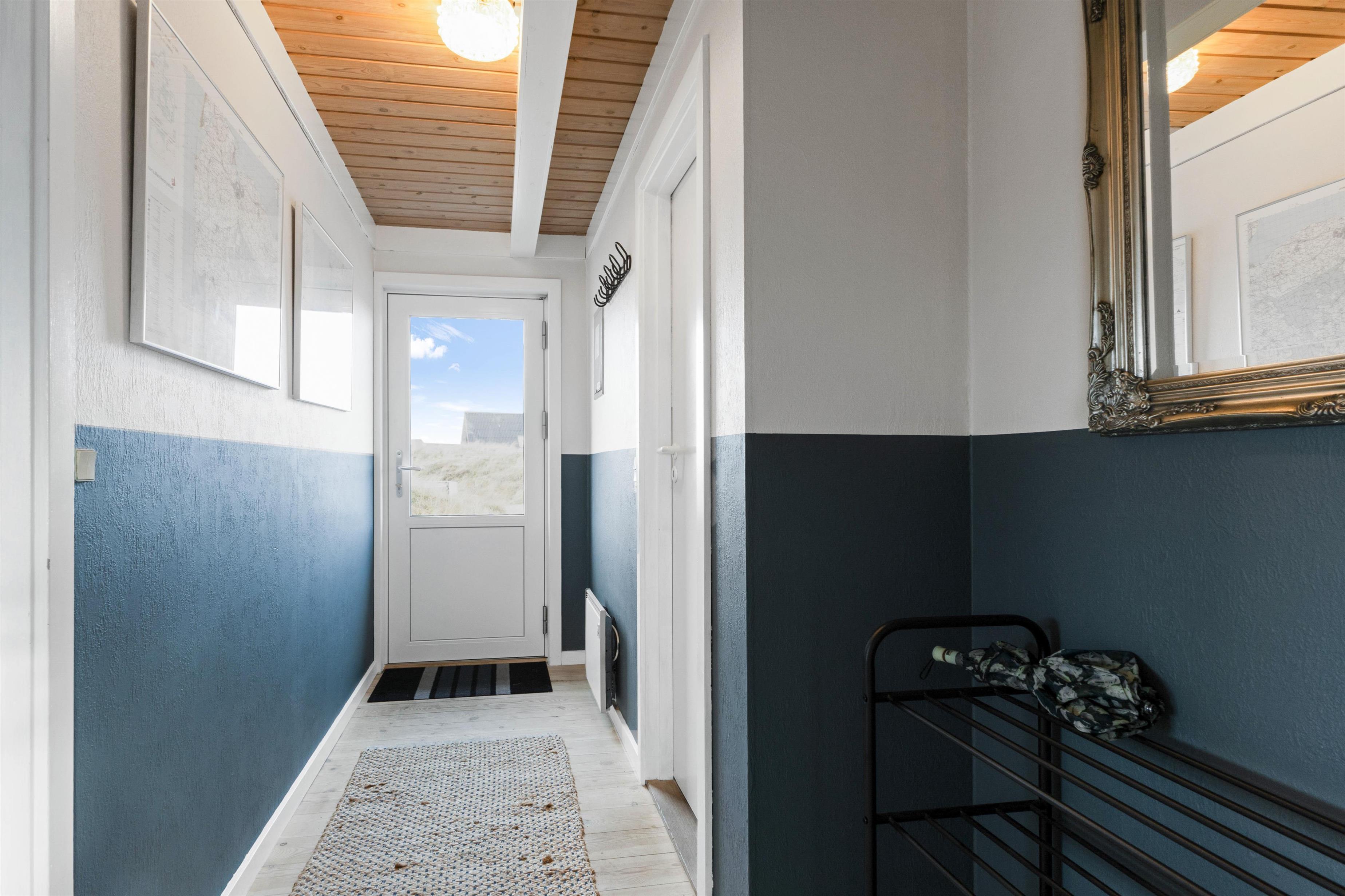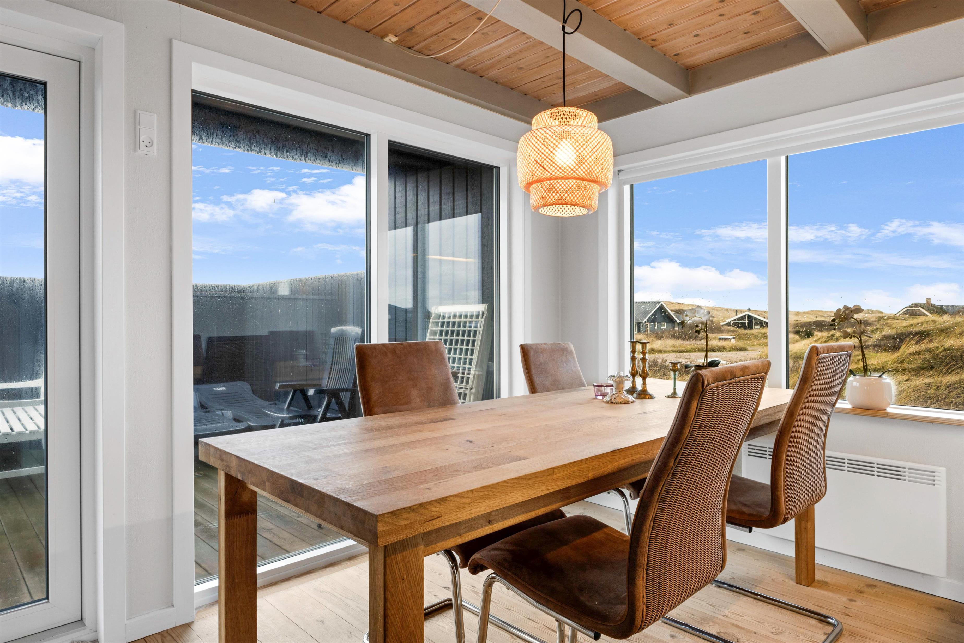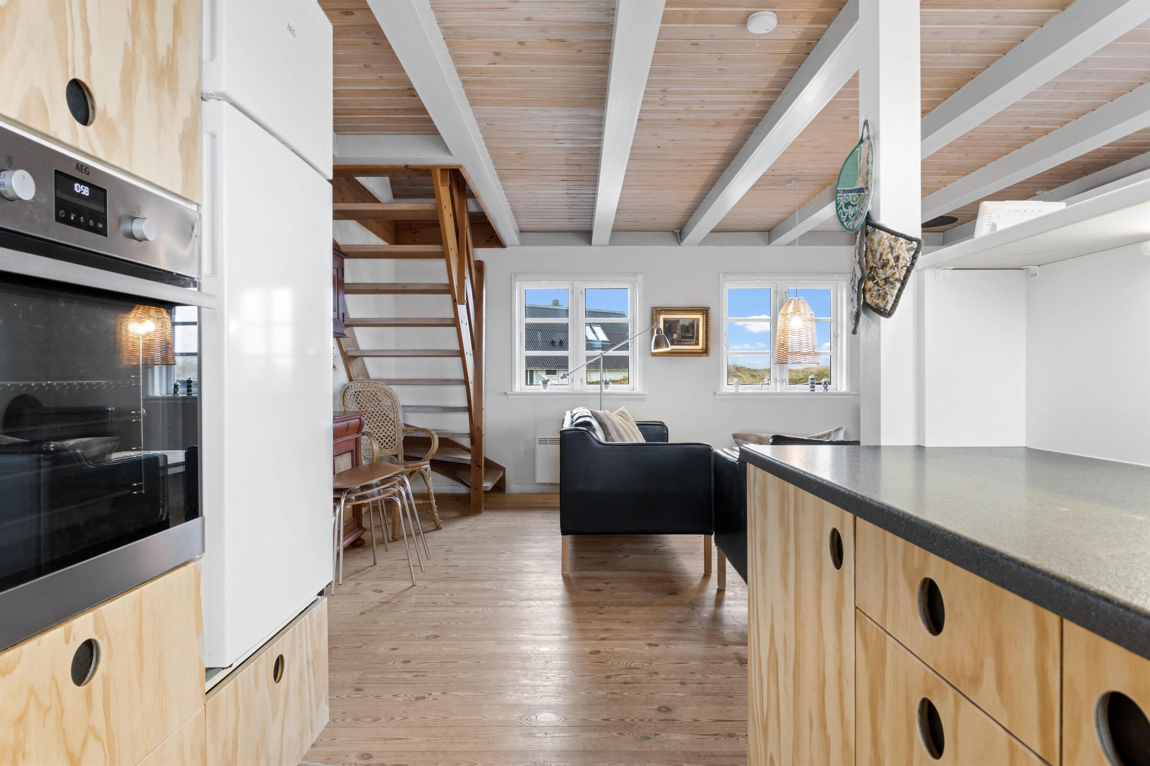Huset ligger kun et stenkast fra klitterne og man kan nyde naturen direkte fra den afskærmede terrasse. Her er både grill og havemøbler til at benytte i mange glade ferietimer. Man kan gå direkte over til stranden som byder på badning, drageflyvning, lystfiskeri eller blot lange gåture. Der er cirka 2 kilometer til nærmeste købmand i form af Aldi og Brugsen i Harboøre. Vil man på dagsudflugt anbefaler vi gerne Thyborøn med unik havnemiljø, fiskespisesteder på havnen, en dejlig børnevenlig badestrand samt flere attraktioner såsom Sneglehuset, Sea War Museum eller Jyllandsakvariet. Andre udflugtsmål inkluderer Bovbjerg Klint som ligger cirka 10 km syd for sommerhuset, der kendetegnes ved Bovbjerg Fyr og sine unikke skrænter ved Vesterhavet, som er op til 40 meter høje. Tag også gerne til den gamle købstad Lemvig som byder på både gågade og moderne havnemiljø.