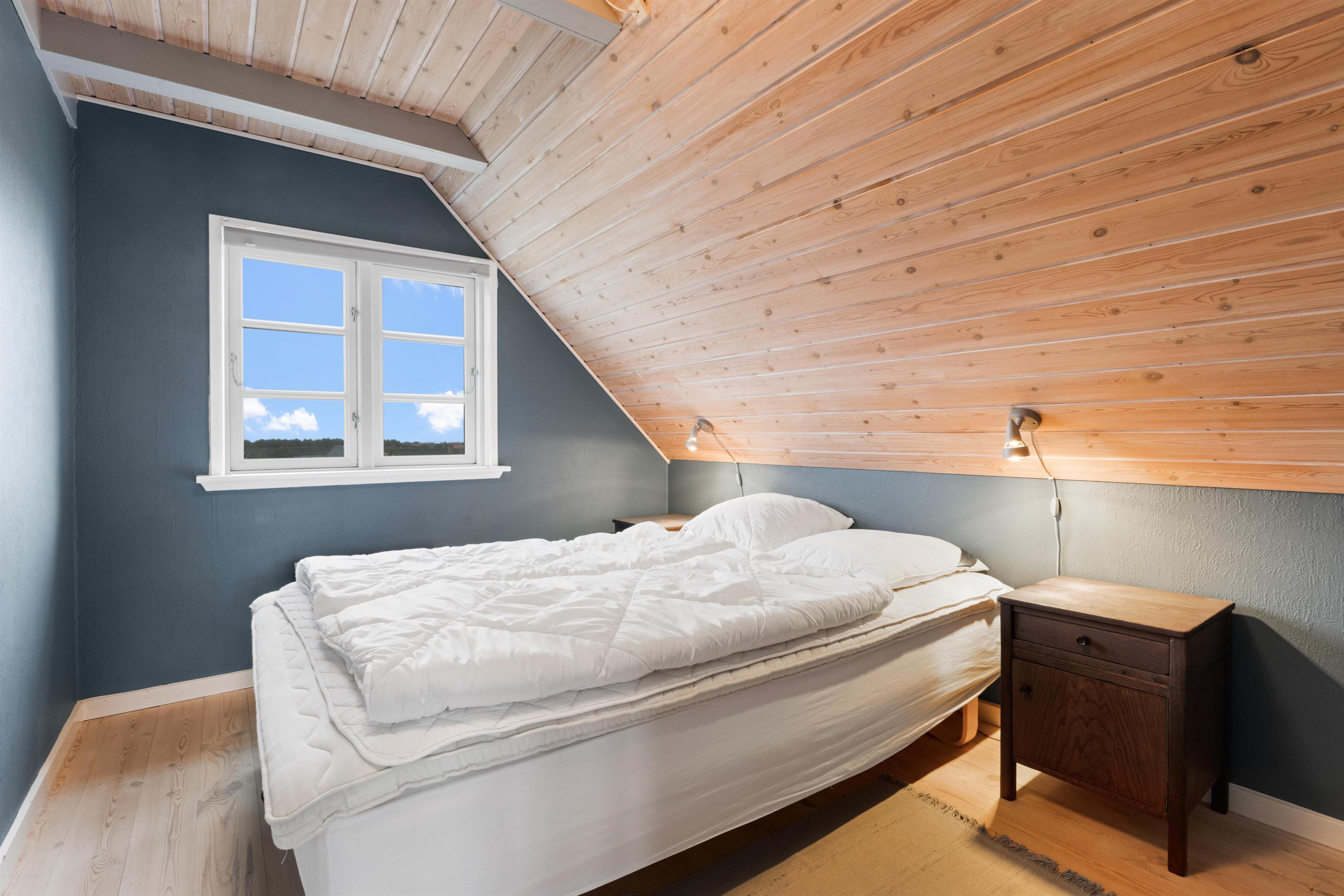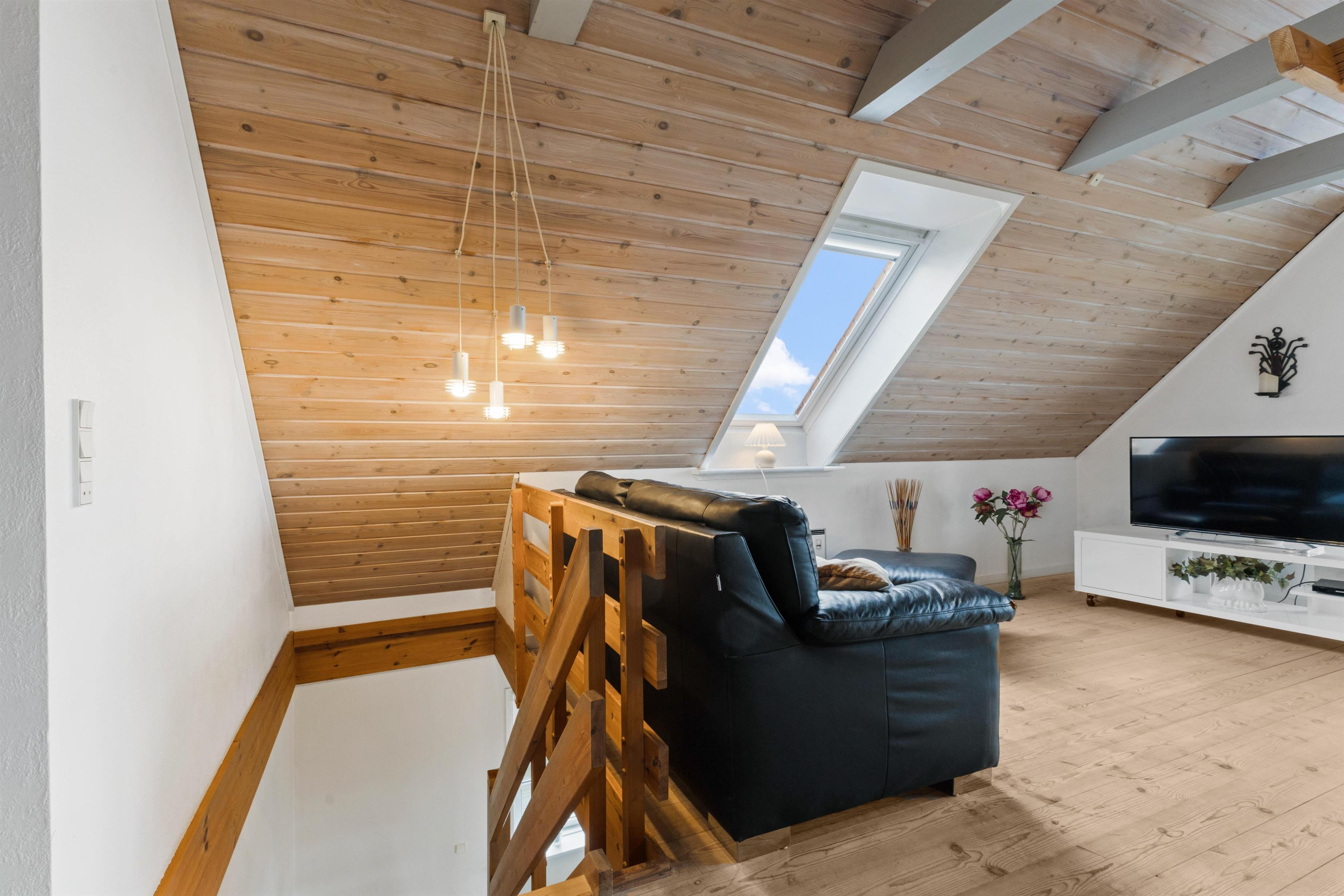 Huset er særdeles velindrettet med pæne møbler, trægulve og lyse vægge. Køkken og stue er i samme rum. Her er der både spisebord, sofagruppe, sofabord, brændeovn samt radio med CD-afspiller. Køkkenet har glaskeramisk komfur, mikrobølgeovn, køle-fryseskab og opvaskemaskine. Ovenpå er der endnu en stue med møbler og sofa samt fladskærms-tv hvor det er muligt at se DR 1 og TV2 samt tysk tv. Hertil er der ligeledes en DVD afspiller. Herfra er der også adgang til den vestvendte balkon. Badeværelset ligger i stueetagen og her er der gulvvarme, bruser, håndvask og et toilet. Herfra er der også indgang til husets sauna. Huset har 3 soveværelser hvor de alle har dobbeltsenge. Det ene er i stueetagen og de 2 andre er på 1. sal. I huset findes endvidere en vaskemaskine og tørretumbler. Ikke rygerhus. Max 2 husdyr tilladt.