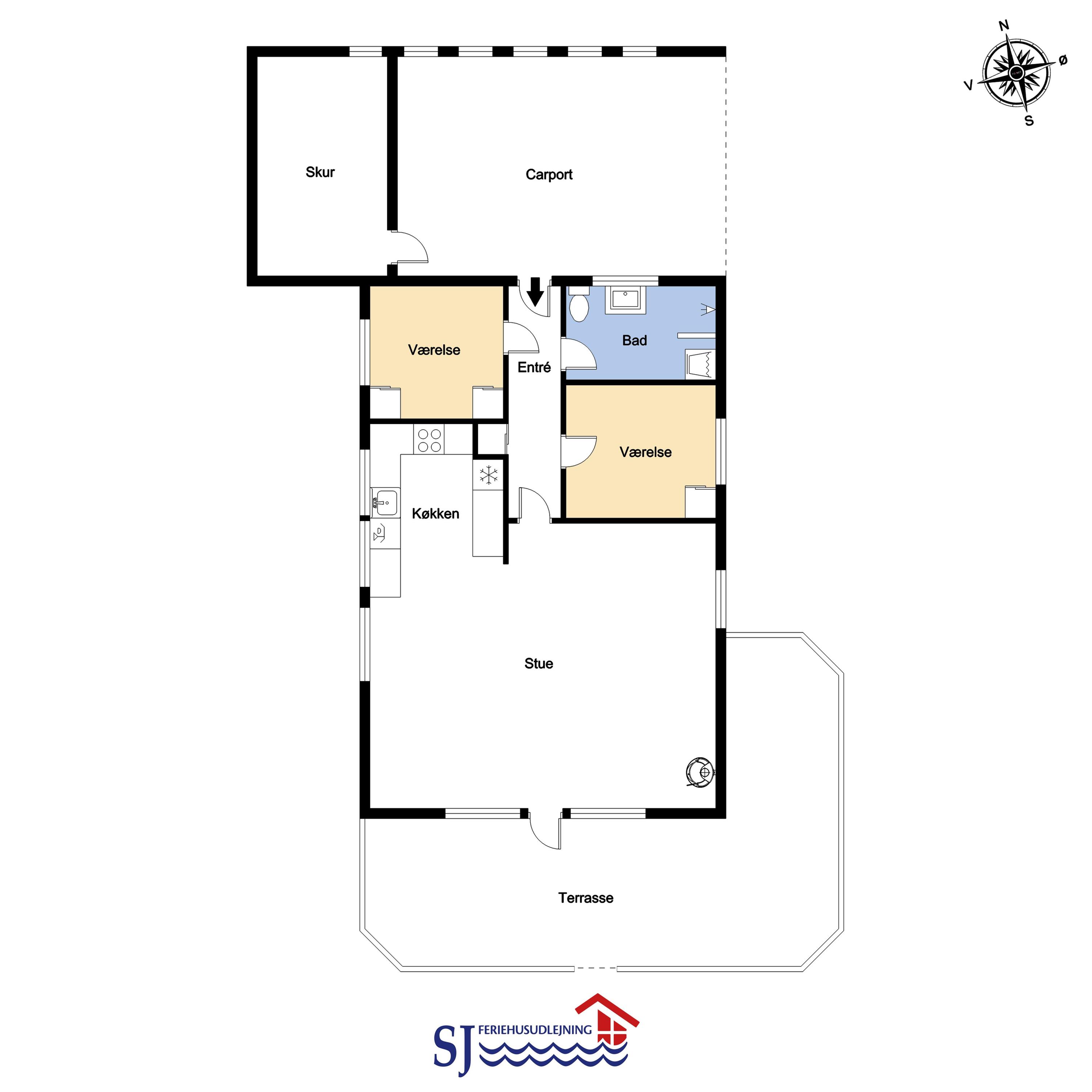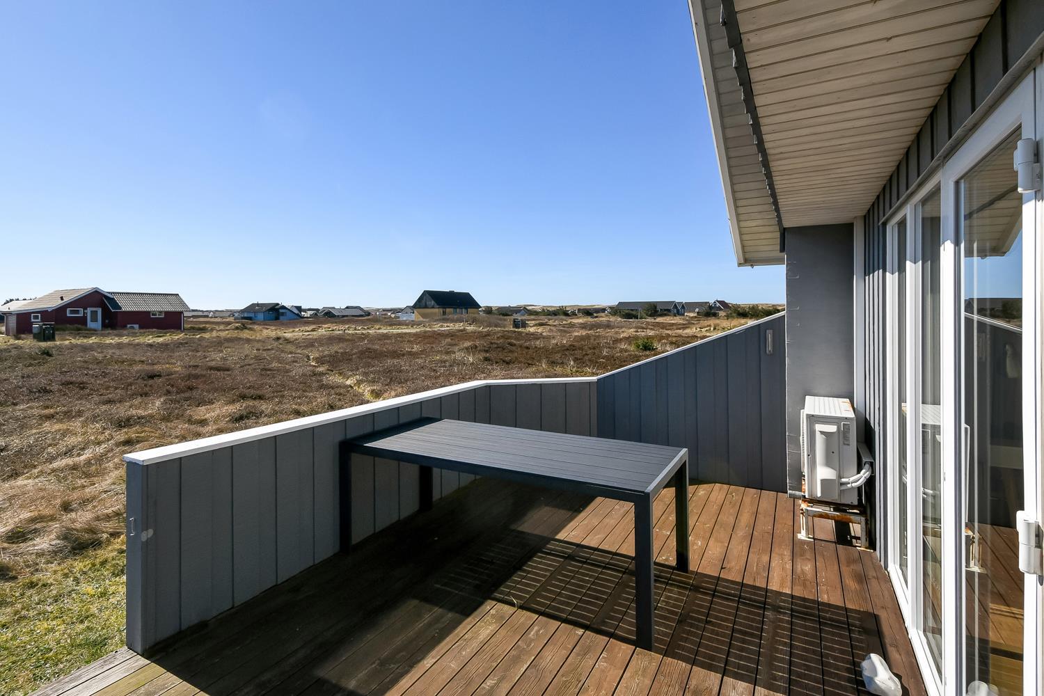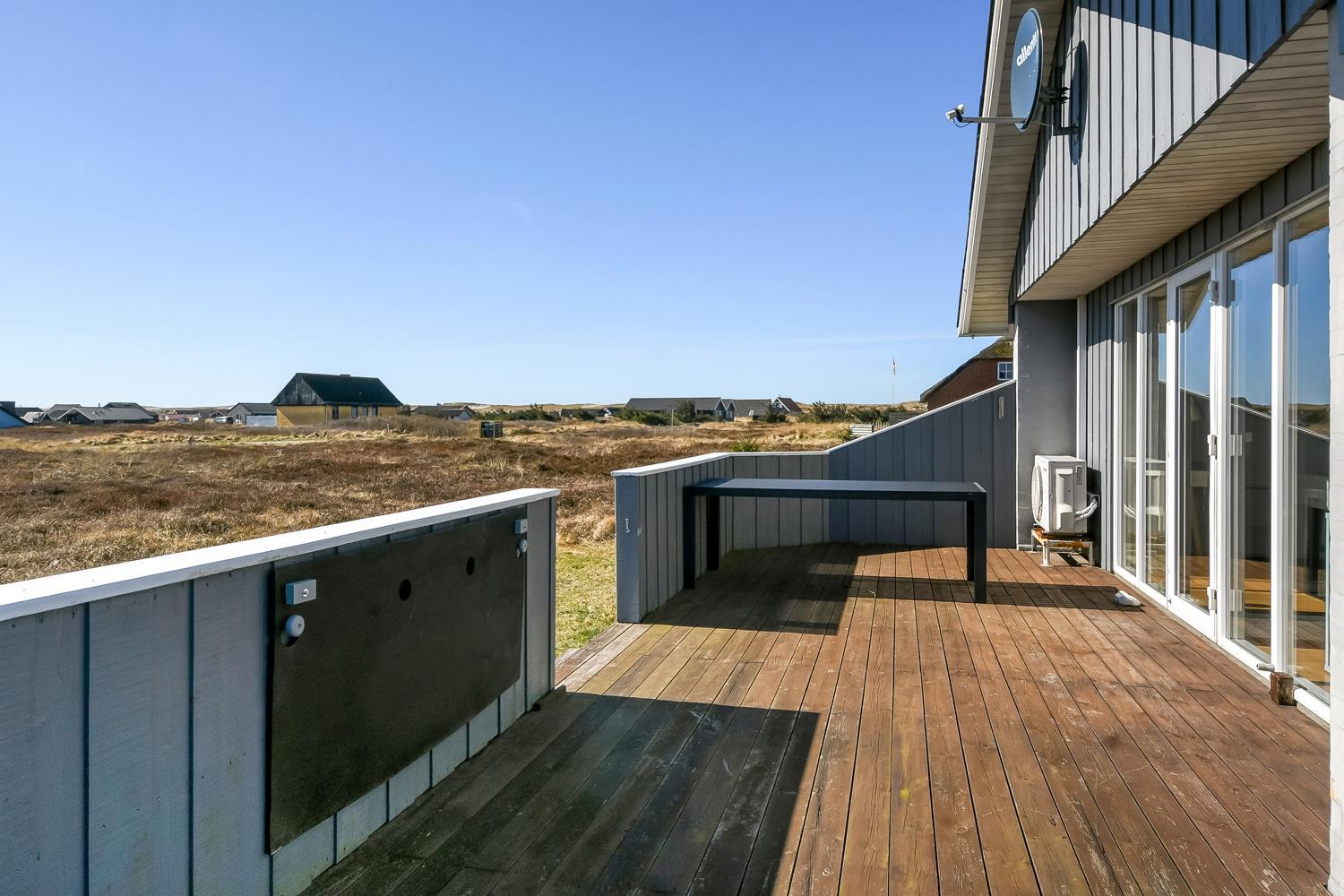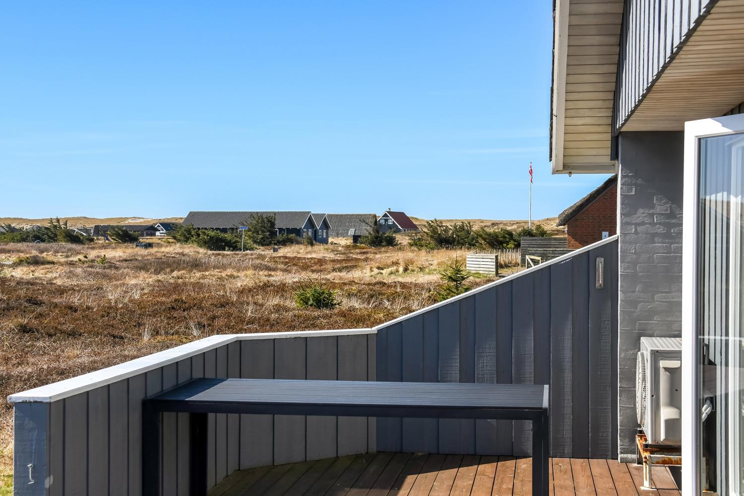 Fra opholdsstuen er der udgang til en dejlig indhegnet terrasse med havemøbler, liggestole og grill. Carport og ekstra opbevaringsrum. Gynge til børnene. Et rigtig godt sommerhus med den perfekte beliggenhed på en dejlig naturgrund tæt på det unikke Vesterhav som er et dagligt besøg værd både på solrige- som på blæsende dage. Hop ind i bilen eller tag cyklen og hent morgenbrød til familien i hos de nærved liggende supermarkeder. Så hvad enten du er til aktiv ferie eller total afslapning, danner dette feriehus en dejlig ramme både hvad angår hus, beliggenhed og omgivelser.