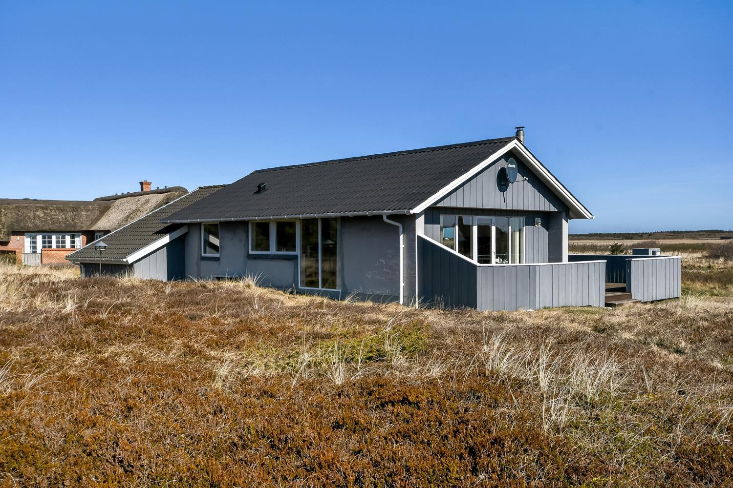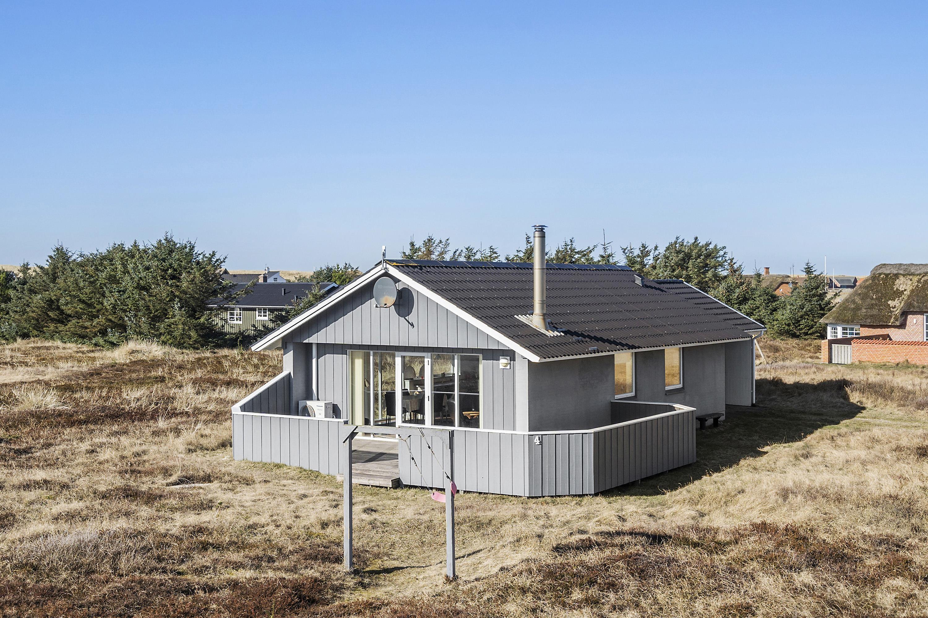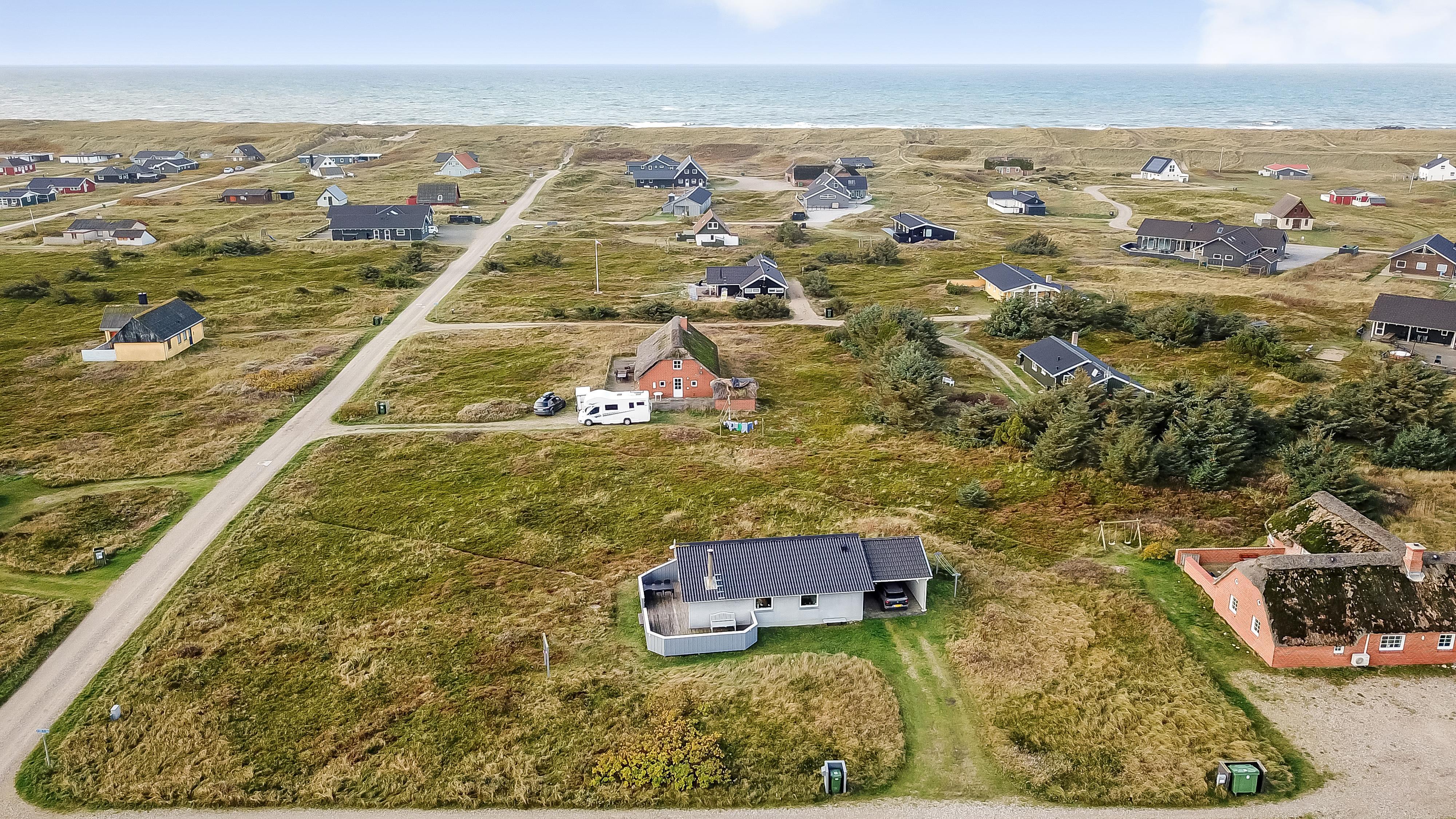 Godt udnyttet feriehus på ca. 75 m2 med kig til de høje klitter ved Vesterhavet. 2 soveværelser (1DS, 2ES+1KS). Huset seneste større renovering var 2006, men huset bliver løbende vedligeholdt og renoveret. Huset er indrettet med lædermøbler, spiseplads, samt-TV med danske og tyske programmer samt mulighed for streaming af TV / radio / Apps. Radio og CD-afspiller. En hyggelig brændeovn samt varmepumpe søger for en billigere el-regning og ekstra hygge samt varme til de rå dage ved Vesterhavet. Praktisk køkkenhjørne med bl.a. opvaskemaskine, komfur med keramiske kogeplade, emhætte, mikroovn samt køleskab med fryseboks. Badeværelse med toilet, håndvask, bruseniche og klinkegulv samt vaskemaskine. Der er praktiske træ gulve i alle opholds- og soverum. Max. 1 husdyr tilladt. Ikke ryger hus.