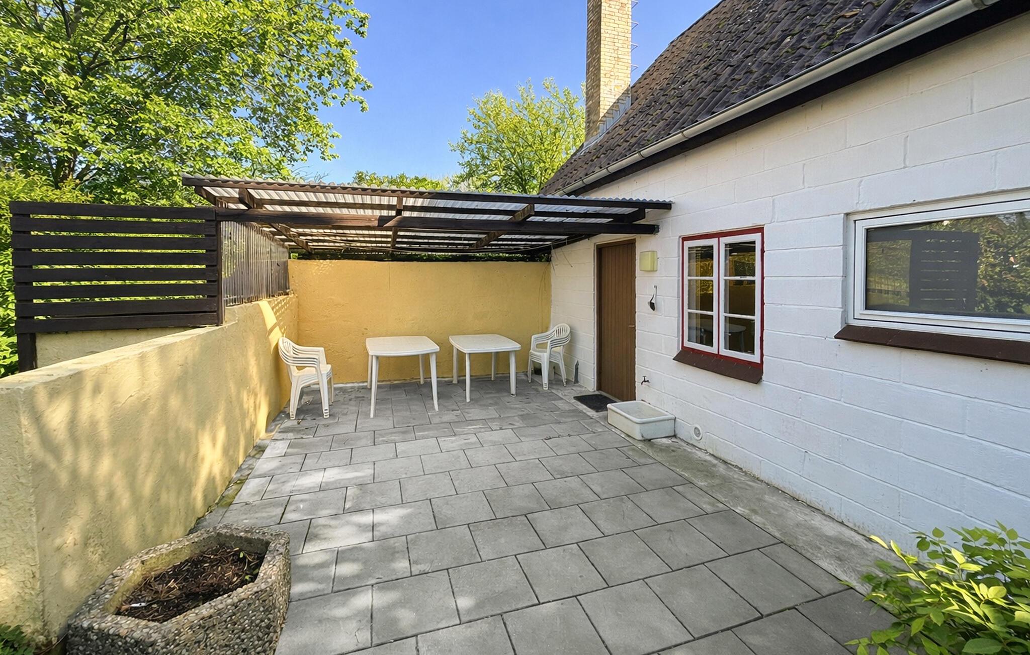 Åbn døren til den flisebelagte terrasse og nyd overdækkede timer udendørs. Lad jer falde tilbage i havestolene eller tilbring afslappende eftermiddage i den afsondrede gårdhave. Den store have med græsplæne byder på masser af plads til leg og afslapning.