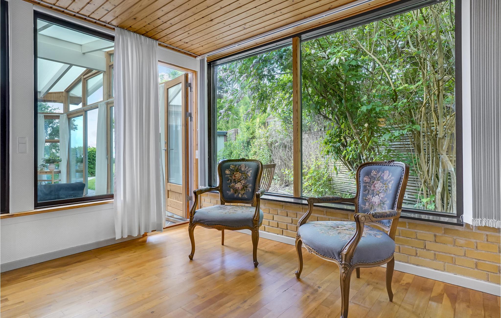 Velkommen til dette indbydende sommerhus, som har de ideelle betingelser til en familieferie. Tilbered måltider sammen i det åbne køkken, slap af i stuen, hvor der er brændeovn eller læs en spændende bog i den charmerende udestue. Huset har også to soveværelser og et badeværelse.