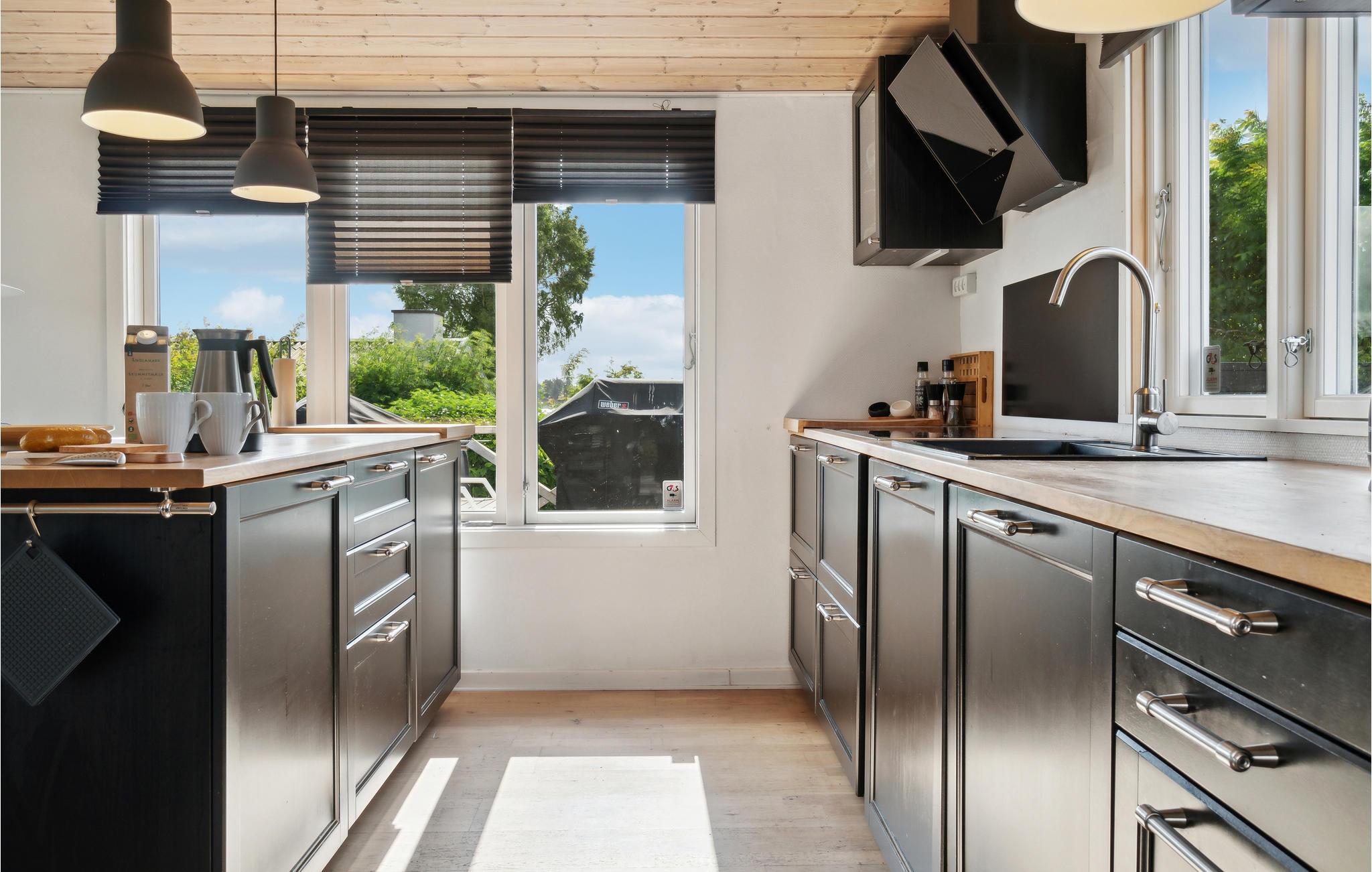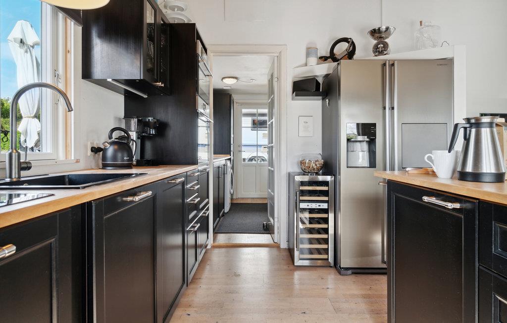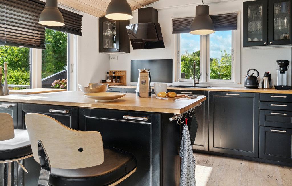 Velkommen til dette dejlige sorte træhus, som venter på jer lige ved Lejre Vig. Nyd en uforglemmelig tid med familien med hygge og nærvær. Den lyse moderne indretning og de store vinduer skaber en følelse af luftighed. Farvevalget giver ikke kun en varm stemning, men også personlighed og kant. Hyg jer med fælles madlavning i det sorte elegante køkken med vinkøler og amerikanerkøleskab og slå benene op med en god bog. Den, som I endnu ikke har haft tid til at læse. Spis lækker hjemmelavet mad og nyd en god vin. Slik sol på den skønne træterrasse, der løber rundt om huset. På varme dage kan I spise udenfor og tilbringe lange lune sommeraftener under åben himmel. Tilbered lækkerier til hele familien på grillen. Her er både gasgrill og kuglegrill.