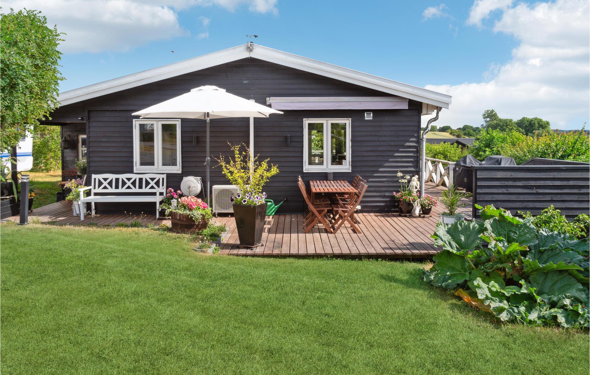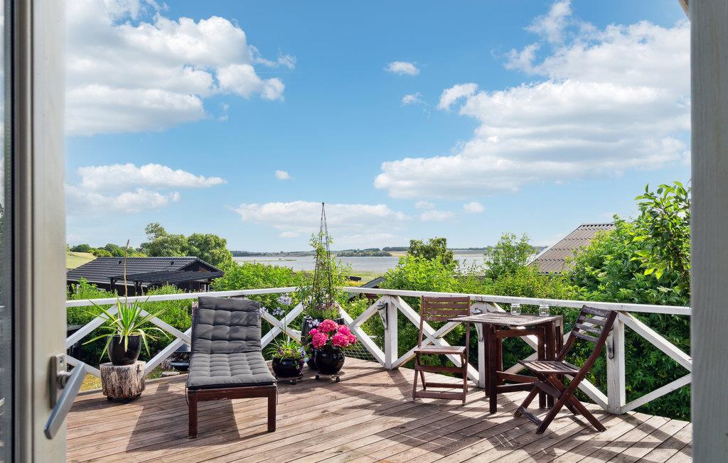 Hyggeligt træhus ved Lejre Vig med fjordudsigt