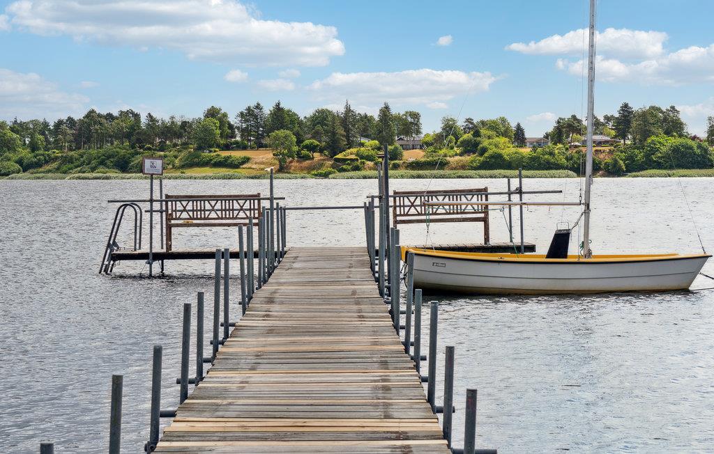 Kun 100 m fra huset er der en badebro ved fjorden, hvorfra I kan fiske og springe i vandet.
