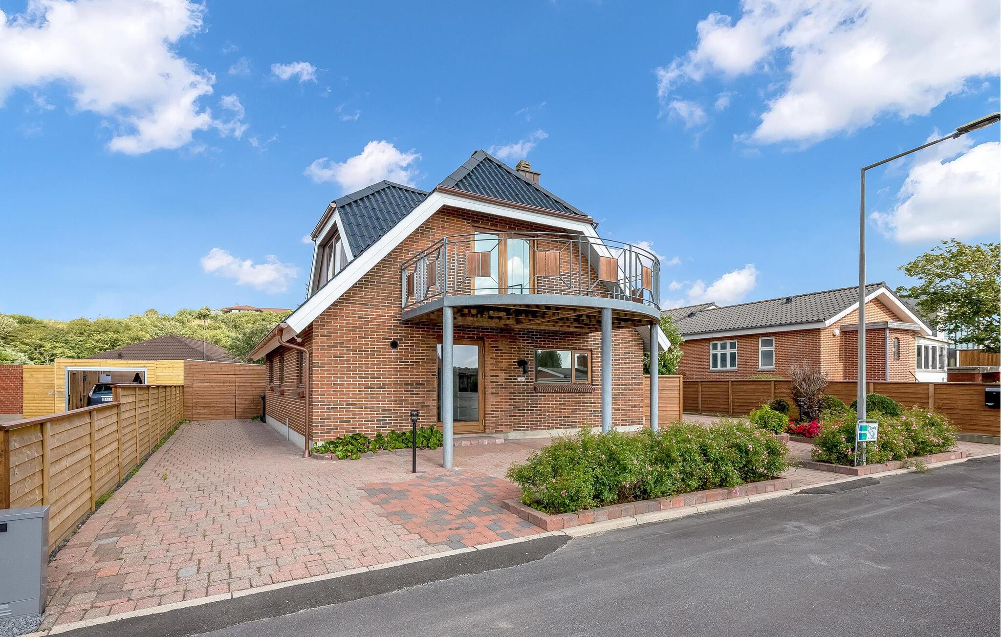 Nyd en dejlig ferie i dette moderne murstenshus med panoramaudsigt over fjorden i hyggelige Lemvig.