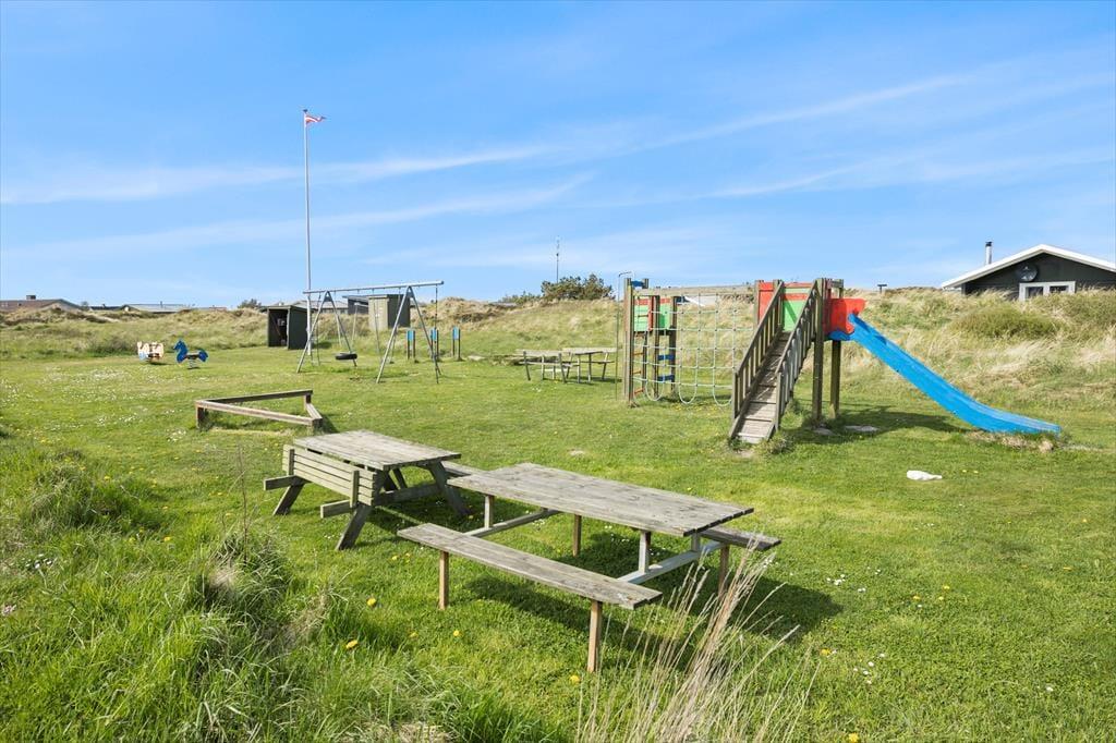 Svenstibakkevej er en lille, lukket vej, så omgivelser nær sommerhuset er særdeles fredelige. I det hele taget er der en rolig atmosfære i Lild Strand, som omgives af et fredet kysthedelandskab, så langt øjet rækker. I det gamle fiskeleje bliver der stadig fisket direkte fra kysten, og ved landingspladsen har I mulighed for at købe fisk og krabbekløer til aftensmaden, hvis I gerne vil smage på dagens friske fangst. Sommerhuset ligger mindre end 500 meter fra stranden, så I kan hurtigt smutte derned, hvis I vil vandre langs med kysten eller bade i Vesterhavet. Blandt udflugtsmål i lokalområdet kan det anbefales at tage til den spektakulære limstensklippe Bulbjerg, til fuglereservatet Vejlerne og til Kirsten Kjærs Museum, der byder på originale kunstudstillinger og et spændende koncertprogram.