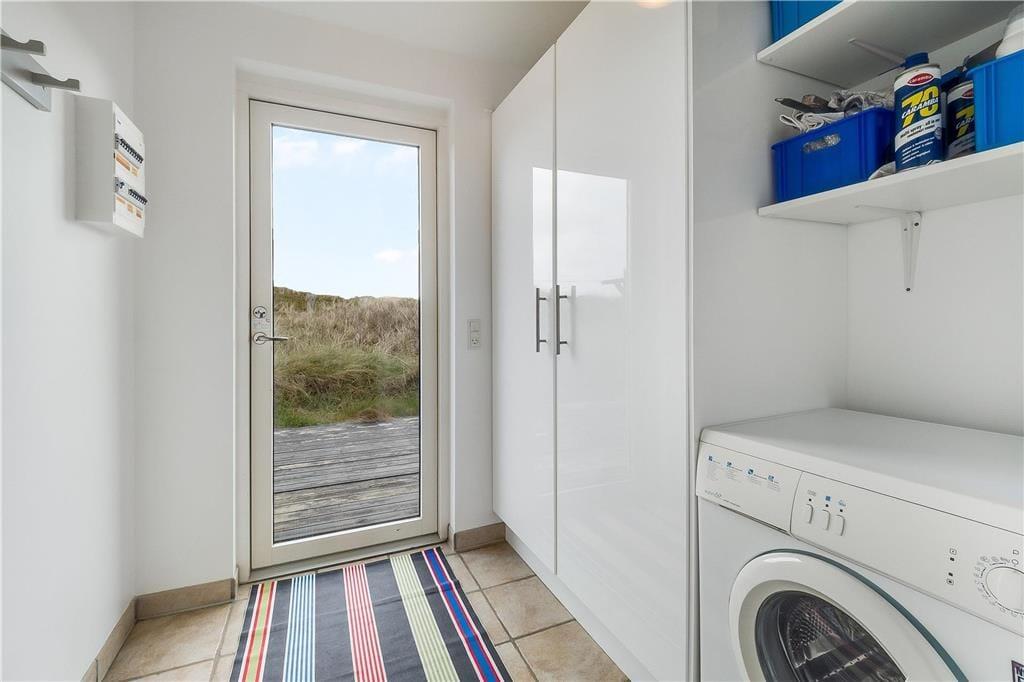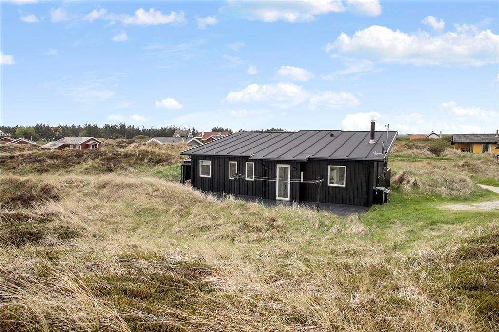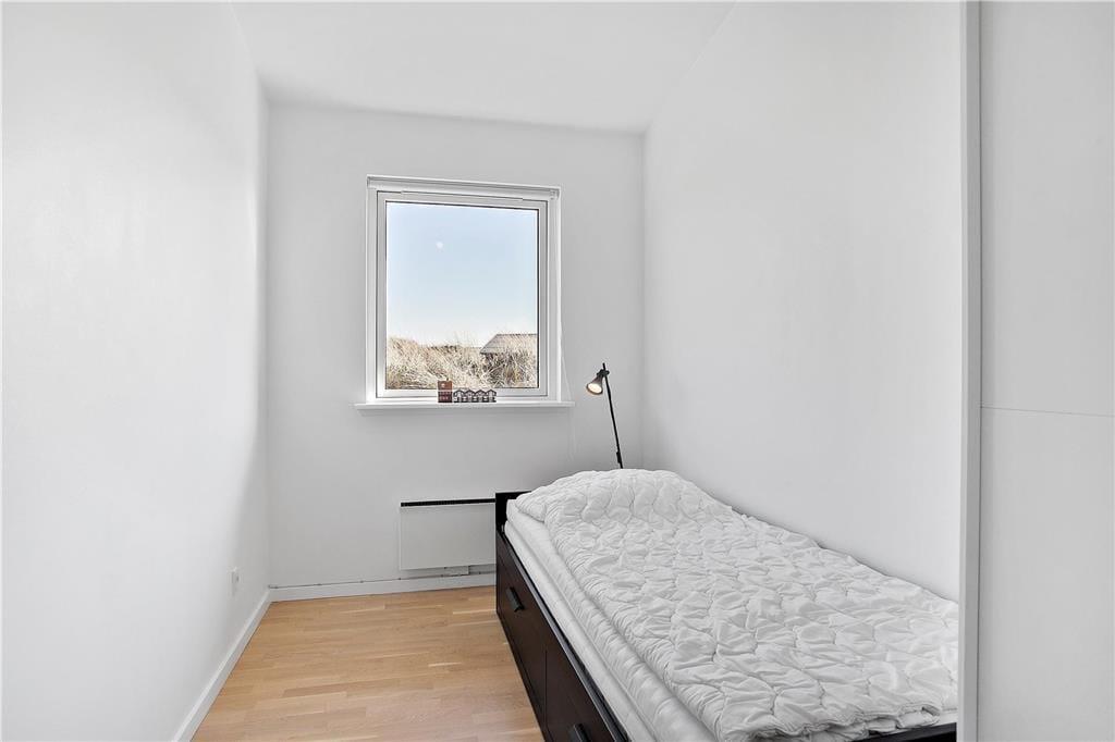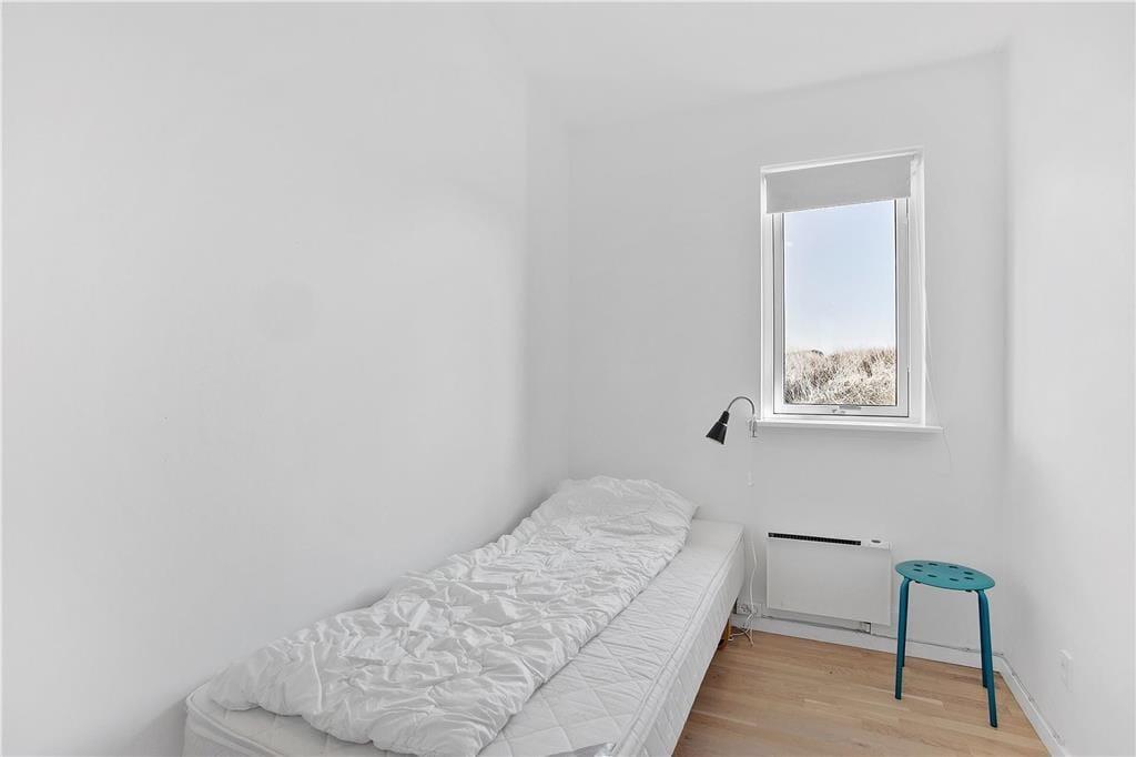 Sommerhuset, som er opført i 2006, har en intet mindre end glimrende planløsning til seks personer. Her er nemlig fire soveværelser at brede sig på, hvoraf et er indrettet med en dobbeltseng og to med enkeltsenge, og på det fjerde værelse kan en madras trækkes ud fra sengen, så her er der også plads til to overnattende. Sommerhuset består derudover af et flot og rummeligt badeværelse med glasbruseniche og to håndvaske. I entréen står en vaskemaskine, så I nemt kan friske feriegarderoben op, hvis det er nødvendigt. Endelig er der opholdsrummet, som består af et stort køkken og stue i åben forbindelse. Det stilfulde møblement passer godt til de marehalmsklædte naturomgivelser, som de mange vinduer giver udsigt til, og det højloftede rum er desuden udstyret med en brændeovn, så aftenhyggen kan foregå i skæret fra de levende flammer.