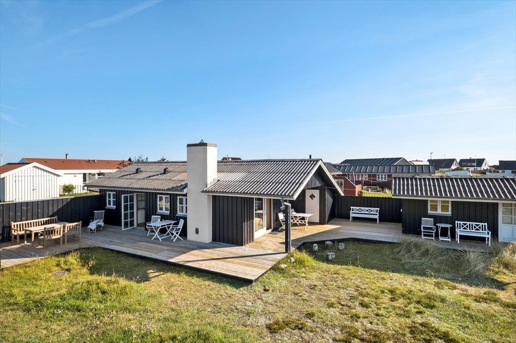 Bare omgivelserne, udsigten og det skønne terrassemiljø, er grund nok til at vælge dette sommerhus i Lild Strand. Huset er beliggende kun 215 meter fra Vesterhavet og når I nyder freden og solskinnet på terrasserne, kan I skue ud over den vidtstrakte klithede og se Lild Klitplantage i det fjerne.