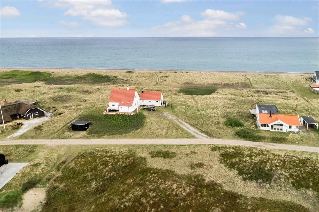 Vesterhavet kan næsten ikke undgå at spille en stor rolle for ferien, når I bogstaveligt talt er naboer til de blå bølger. I bor tæt ved Lild Strands landingsplads, hvorfra der stadig drives fiskeri, og i byens to butikker kan I købe både frisk og røget fisk med hjem til aftensmåltidet. Et par gallerier holder også til i det gamle fiskerleje, hvis I ikke bruger al tiden ude i naturen. Lidt Strand er omgivet af plantage og klithede, og Kirsten Kjærs museum tæt ved Frøstrup er med sin helt specielle atmosfære en oplevelse, man ikke bør gå glip af. I sommerperioden afholdes der også spændende koncerter på stedet. I nordøstlig retning ligger fuglefjeldet Bulbjerg, hvorfra I har en helt storslået panoramaudsigt over havet og det rå kystlandskab. Det kan også anbefales at tage bilen vestpå til Vigsø Strand, hvor bunkers ligger frit på stranden som et sælsomt levn fra Anden Verdenskrig. I Frøstrup 9 km fra Lild Strand findes en velassorteret Brugs, og her er der også mulighed for at leje cykler. Området omkring Lildstrand og Bulbjerg op mod Thorup Strand er udlagt og certificeret til Dark Sky Park. I har derfor mulighed for fra huset og grunden at nyde nattehimlen og det dybe mørke i fulde drag. Her høres kun havets brusen altid.