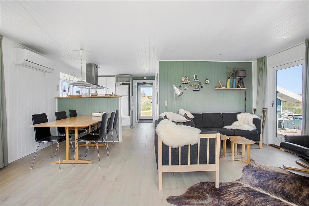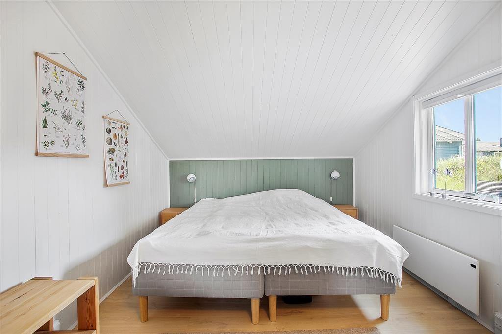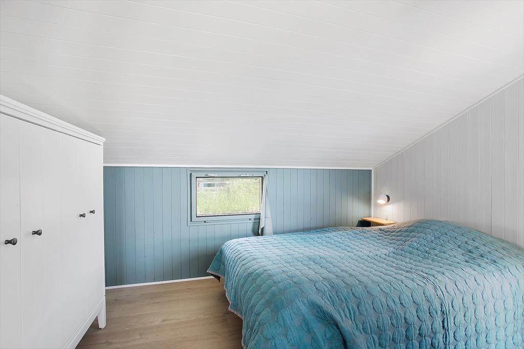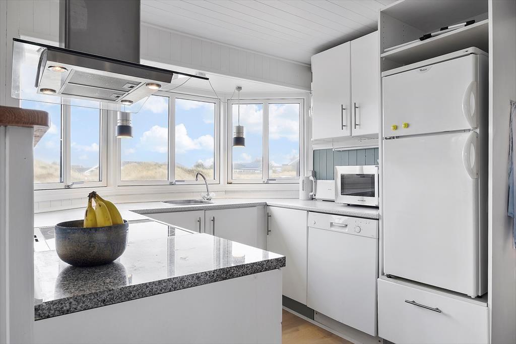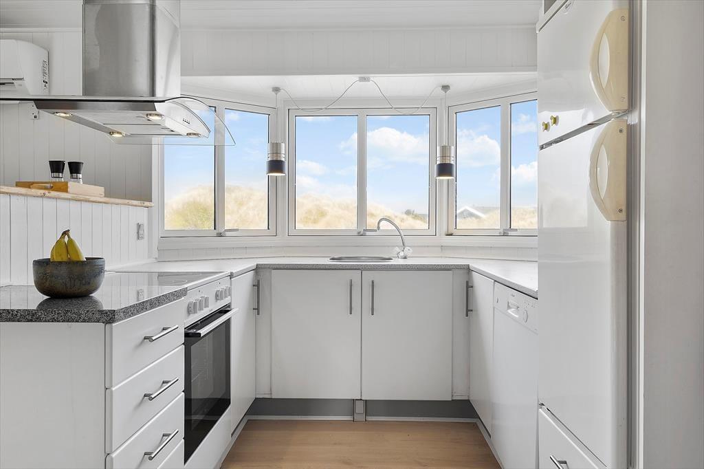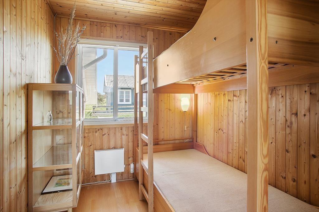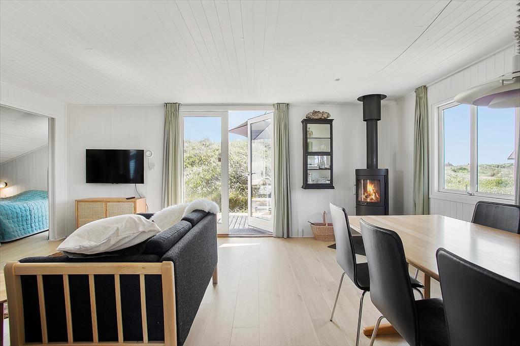 Dette hyggelige og traditionelle sommerhus, passer perfekt til den lille familie eller til par der ønsker at holde en rolig og afslappende ferie midt i den fantastiske natur ved Lild Strand. Huset har to soveværelser, hvoraf det ene er med dobbeltseng og det andet en køjeseng - dertil en lille alkove med boksmadras ved stuen, som kan lukket af med et forhæng, så det er let at inddrage rummet som børnenes legerum/opholdsrum i stedet for. Her kan de hygge sig og stadig følge med i det øvrige liv i sommerhuset. Husets køkken ligger i sammenhæng med stuen. Der er ny brændeovn i stuen, så hyggen let kan skabes, mens I nyder udsigten til klitterne.