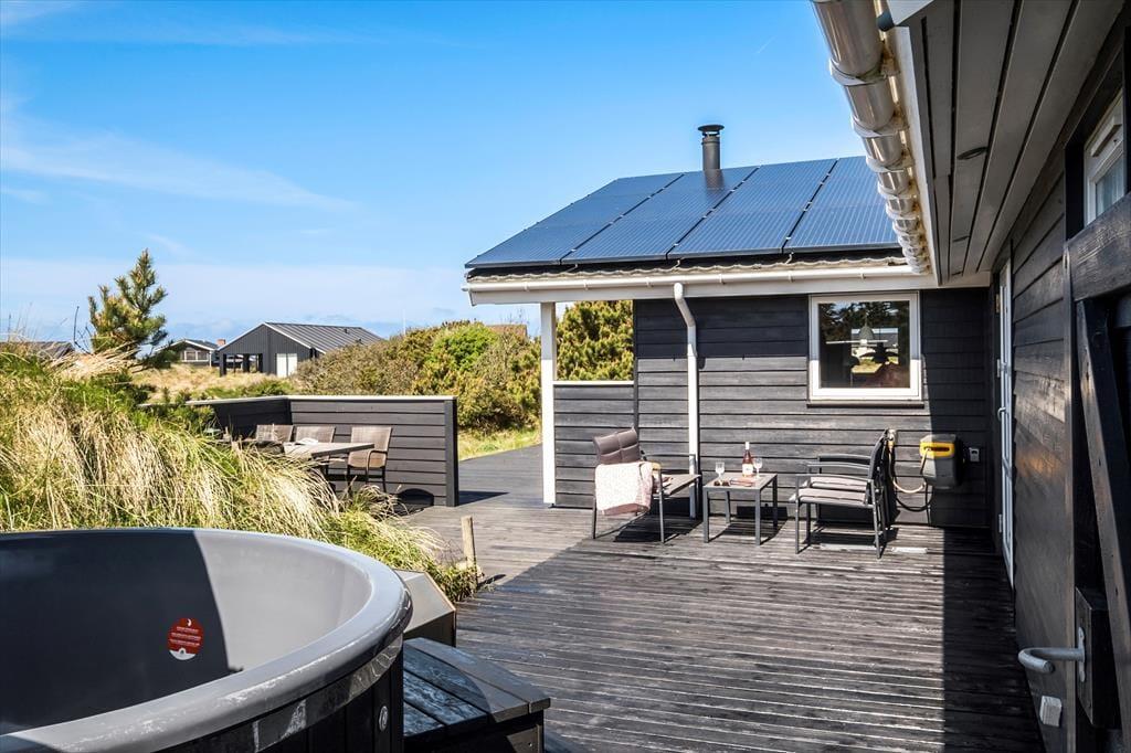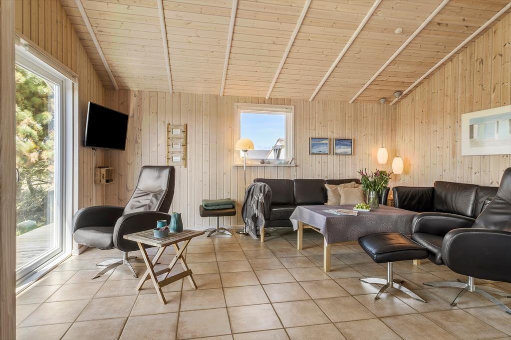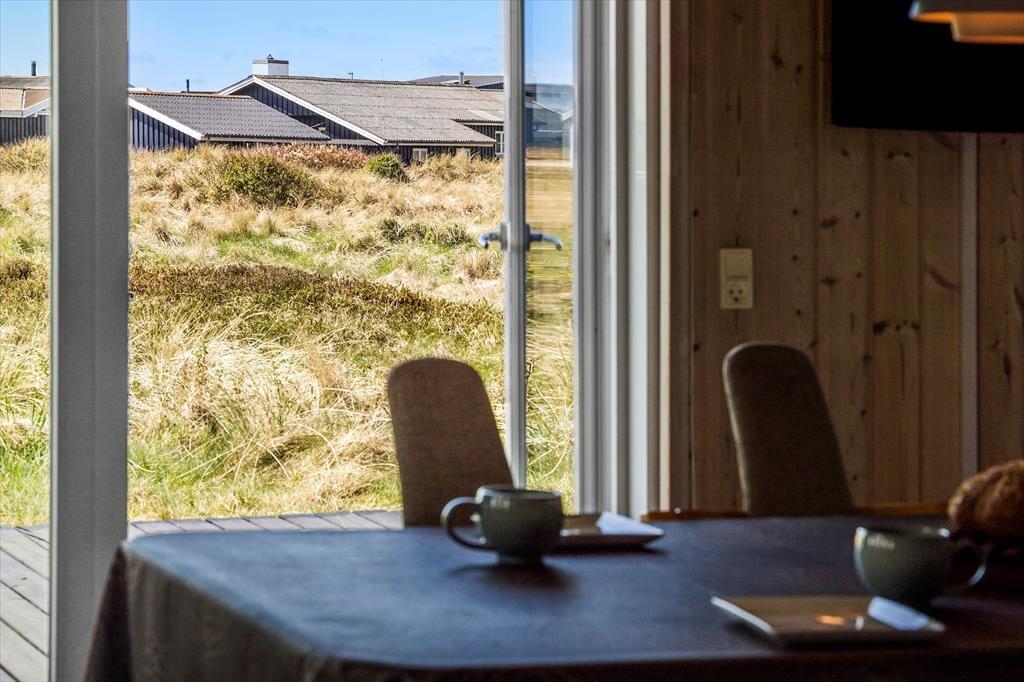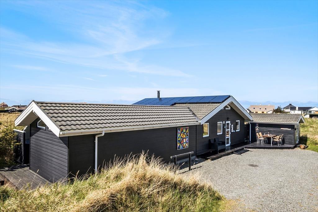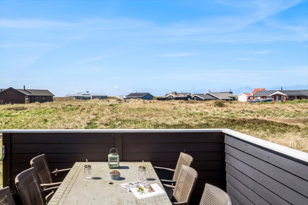 I kommer til at bo i en helt unik natur, når I holder ferie i dette smukke sommerhus i det lille fiskerleje Lild Strand. Fra både stue og køkken er der en betagende udsigt over den fredede klithede. Vesterhavet venter blot 300 meter væk.
