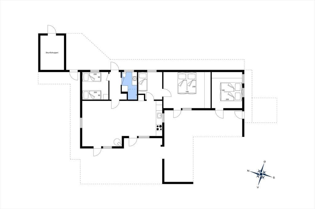 Huset på Gråbakkevej 4 er oplagt til uforglemmelige ferier i al slags vejr. På en råkold dag kan I hygge jer inden døre nær stuens brændeovn, mens I nyder det flotte lysindfald og udsigten over det betagende landskab. Og når temperaturene er lune og sommerlige, kan I holde havedørene åbne, så I har fri adgang til terrasserne, hvor I kan komme hele vejen rundt om sommerhuset. De store terrassedøre lukker lyset ind og giver jer let adgang til udelivet. Der er tre soveværelser, hvoraf det ene kun har adgang via terrassen ved vildmarksbadet. Skulle alle ønske at sove i selve huset i stedet, findes der en sovesofa til formålet.