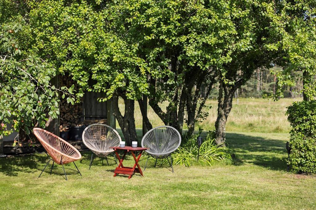 En af de helt store perler ved dette feriehus er den fantastiske grund, som huset ligger på. Her finder du en gammel, charmerende have, hvor der er plads til både afslapning og eventyr. Gå på opdagelse blandt de mange frugttræer og bærbuske, der ikke kun giver smagsoplevelser i løbet af sæsonen, men også tiltrækker et rigt dyreliv året rundt. Den store have indbyder til leg, picnic og stille stunder med en bog i skyggen af et træ. Terrassen er ideel til morgenkaffe, frokost i det fri eller hyggelige grillaftener med familien.