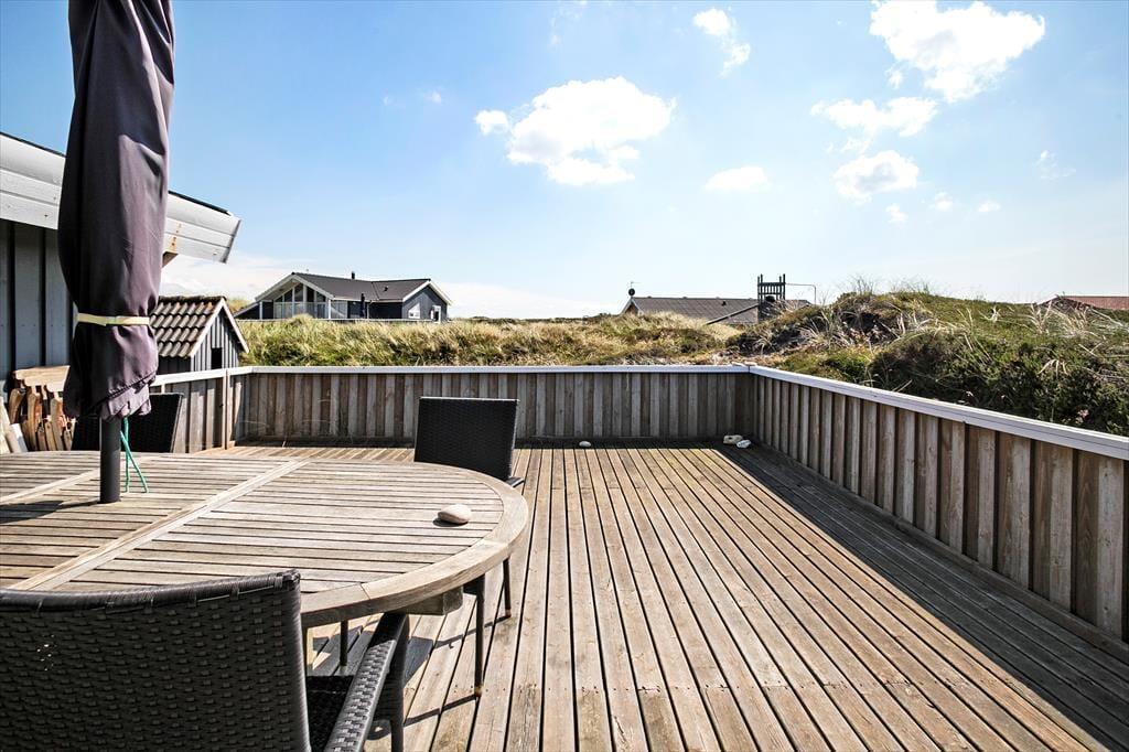 På husets sydside har man en stor lukket terrasse, hvor noget af den ydermere er overdækket. En fantastisk terrasse der er god til dem der medbringer enten børn eller husdyr. Terrassen er udstyret med havemøbler, grill og liggestole.