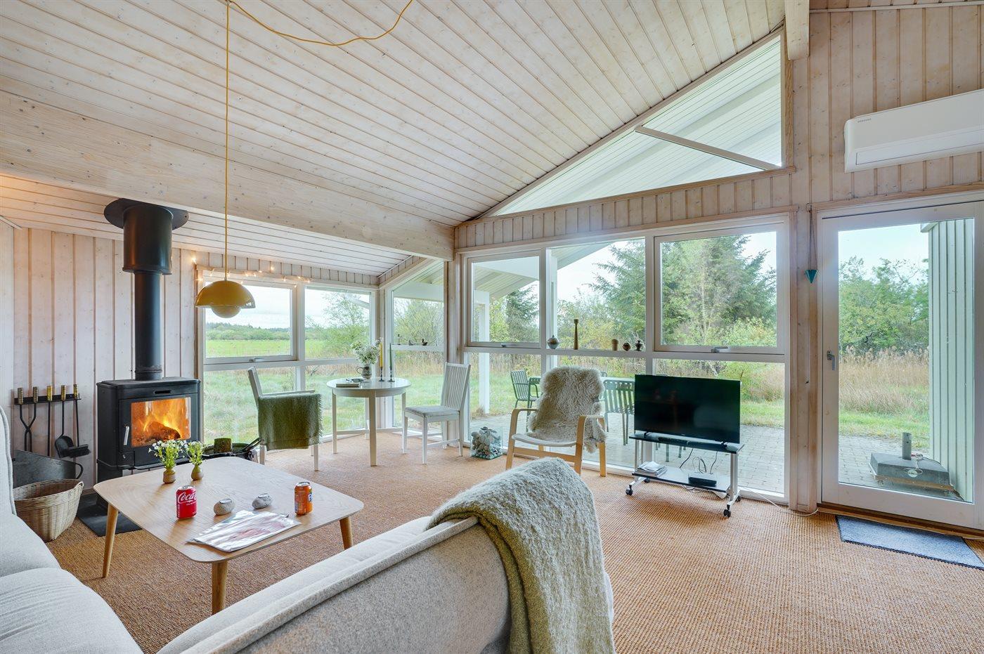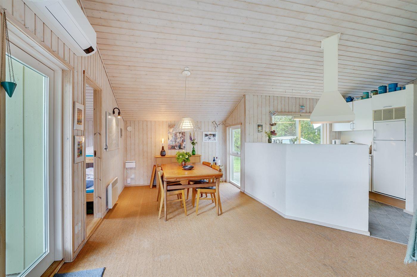 Sommerhuset egner sig til 6 personer. Ferieboligen er på 77 m² og er bygget i 2000. Det er tilladt at medbringe 1 husdyr. Ferieboligen er udstyret med energibesparende varmepumpe. Frysekapacitet på 20 liter. Der er desuden brændeovn.