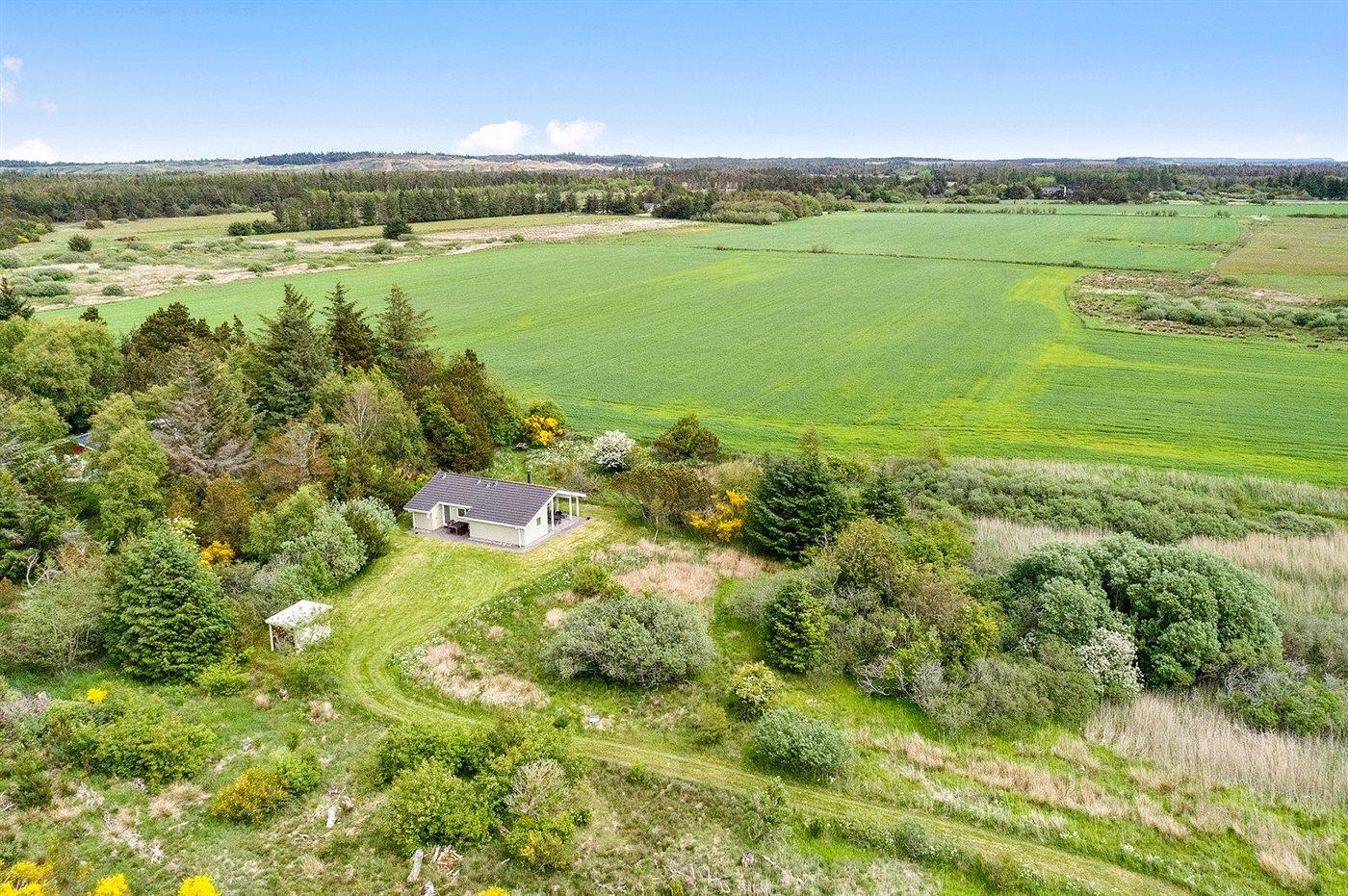 Skønt sommerhus beliggende på en 1 hektar stor naturgrund midt mellem Vestehavet og Limfjorden. Der er gåafstand til skov.