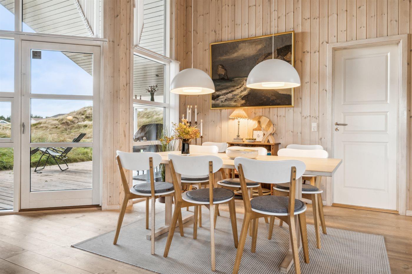 Dette velholdte sommerhus ligger i Lild Strands dejlige klitlandskab. De store vinduespartier i stuen fylder hele rummet med naturligt lys og en behagelig atmosfære.