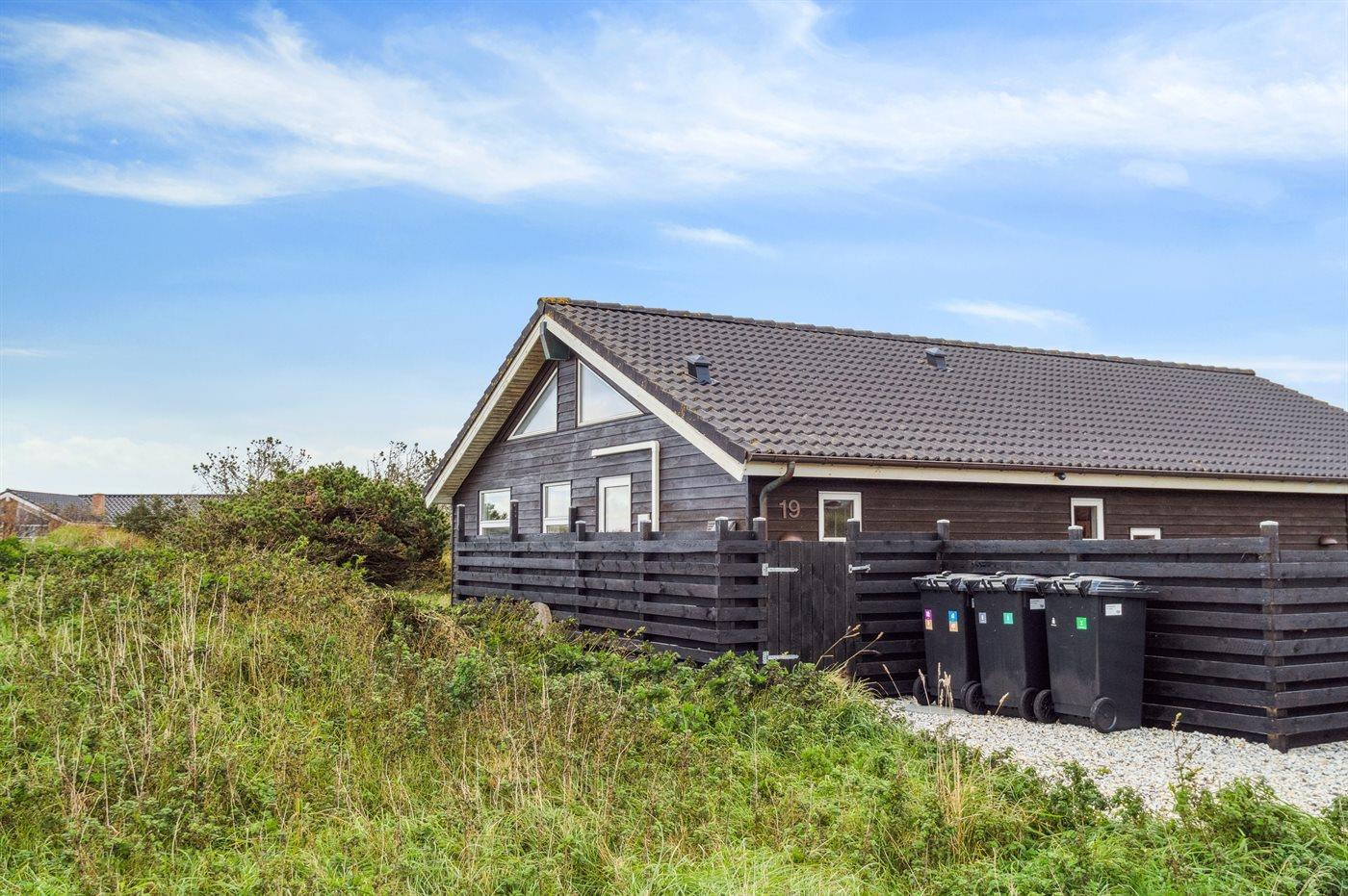 Ferieboligen er beliggende på en 225 m² stor klitgrund. Der er 400 m til havet. Nærmeste forretning er beliggende i en afstand af 9000 m. Der er en golfbane i en afstand af 20000 m. Til ferieboligen hører 30 m² terrasseareal. Desuden er der 30 m² overdækket terrasse. Der er redskabsrum. Sandkasse. Udendørs sauna. Grill til rådighed. Parkering ved ferieboligen.