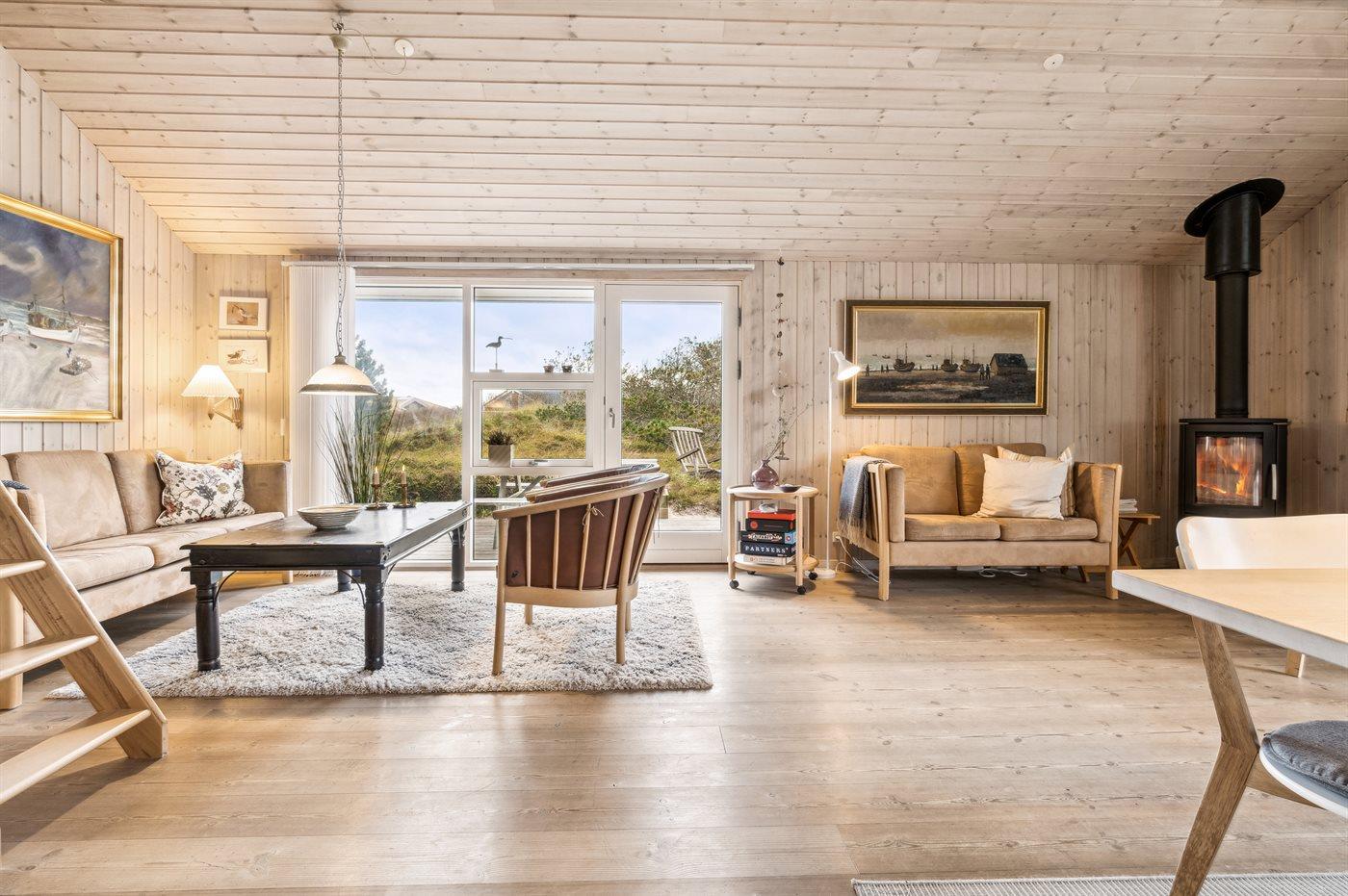 Velholdt sommerhus i Lild Strand med brændeovn, sauna og tæt på havet, perfekt til afslapning i klitlandskabet.
