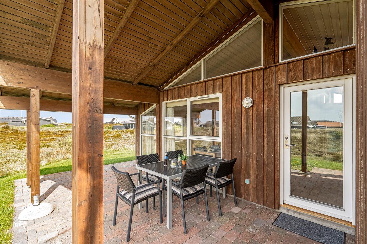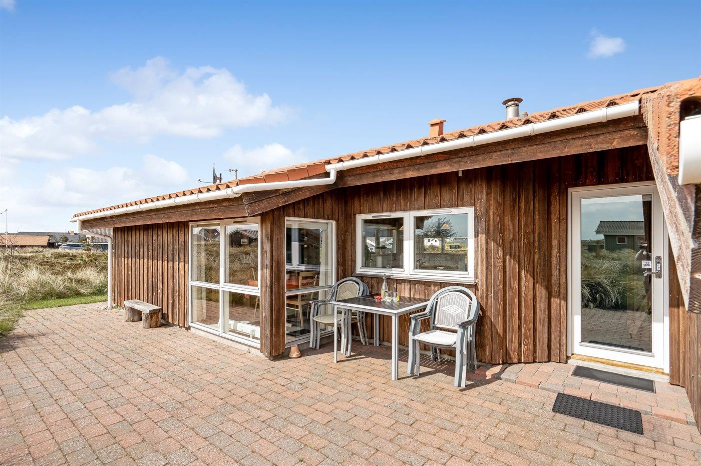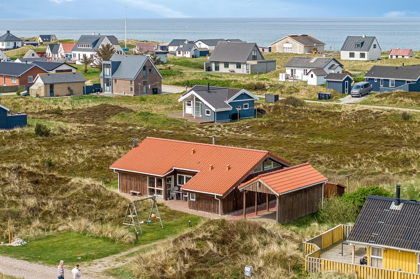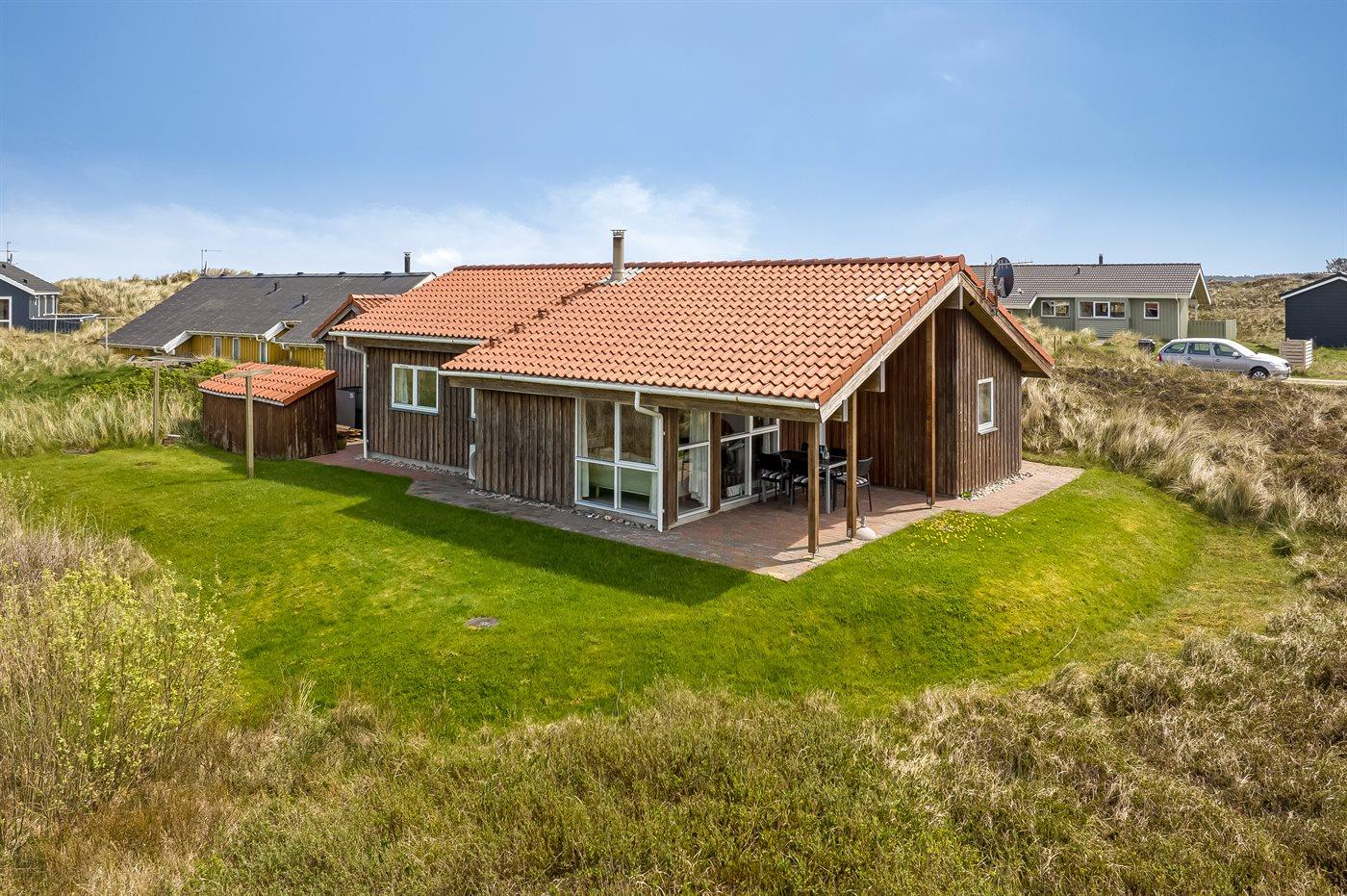 Ferieboligen er beliggende på en 1674 m² stor klitgrund. Der er 200 m til havet. Nærmeste forretning er beliggende i en afstand af 10000 m. Der er en golfbane i en afstand af 25000 m. Til ferieboligen hører 100 m² terrasseareal. Desuden er der 30 m² overdækket terrasse. Der er redskabsrum. Grill til rådighed. Der er carport til rådighed. Parkering ved ferieboligen.