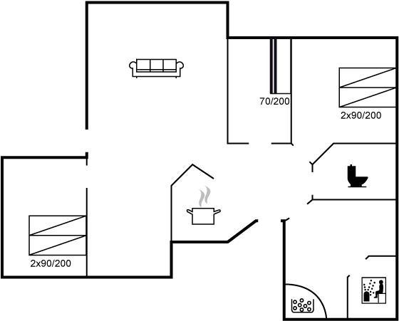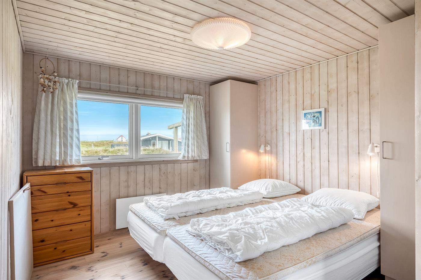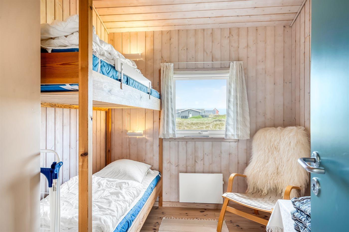 Der er i alt 3 soveværelser. Sovepladserne fordeler sig på: 4 sovepladser i enkeltsenge. 2 sovepladser i køjeseng. Derudover er der 1 stk. barneseng.