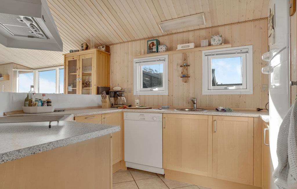 Der er lagt op til nogle herlige dage med familien ved det nordjyske Vesterhav, hvor I finder dette hyggelige hus. Her kommer man hurtigt helt ned i tempo, for roen sænker sig automatisk i de smukke omgivelser. De store vinduespartier i stuen fylder hele rummet med naturligt lys og en behagelig atmosfære. Sæt jer med en god bog i sofaen og kig af og til ud på det forblæste landskab. På kølige dage kan I tænde op i brændeovnen og hygge jer med indendørsaktiviteter som brætspil og lange middage. I sommermånederne kan I nyde de skønne rammer udendørs og dække op til en grillmiddag på terrassen.