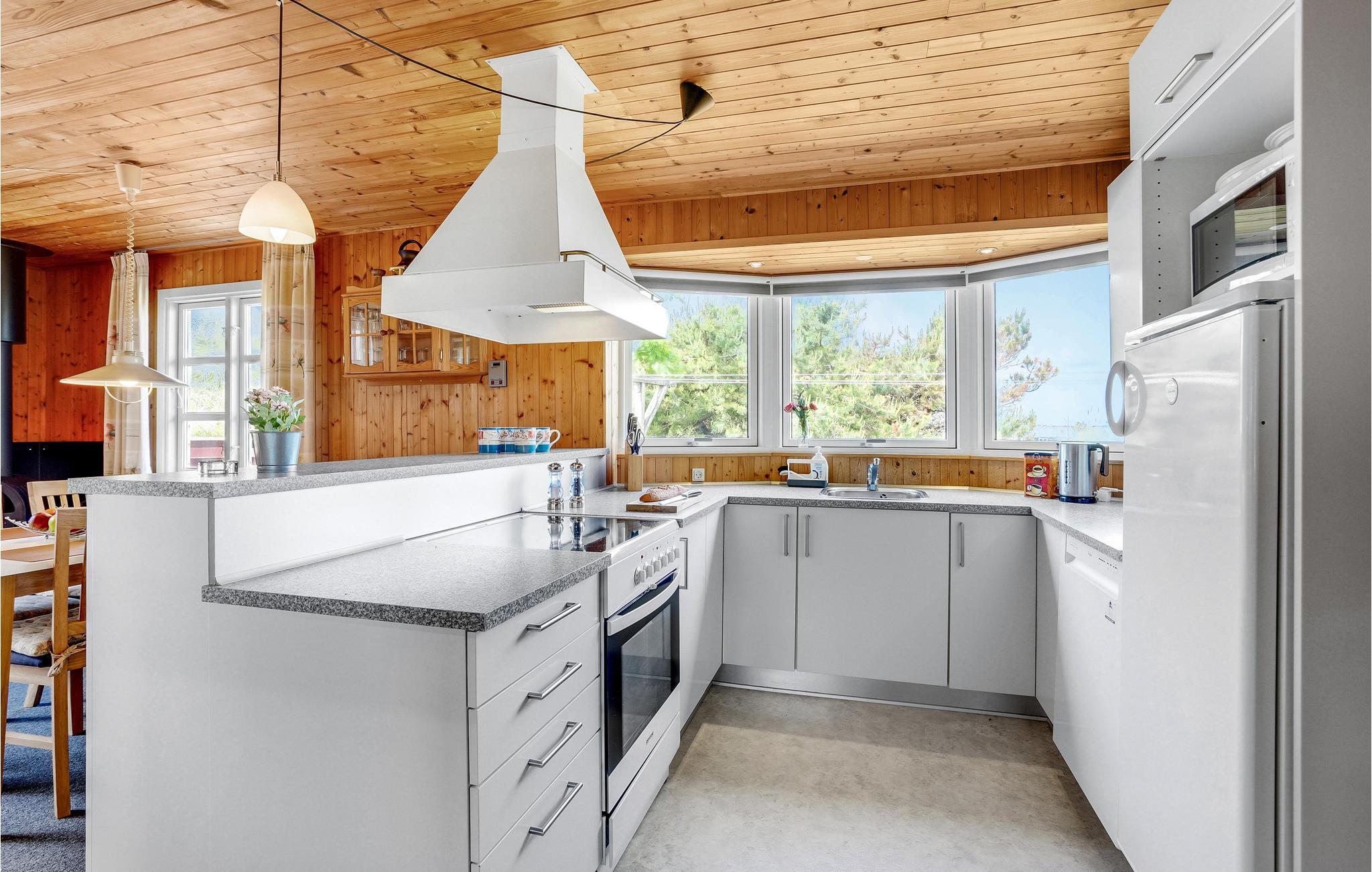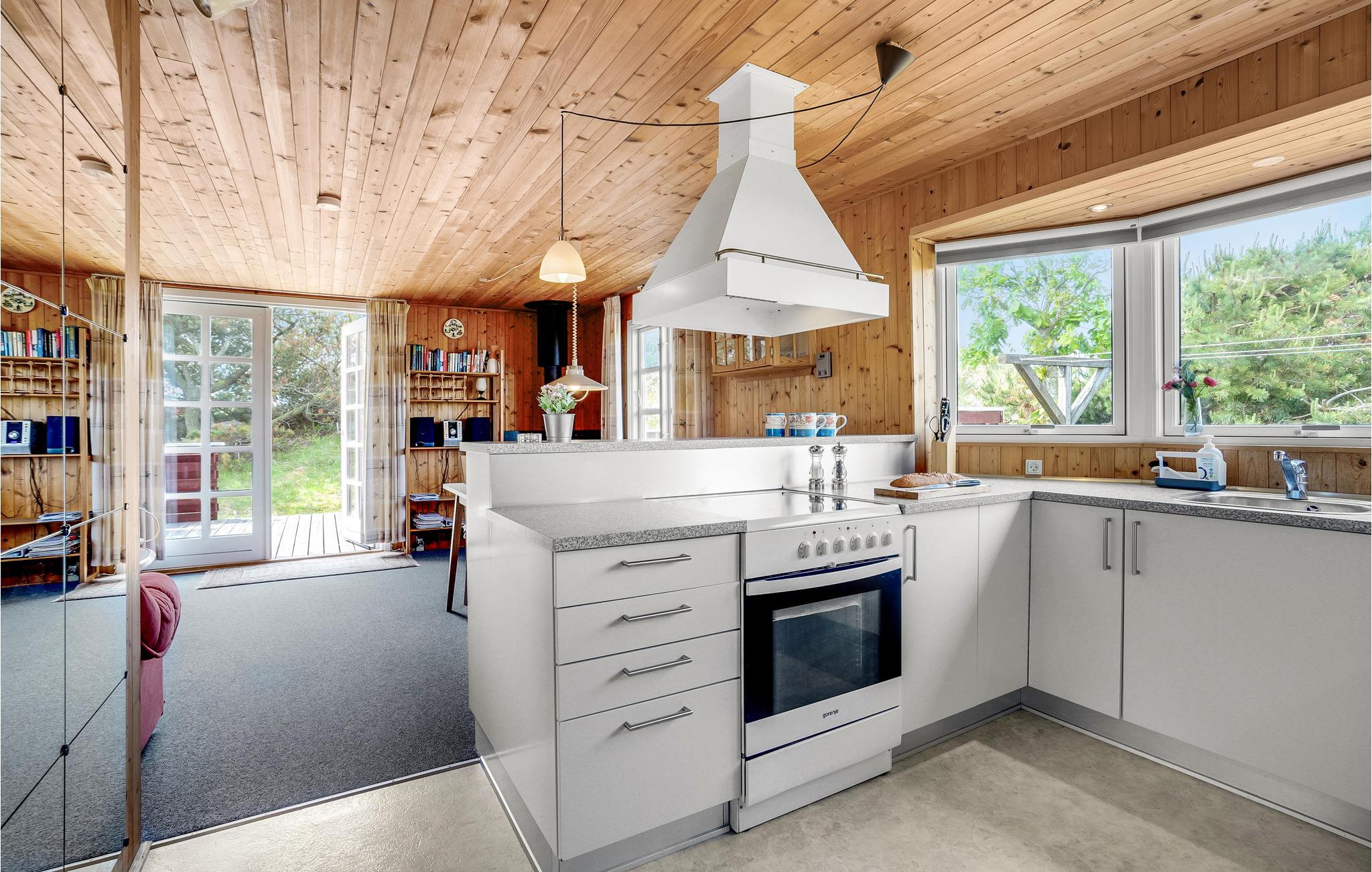 Charmerende feriehus nær Jammerbugtens strand med sauna og havudsigt.
