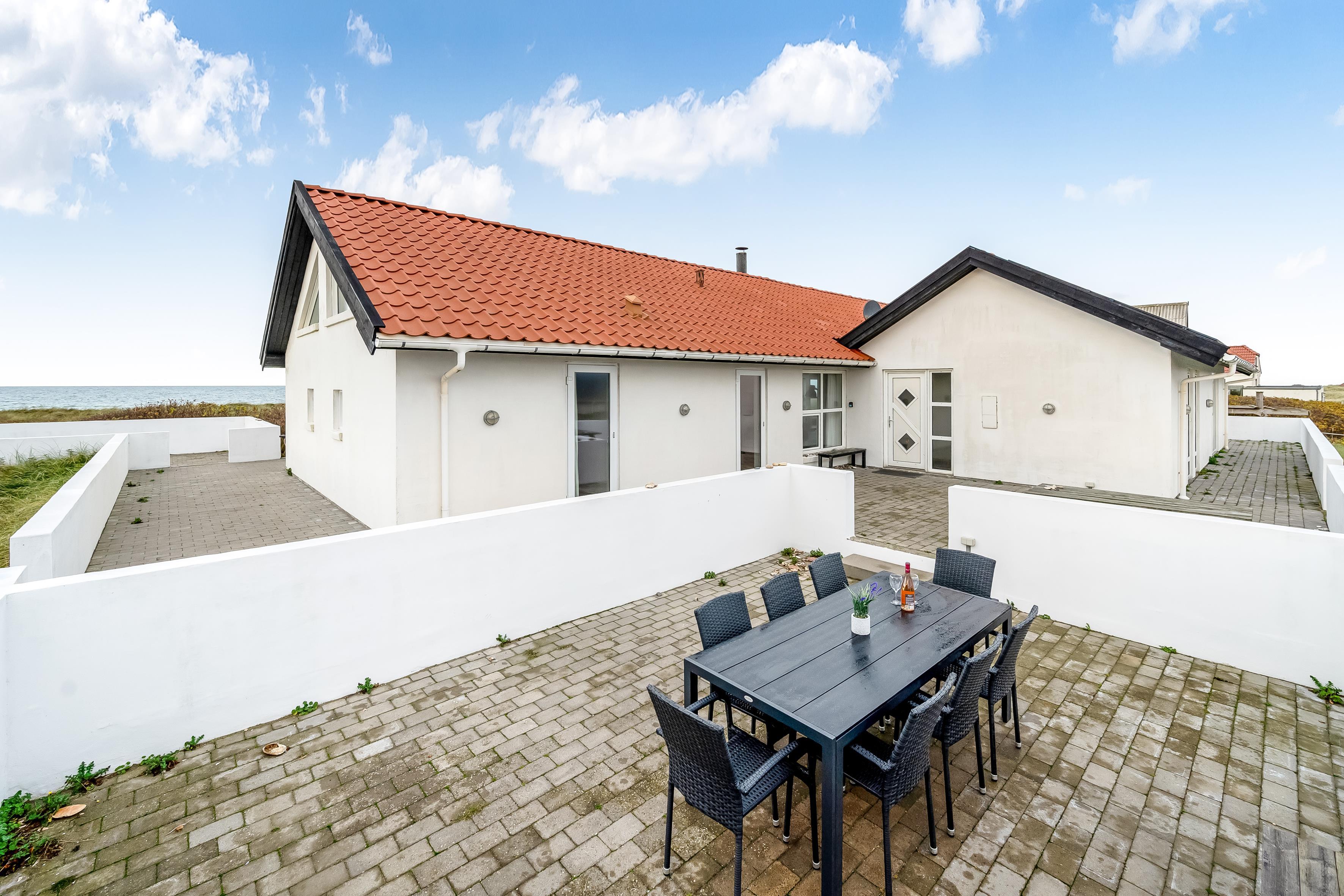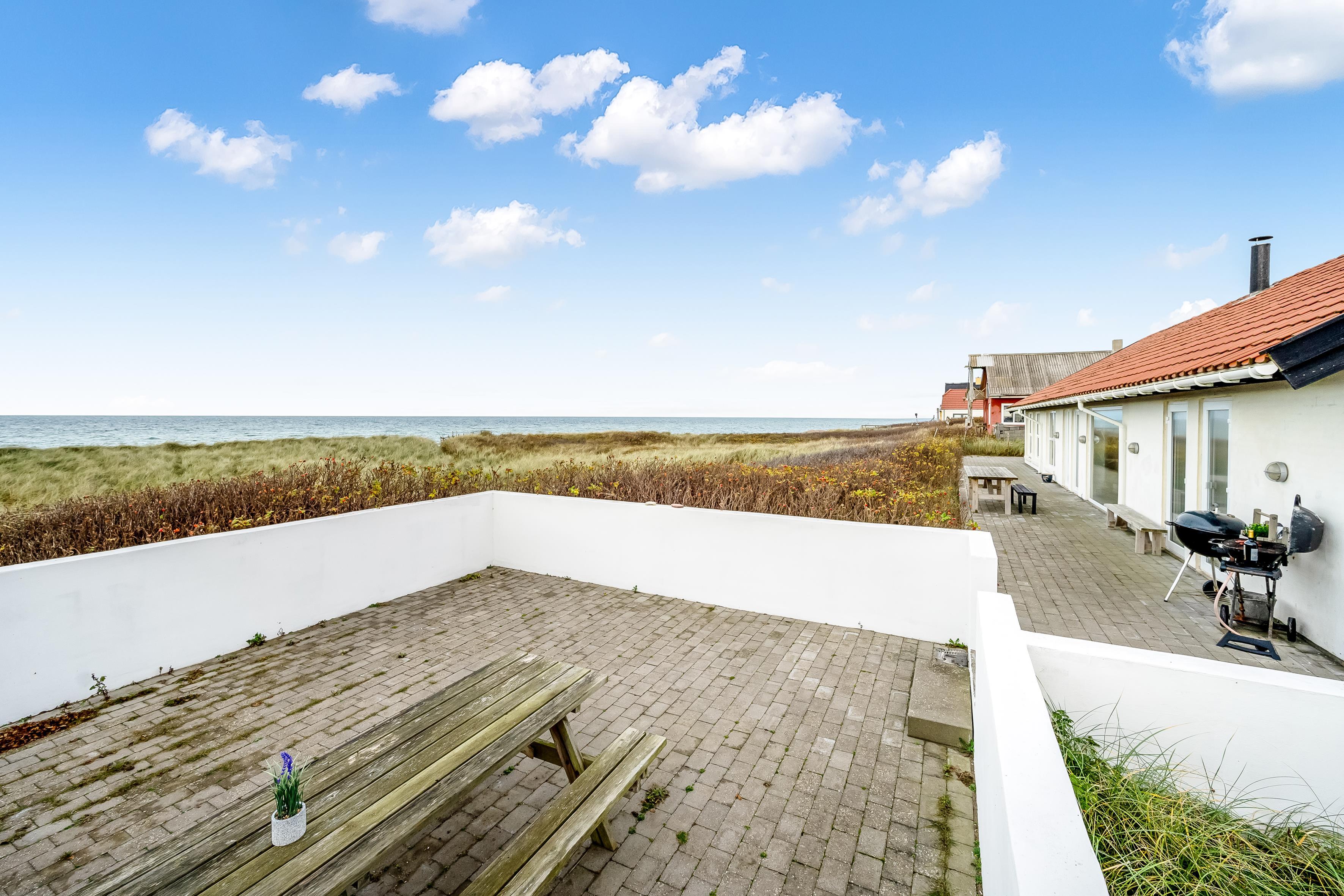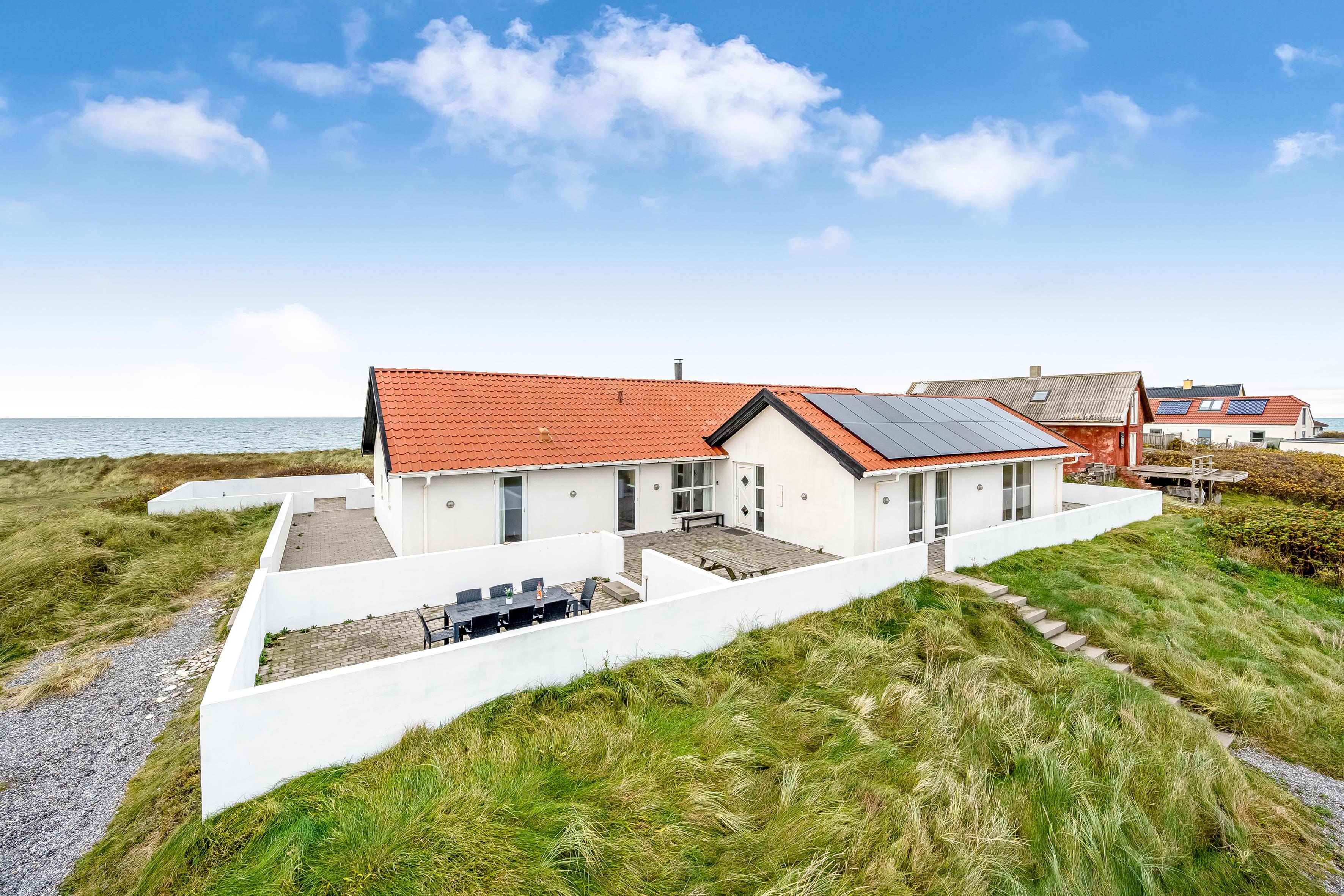 Sommerhuset rummer op til 12 personer og er særligt egnet til familier med større børn, da 2 af sovepladserne er på hemsen. Ferieboligen er på hele 260 m², bygget i 1990, og ligger på en smuk naturgrund på 1700 m², kun 25 meter fra havet. Her kan du tage en forfriskende dukkert i havet eller nyde den store 130 m² terrasse med udsigt over havet og de omkringliggende klitområder.