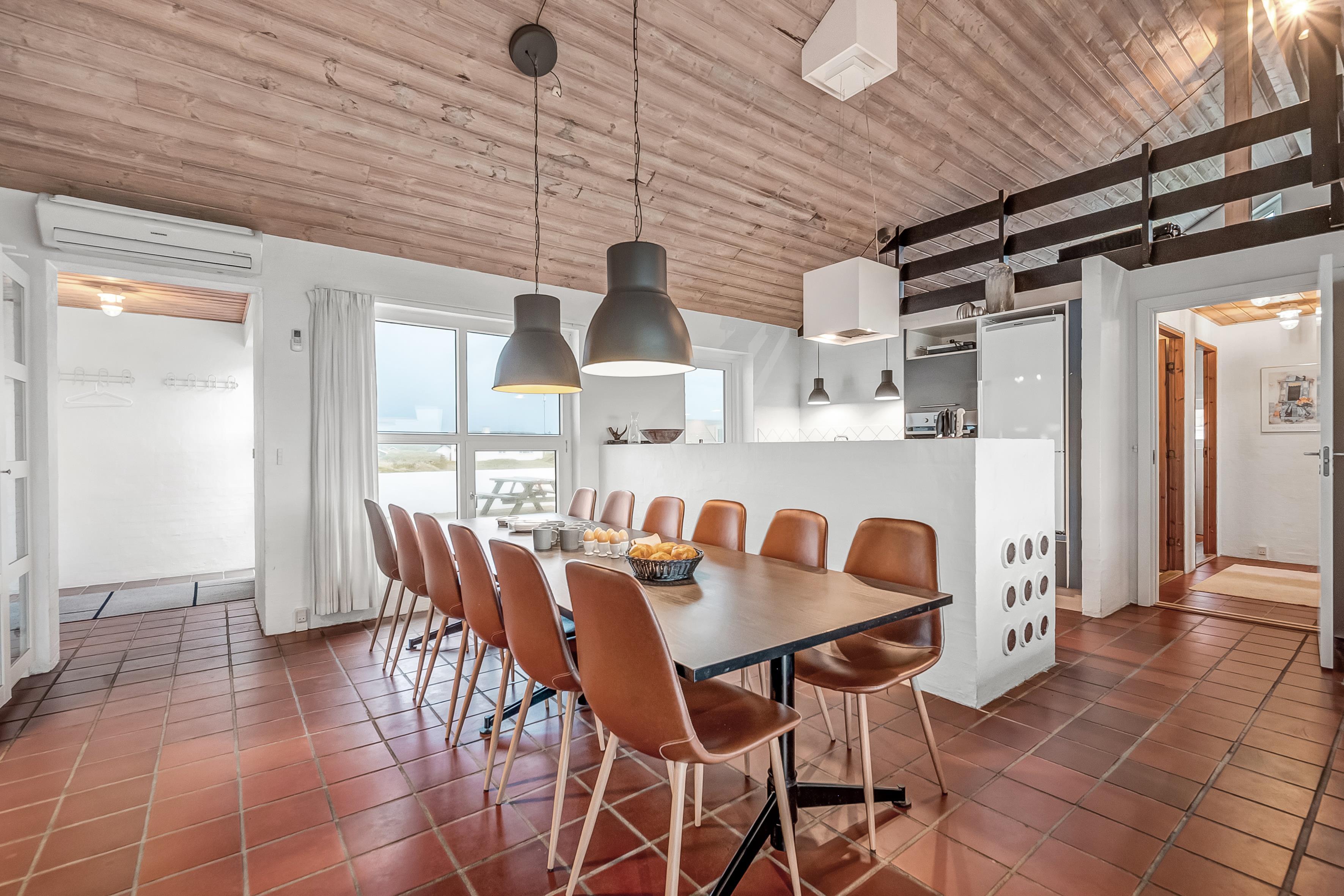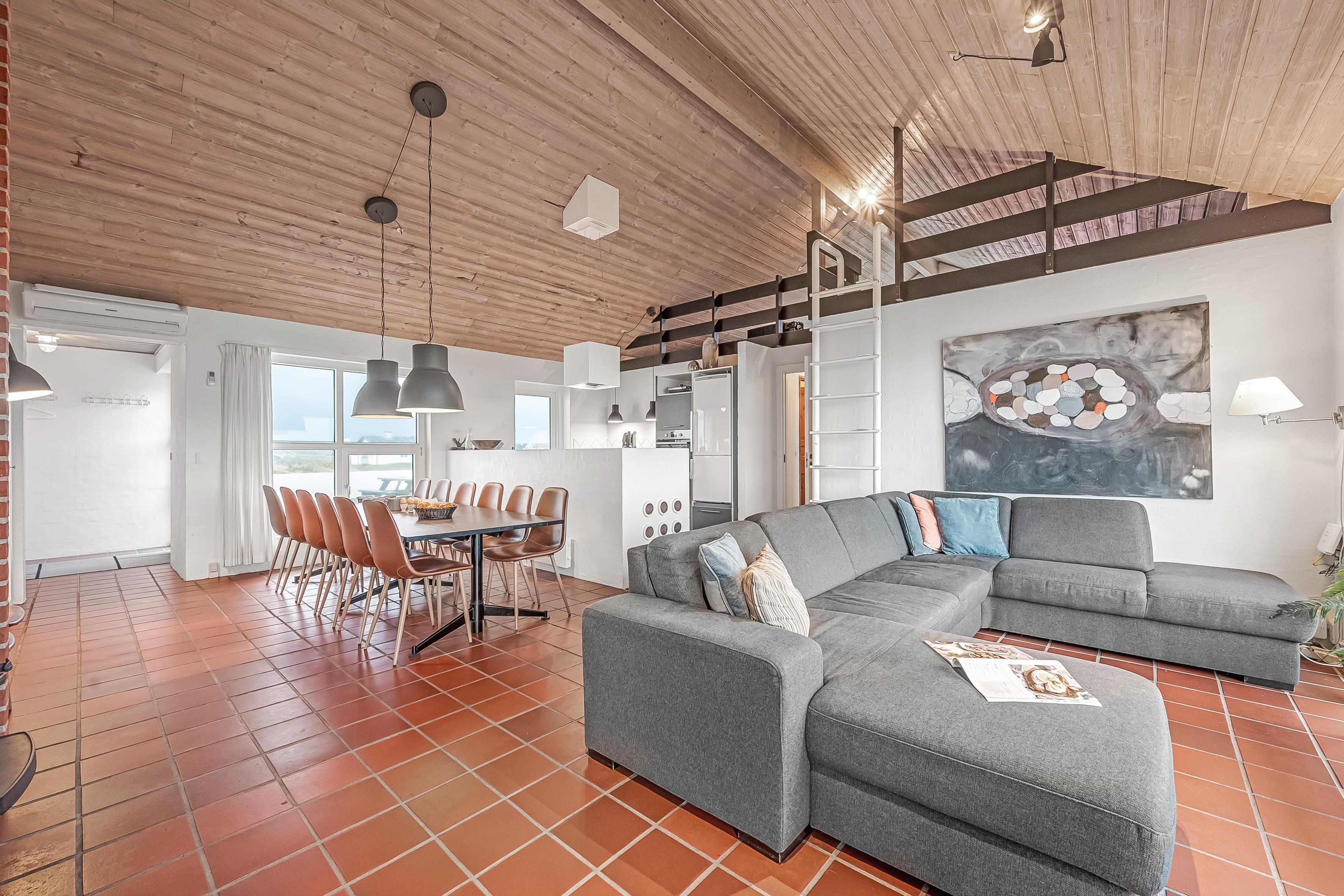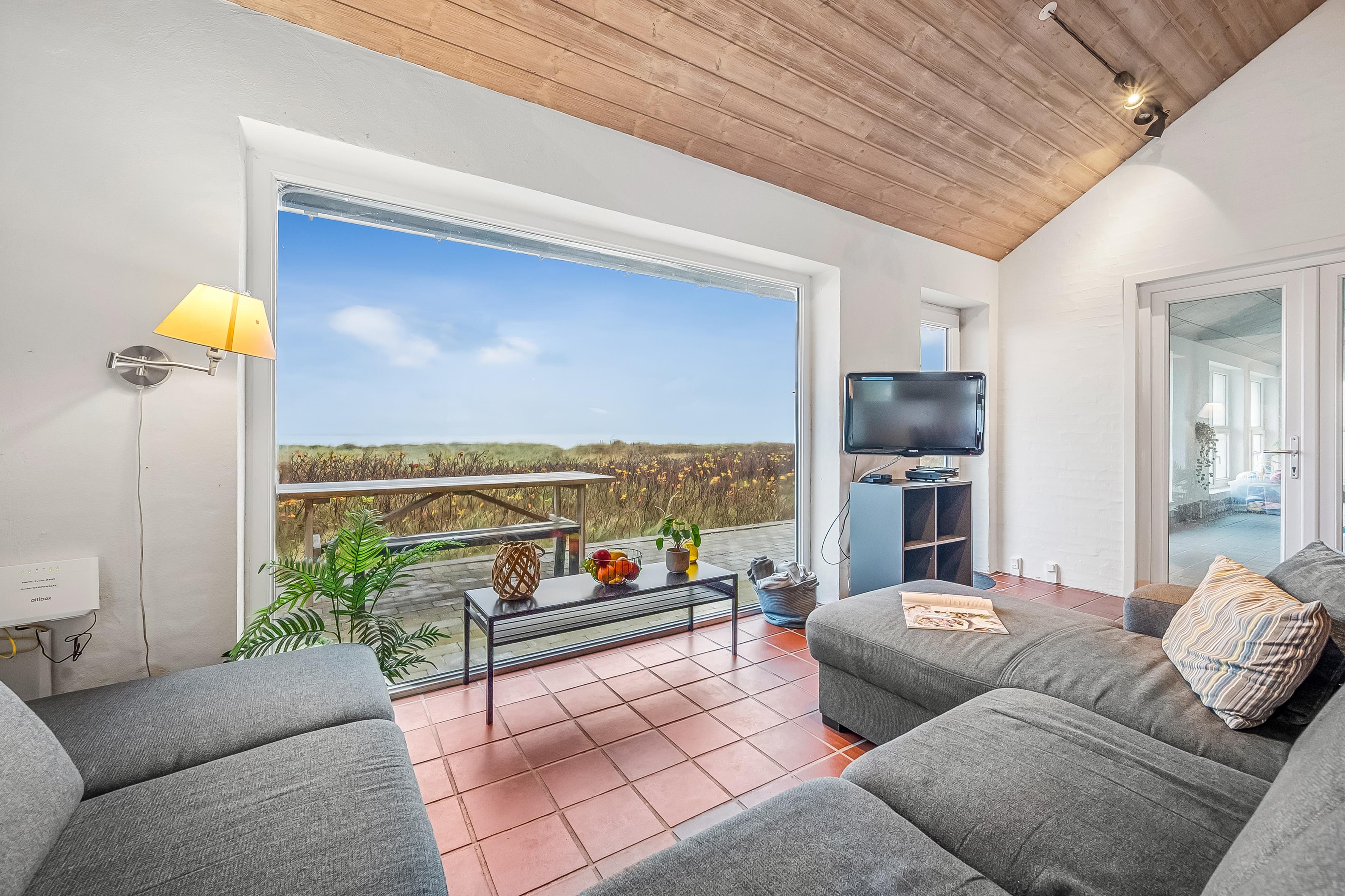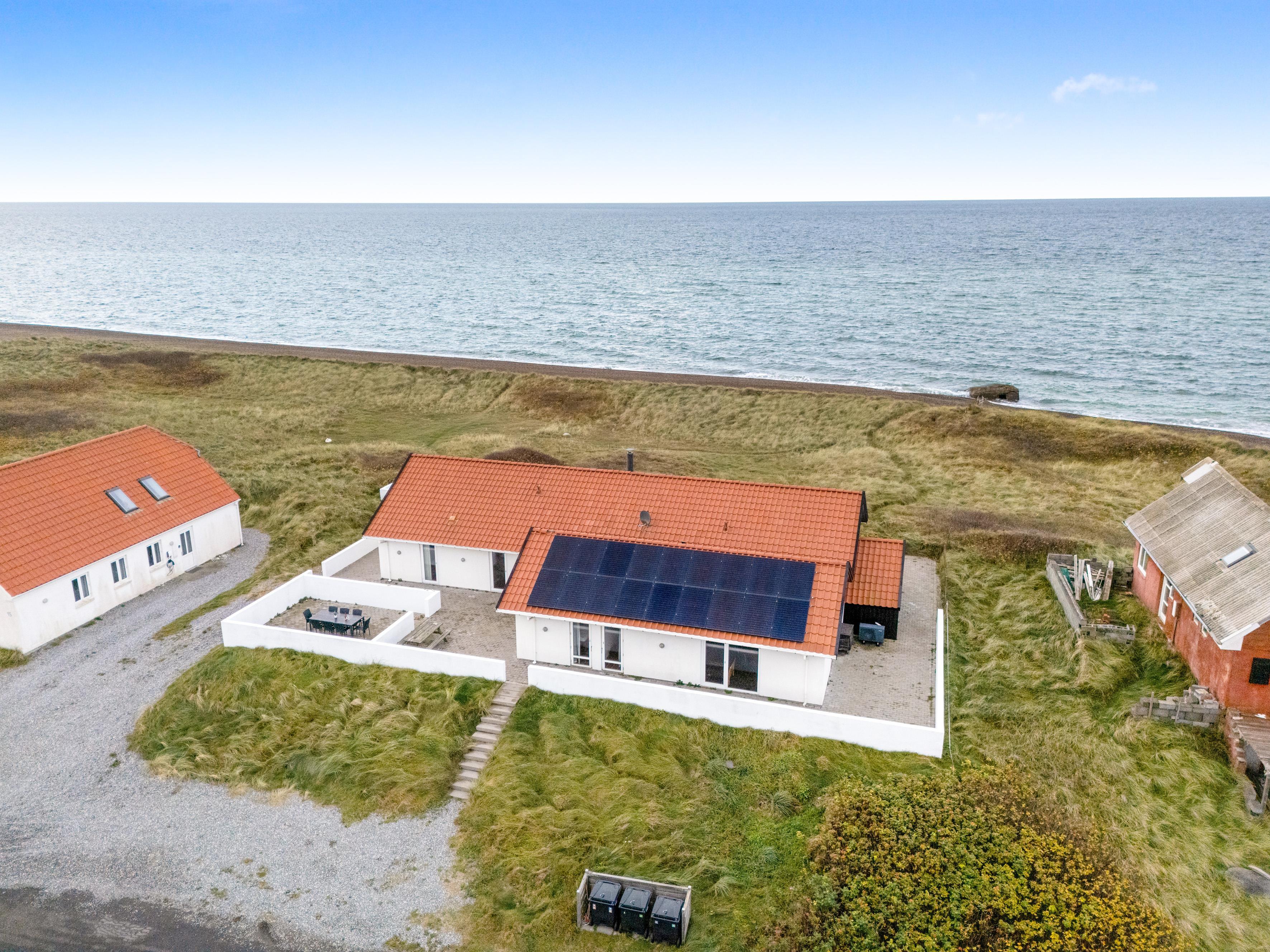 Sommerhuset rummer op til 12 personer og er særligt egnet til familier med større børn, da 2 af sovepladserne er på hemsen. Ferieboligen er på hele 260 m², bygget i 1990, og ligger på en smuk naturgrund på 1700 m², kun 25 meter fra havet. Her kan du tage en forfriskende dukkert i havet eller nyde den store 130 m² terrasse med udsigt over havet og de omkringliggende klitområder.