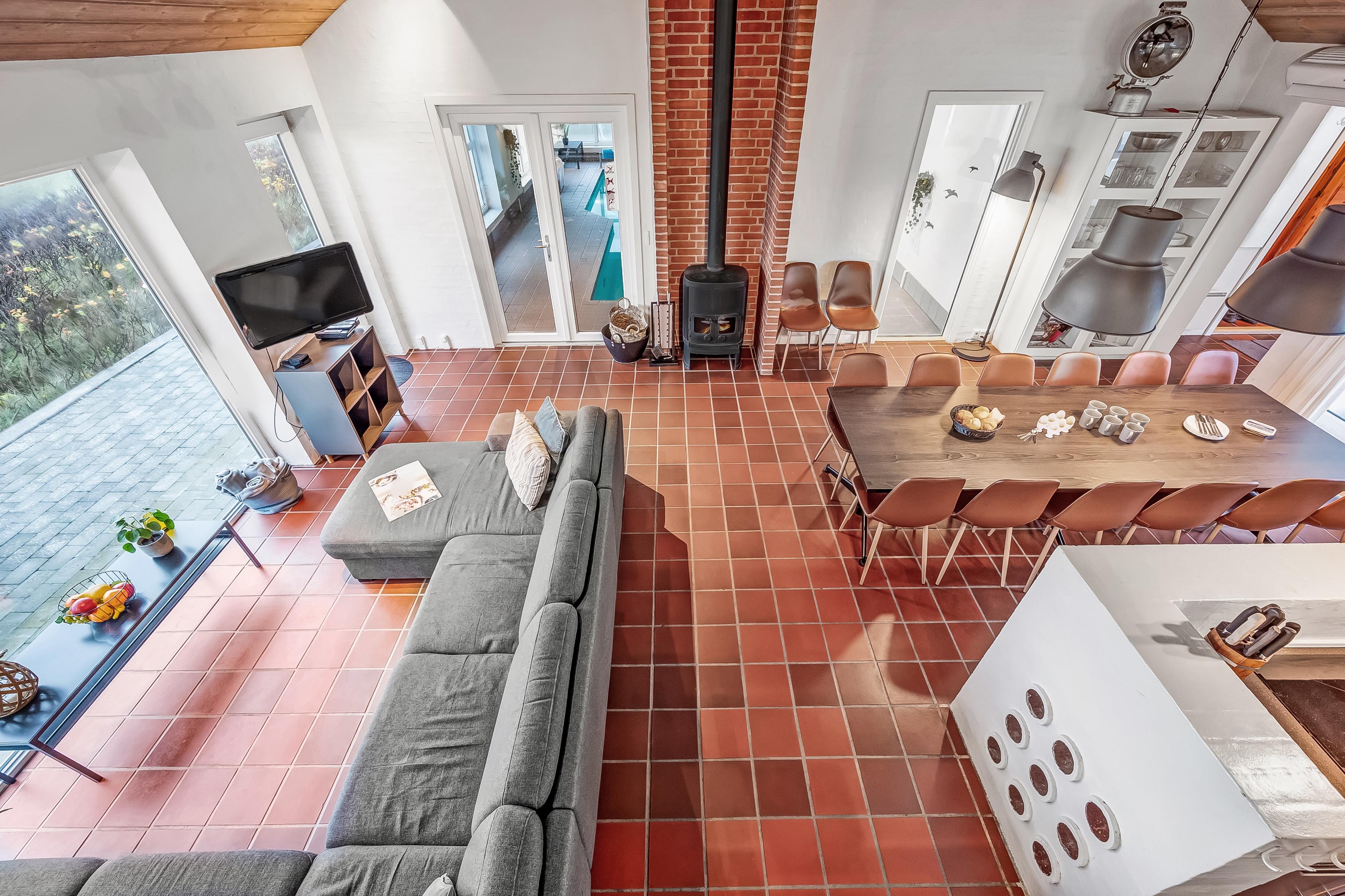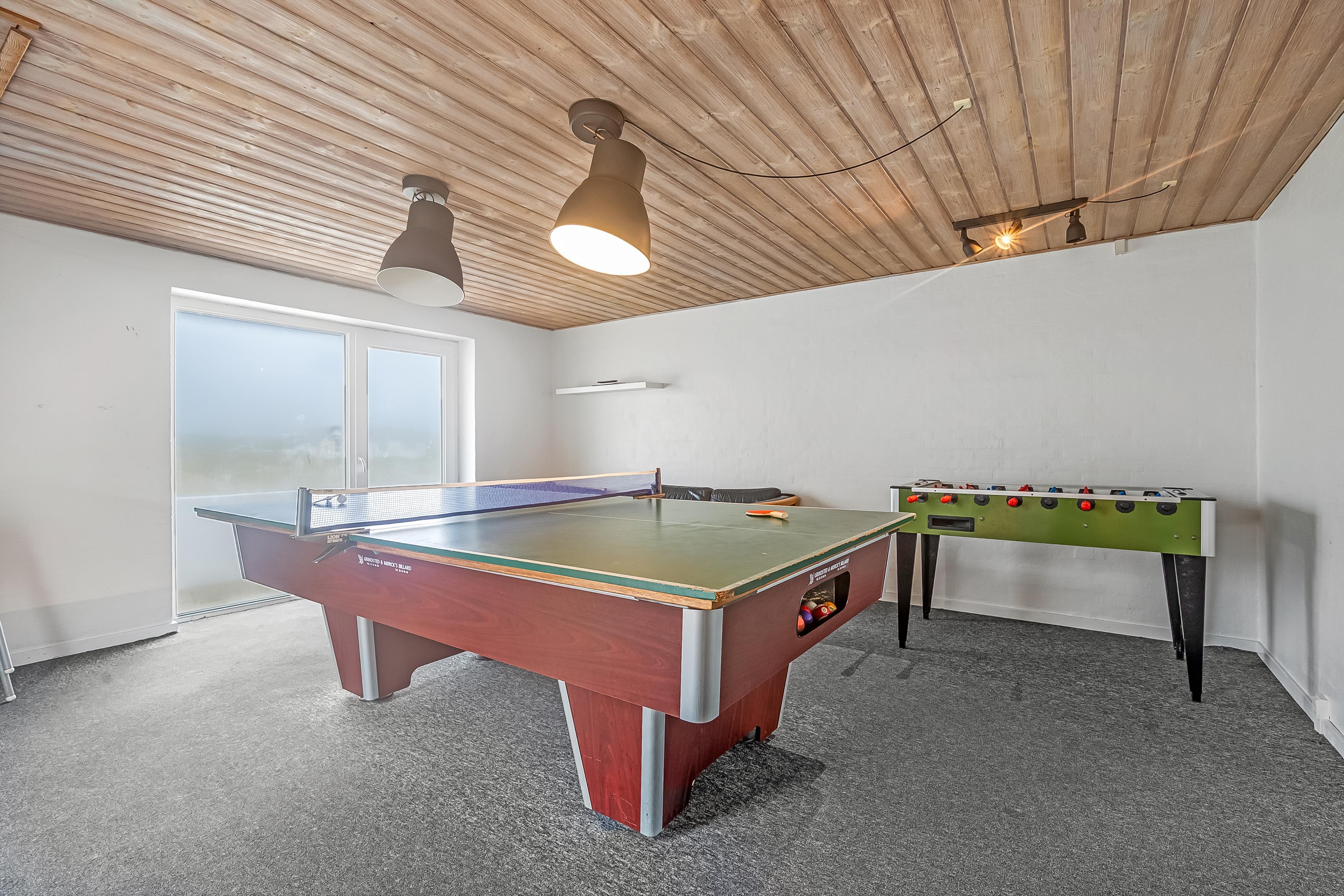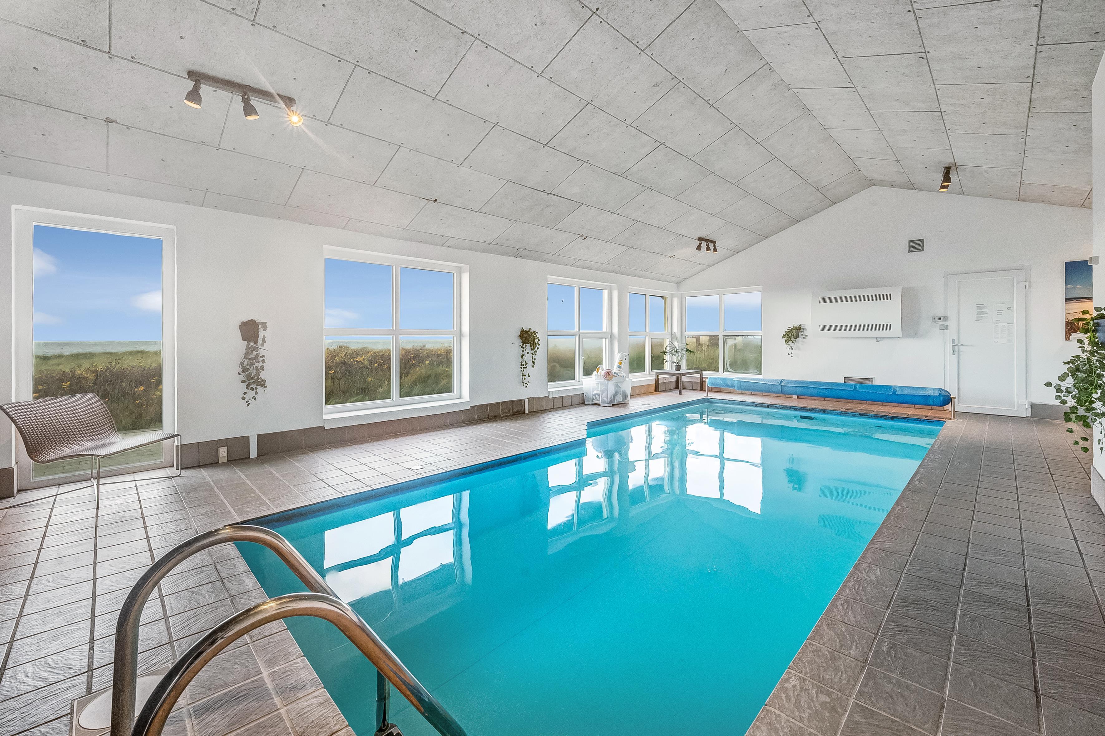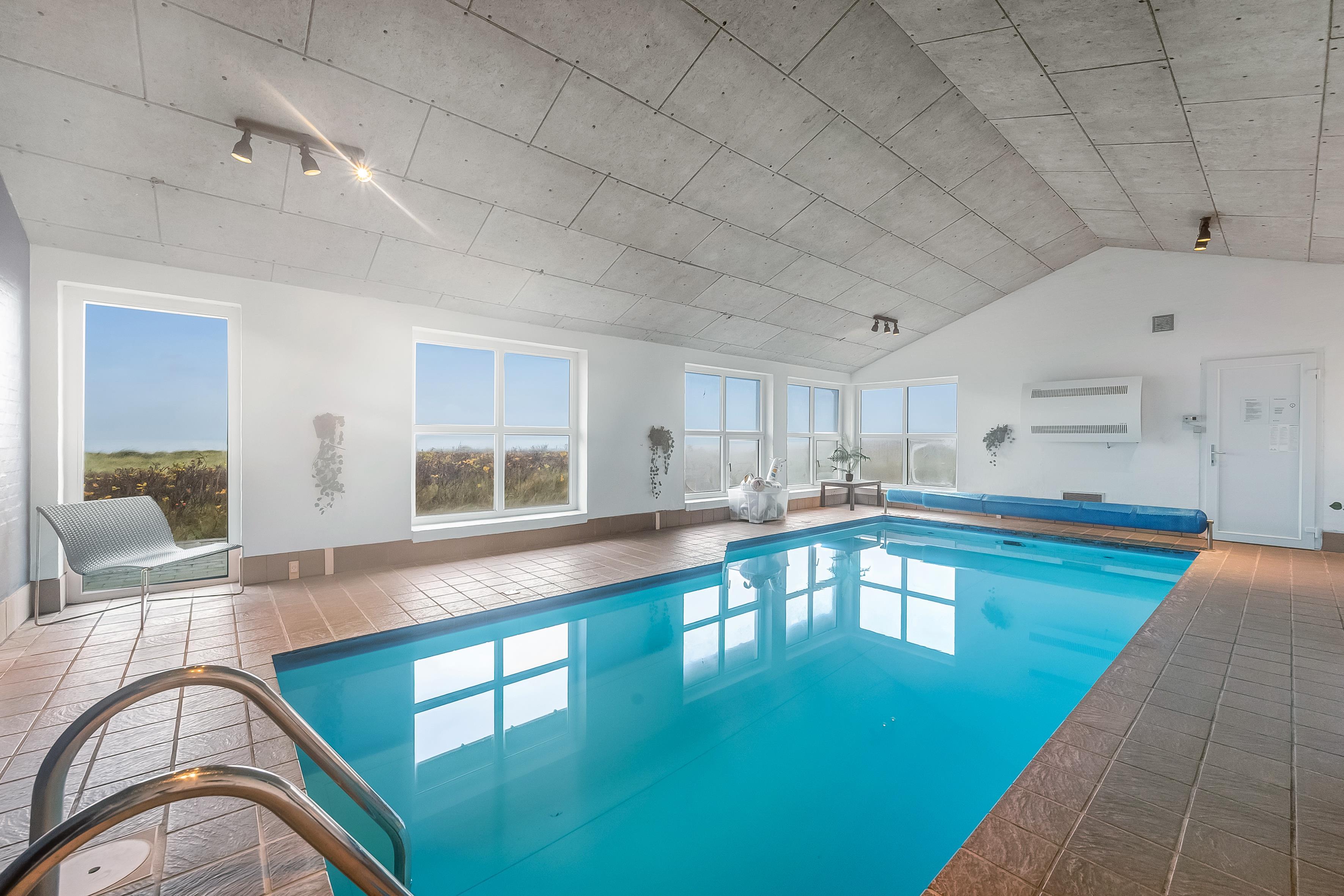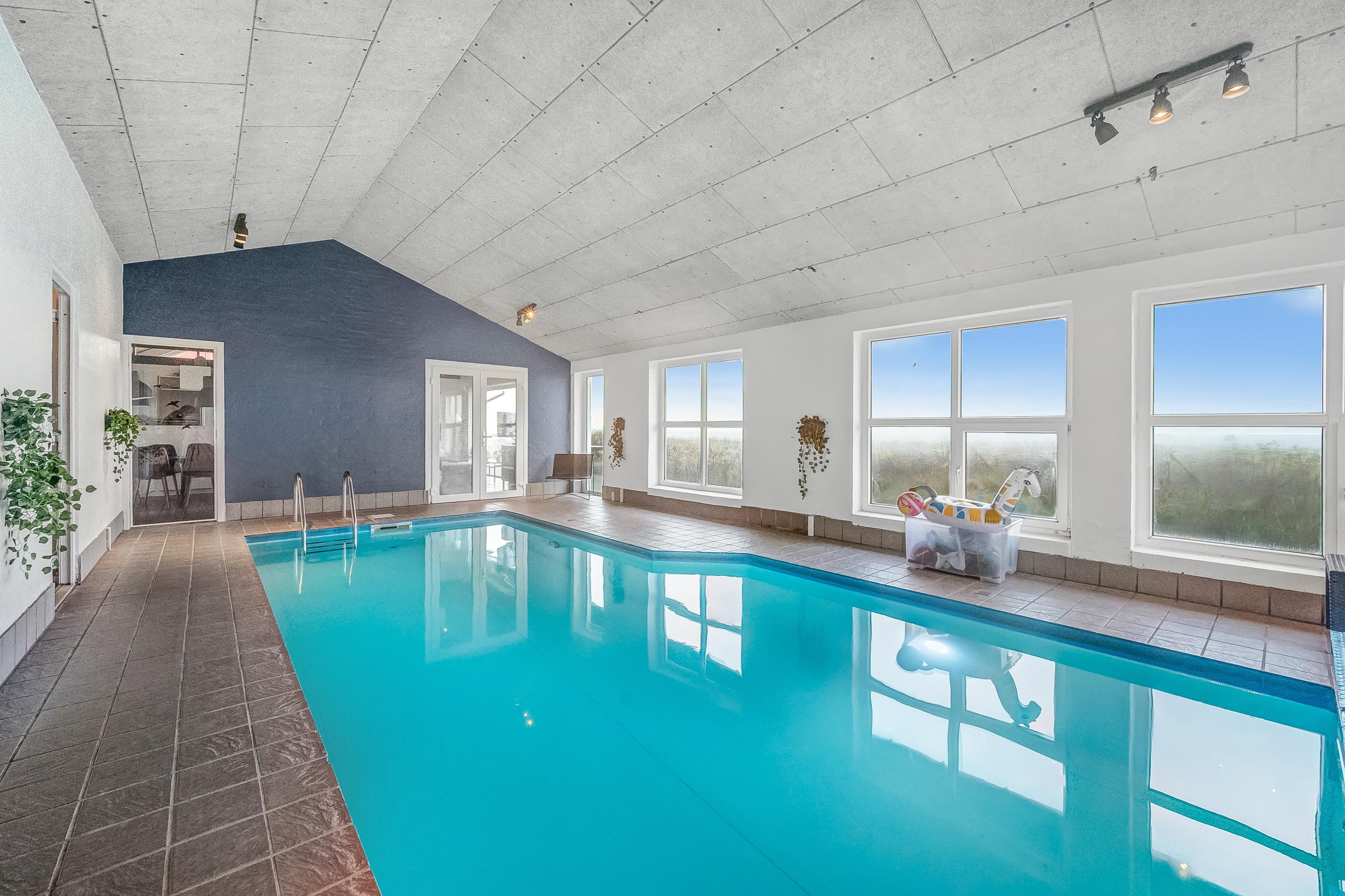 Indendørs byder sommerhuset på masser af plads og aktiviteter. Poolhuset har en skøn swimmingpool, hvor vandet altid er dejligt varmt – perfekt til både leg og afslapning. Derudover er der mulighed for at underholde sig i husets aktivitetsrum med billard, dart og bordfodbold. De fem rummelige soveværelser og hemsen sikrer god nattesøvn for hele familien, mens den indendørs spa og sauna tilbyder afslapning og velvære efter en lang dag i naturen.
