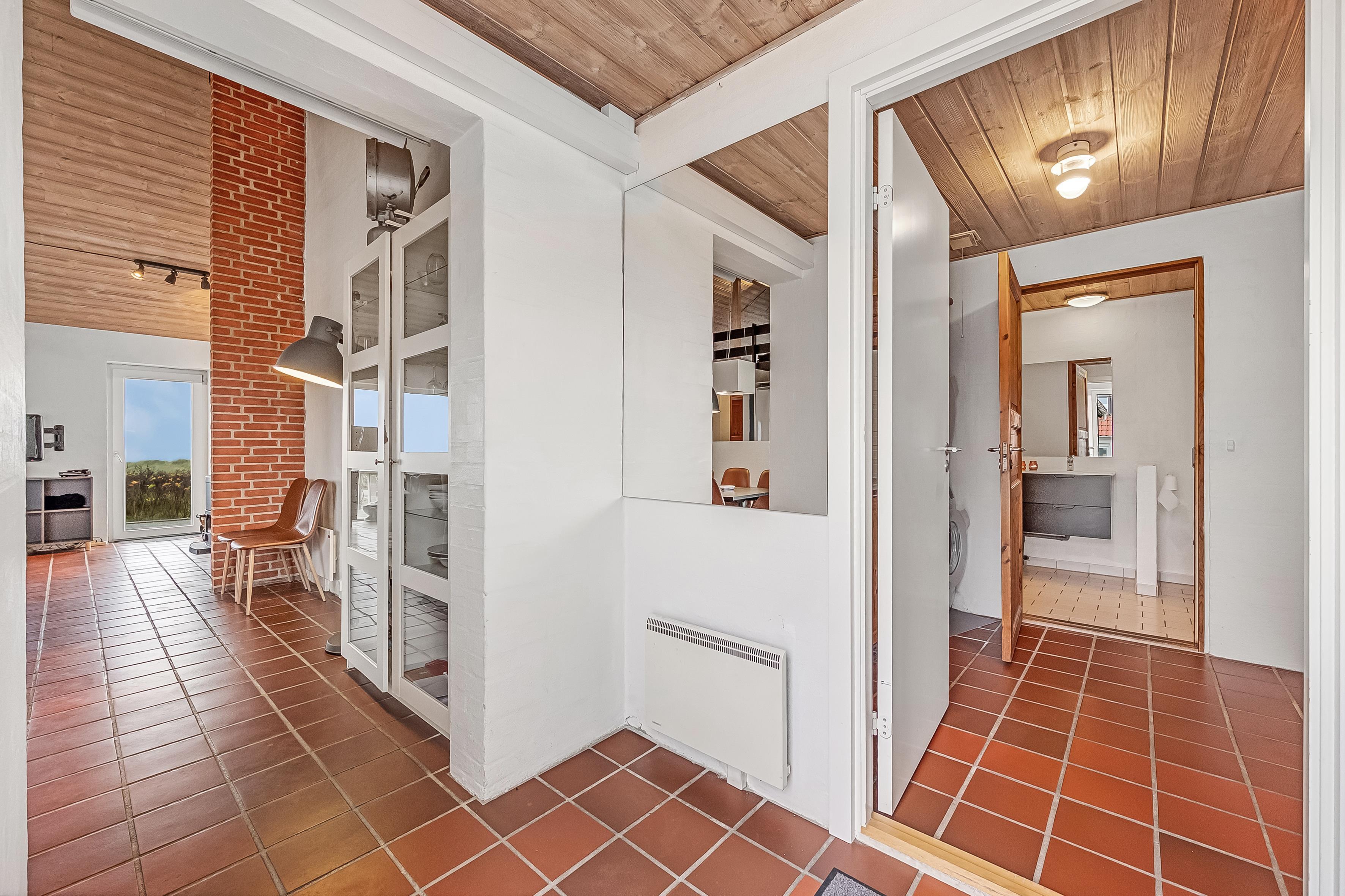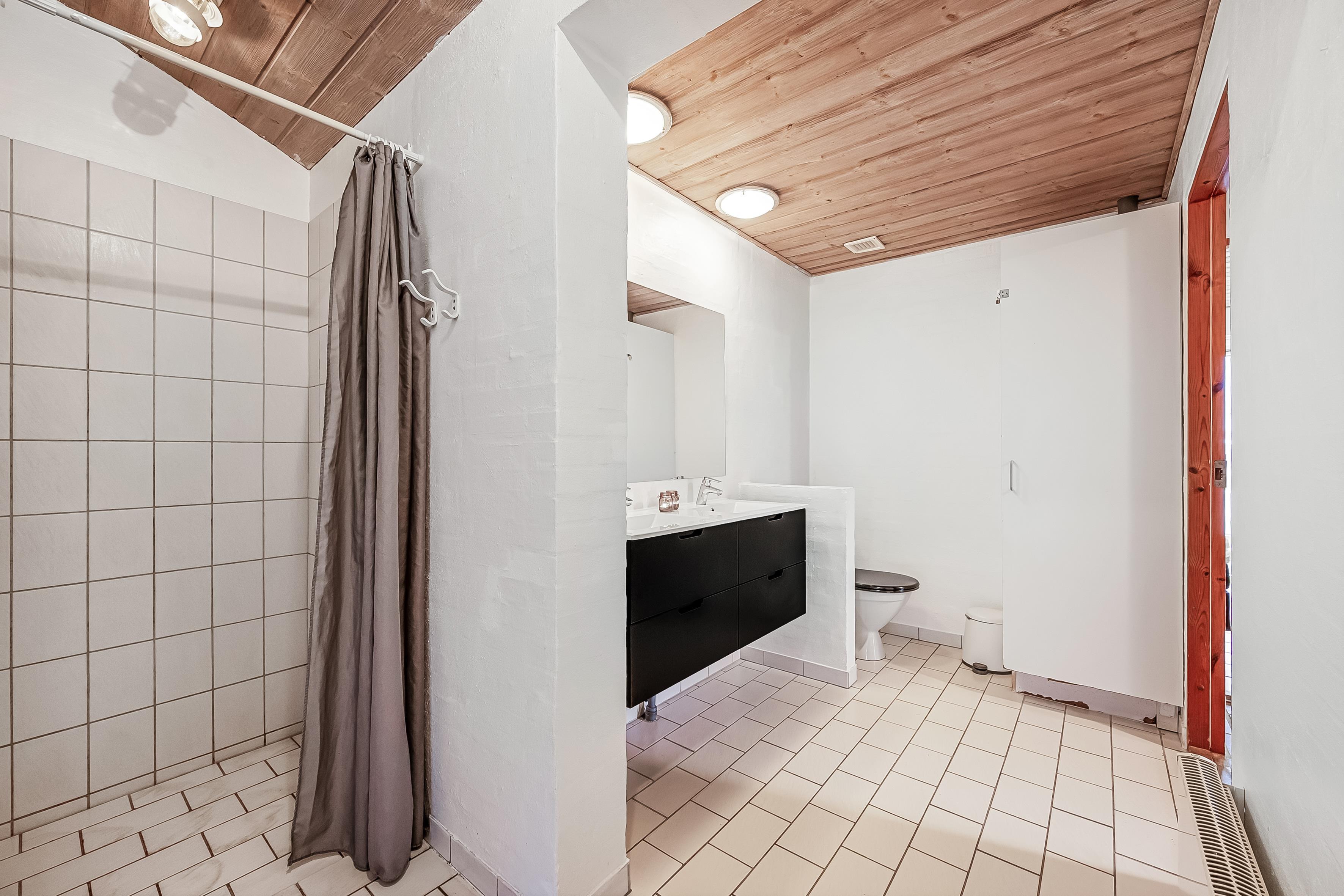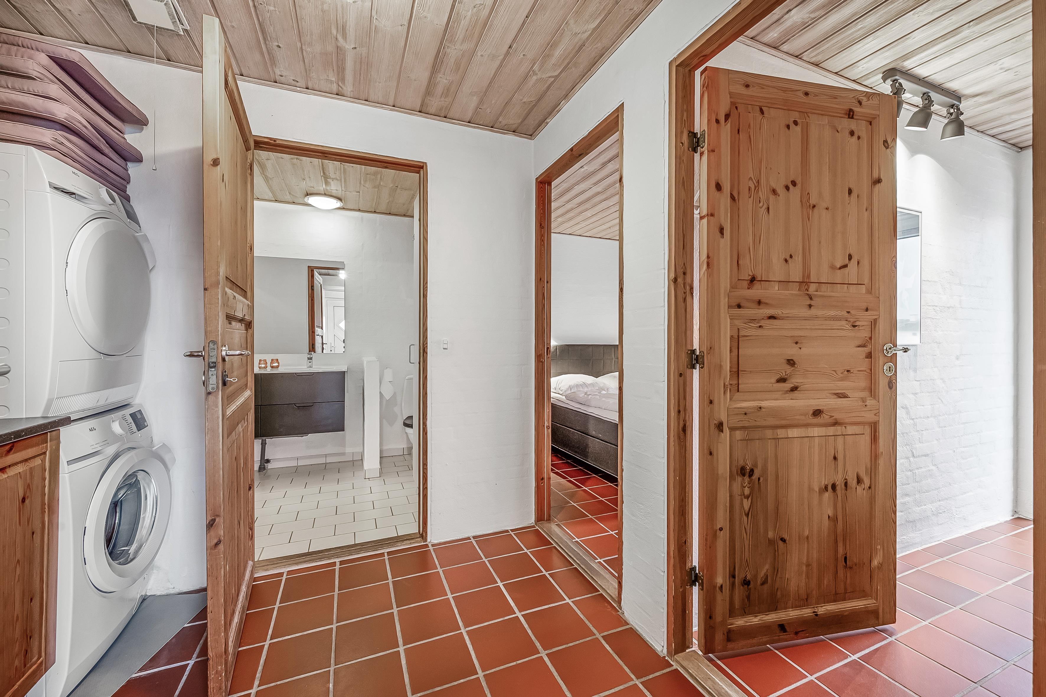 Køkkenet er fuldt udstyret med alt, hvad du behøver for at tilberede lækre måltider – moderne faciliteter som induktionskogeplader, varmluftovn, mikrobølgeovn og opvaskemaskine er selvfølgelig tilgængelige. Sommerhuset har desuden to badeværelser med bruseniche og gulvvarme, hvilket sikrer ekstra komfort.