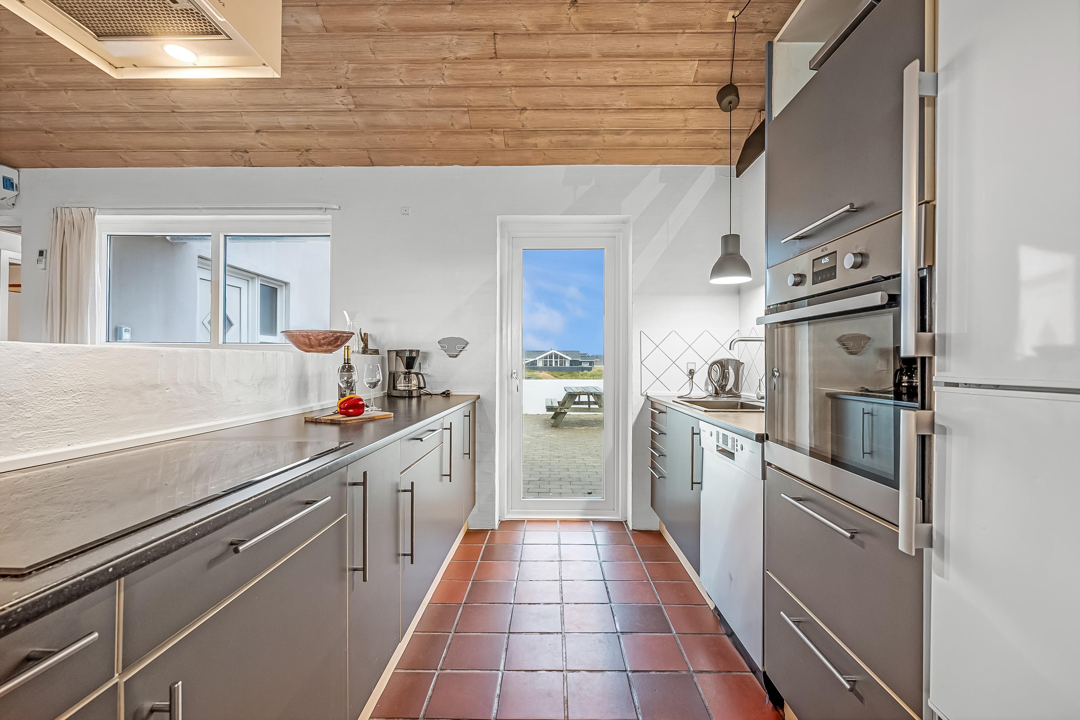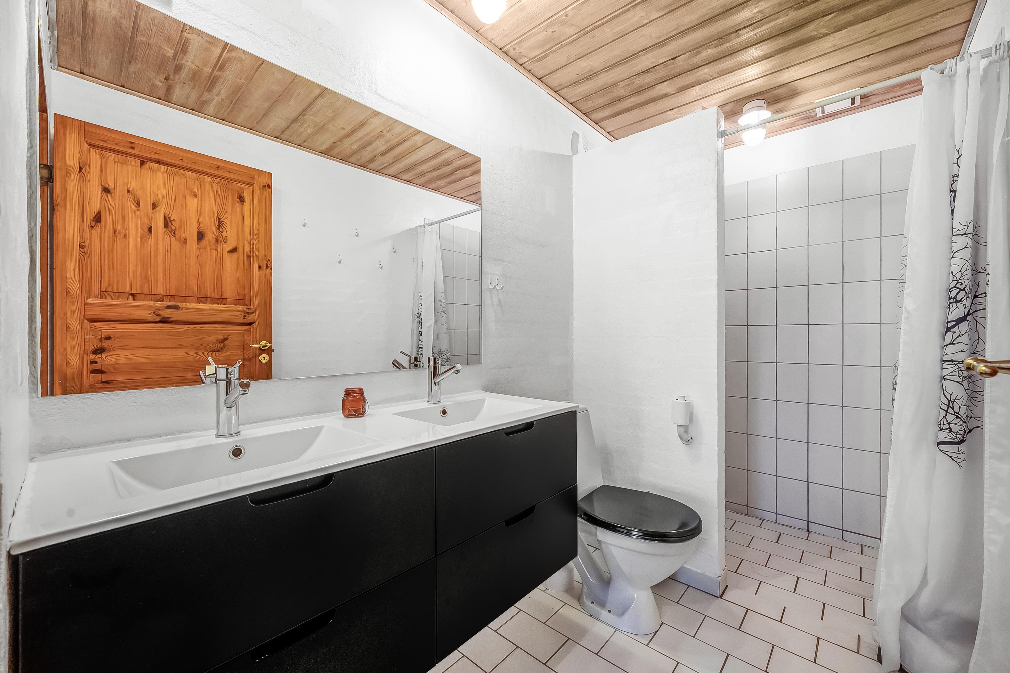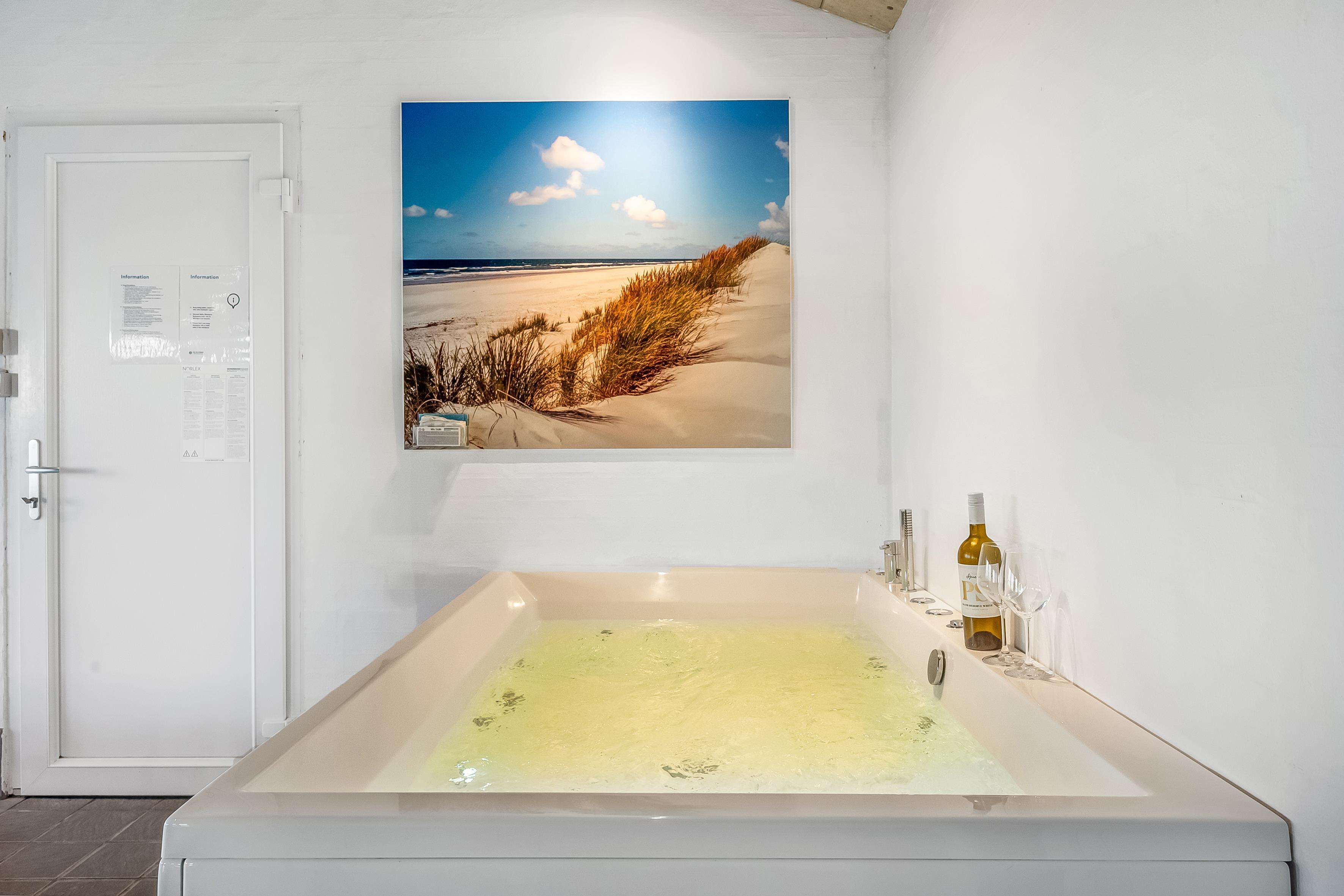 Køkkenet er fuldt udstyret med alt, hvad du behøver for at tilberede lækre måltider – moderne faciliteter som induktionskogeplader, varmluftovn, mikrobølgeovn og opvaskemaskine er selvfølgelig tilgængelige. Sommerhuset har desuden to badeværelser med bruseniche og gulvvarme, hvilket sikrer ekstra komfort.