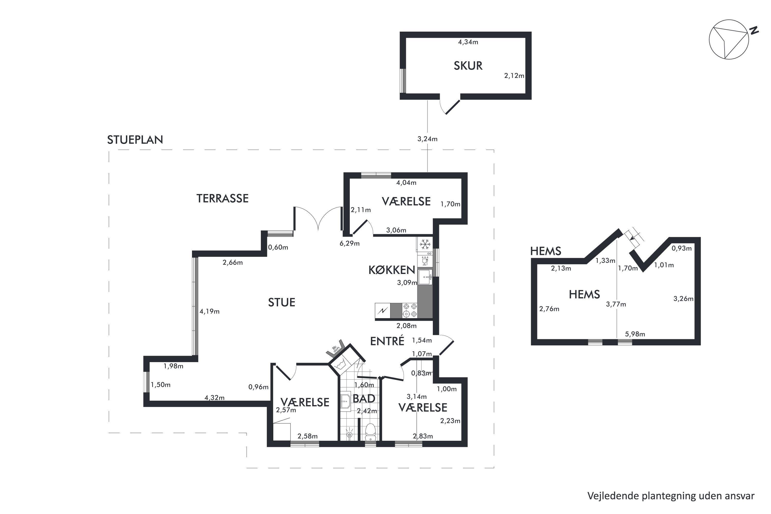 Huset har et samlet boligareal på 82 kvadratmeter, hvilket giver rigelig plads til at slappe af og nyde livet. Indendørs finder du tre soveværelser, hvoraf de to er udstyret med dobbeltsenge, mens det tredje har to enkeltsenge. Dette giver mulighed for op til seks sovepladser, hvilket gør det ideelt til familieudflugter eller ophold med venner. Den åbne planløsning i stuen skaber en lys og indbydende atmosfære, hvor du kan slappe af efter en lang dag ved stranden. Her finder du også et tv, der tilbyder både dansk og tysk tv, samt Chromecast til streaming af dine yndlingsprogrammer.