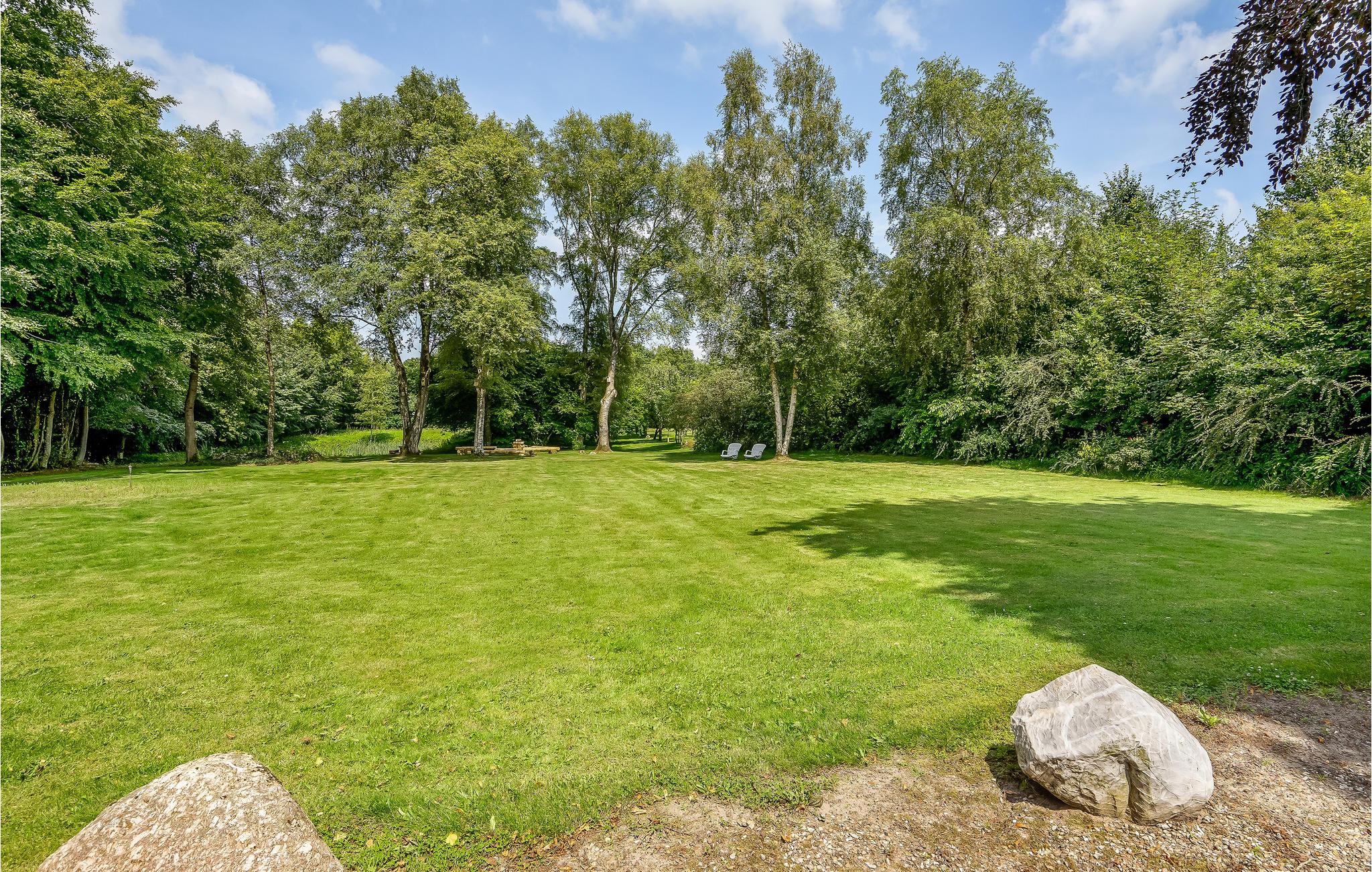 Gæsterne kan slappe af i den store have eller på den møblerede terrasse med grillplads. Sæt jer med tæpper ved bålstedet i skyggen af ??træerne eller udforsk den store grund i udkanten af ??skoven og den fine dam. Børnene finder masser af plads til at lege, mens de voksne kan slappe lidt af.