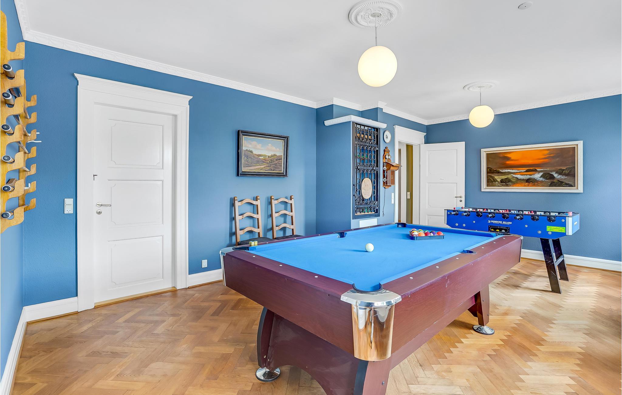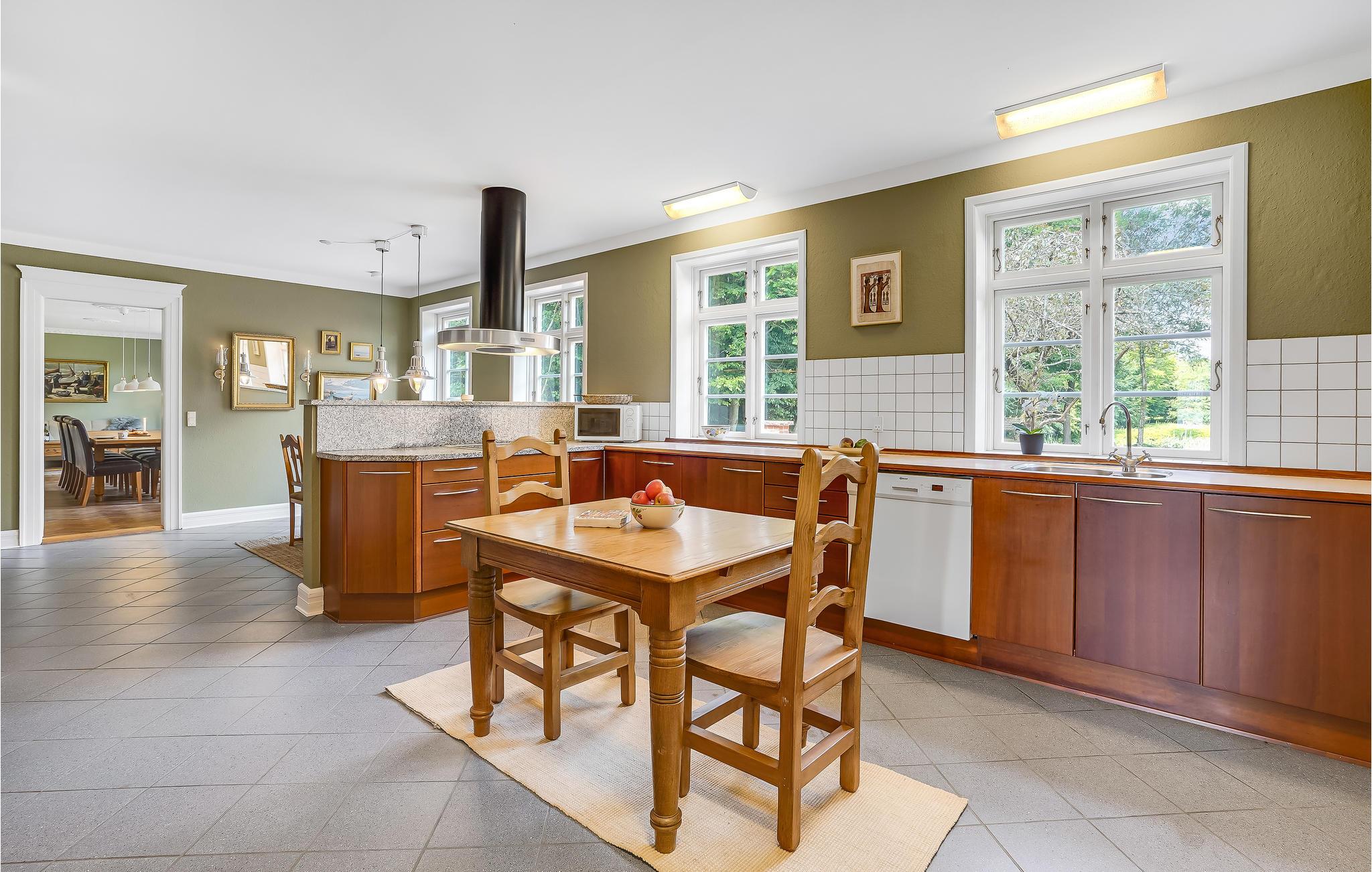Velkommen til denne charmerende tidligere gård, som er idyllisk placeret i udkanten af ??et stykke skov. Nyd den stille ro, nærheden til naturen og et ophold med sjæl og historie. Oplev de lyse, indbydende værelser med stilfulde indretningsløsninger. Slå jer ned i en af ??de to stuer og læn jer tilbage i sofaen foran fjernsynet eller en af ??de komfortable lænestole. Find nogle brætspil frem eller nyd et glas vin i den rolige atmosfære. Lav maden sammen i det store køkken og dæk op ved et af de lange spiseborde. I aktivitetsrum er der mulighed for sjove timer efter dagens eventyr, så snup et spil pool eller bordfodbold, mens I taler om dagens højdepunkter.