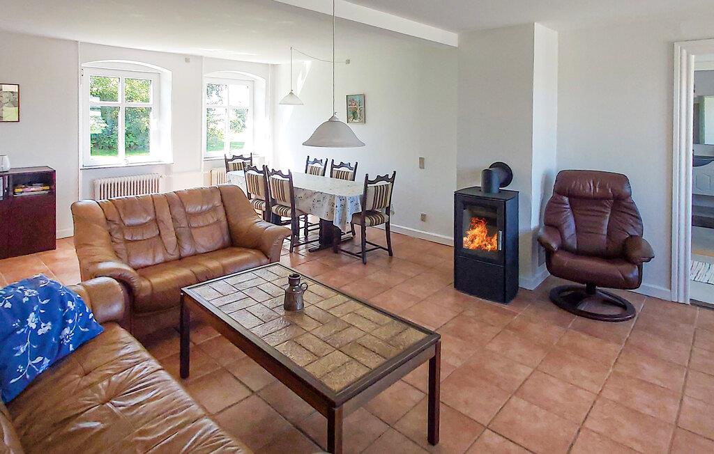 Oplev fred, åbne vidder og frisk havluft i jeres rummelige feriehus på det vestlige Lolland. Beliggende midt i naturen tilbyder denne historiske ejendom masser af plads til afslapning, udendørsaktiviteter og fælles oplevelser. I stueetagen finder I en hyggelig stue med brændeovn og komfortable siddepladser, en indbydende spiseplads og et moderne køkken med rigelig plads til madlavning. Ovenpå inviterer endnu en stue med tv og skrånende lofter jer til at trække jer tilbage eller spille spil sammen.