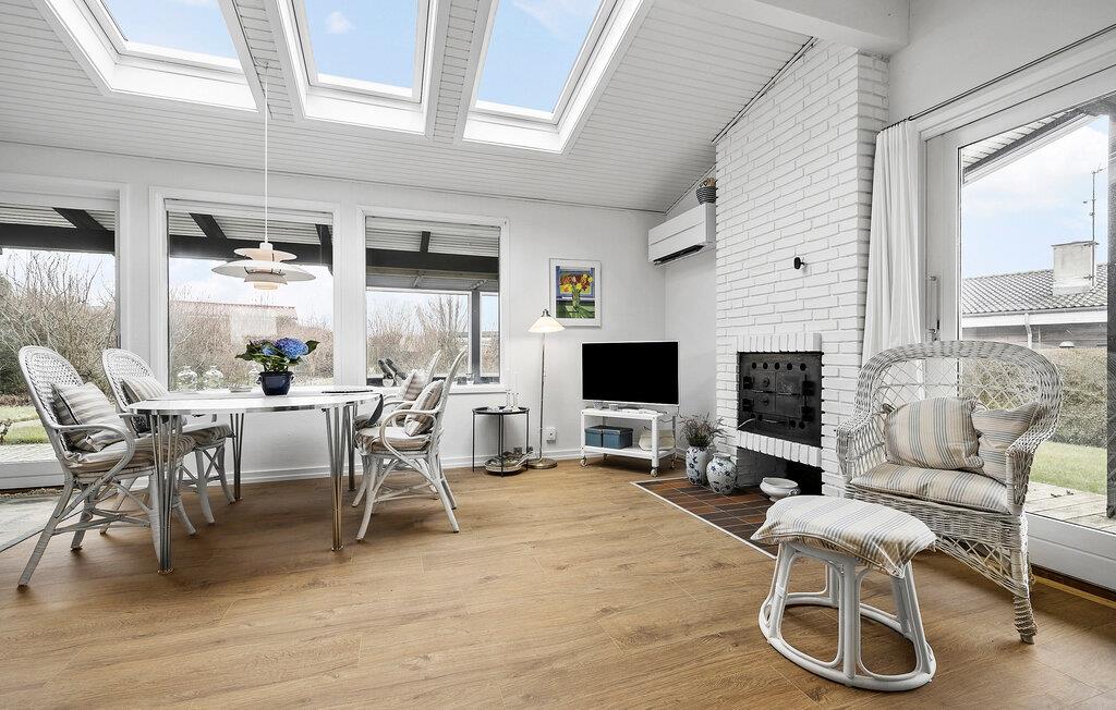Den rolige beliggenhed nær Roskilde Fjord, flotte indretningsløsninger og nærheden til naturen giver jer den perfekte base til jeres feriedage. Huset er lyst og venligt med store vinduespartier, som får havens grønne rammer til at smelte sammen med livet indendørs. Læn jer tilbage i den komfortable sofa og sæt jer med en god bog efter dagens spændende oplevelser. Spiseområdet har direkte udgang til den overdækkede terrasse, så her kan I nemt rykke udendørs til en kop kaffe i sommersæsonen.