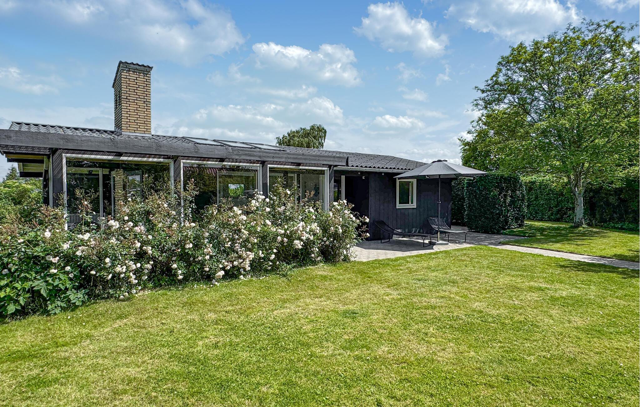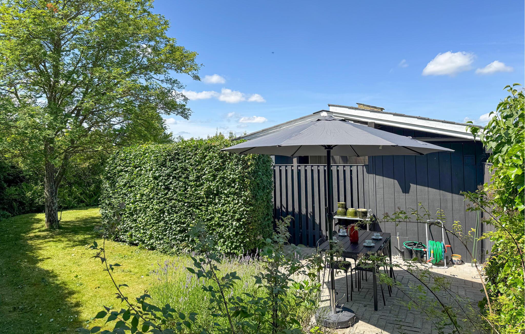 I får også stor glæde af haven. Når vejret er godt, kan I dække op til morgenmaden på en af de overdækkede terrasser. Find jer godt til rette på liggestolene i haven og tilbered aftensmaden på grillen. Udsigten over det omkringliggende landskab og den nærliggende fjord skaber en idyllisk kulisse.