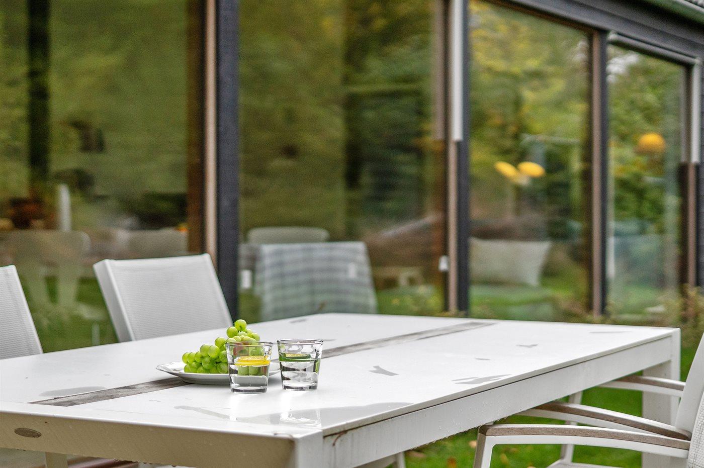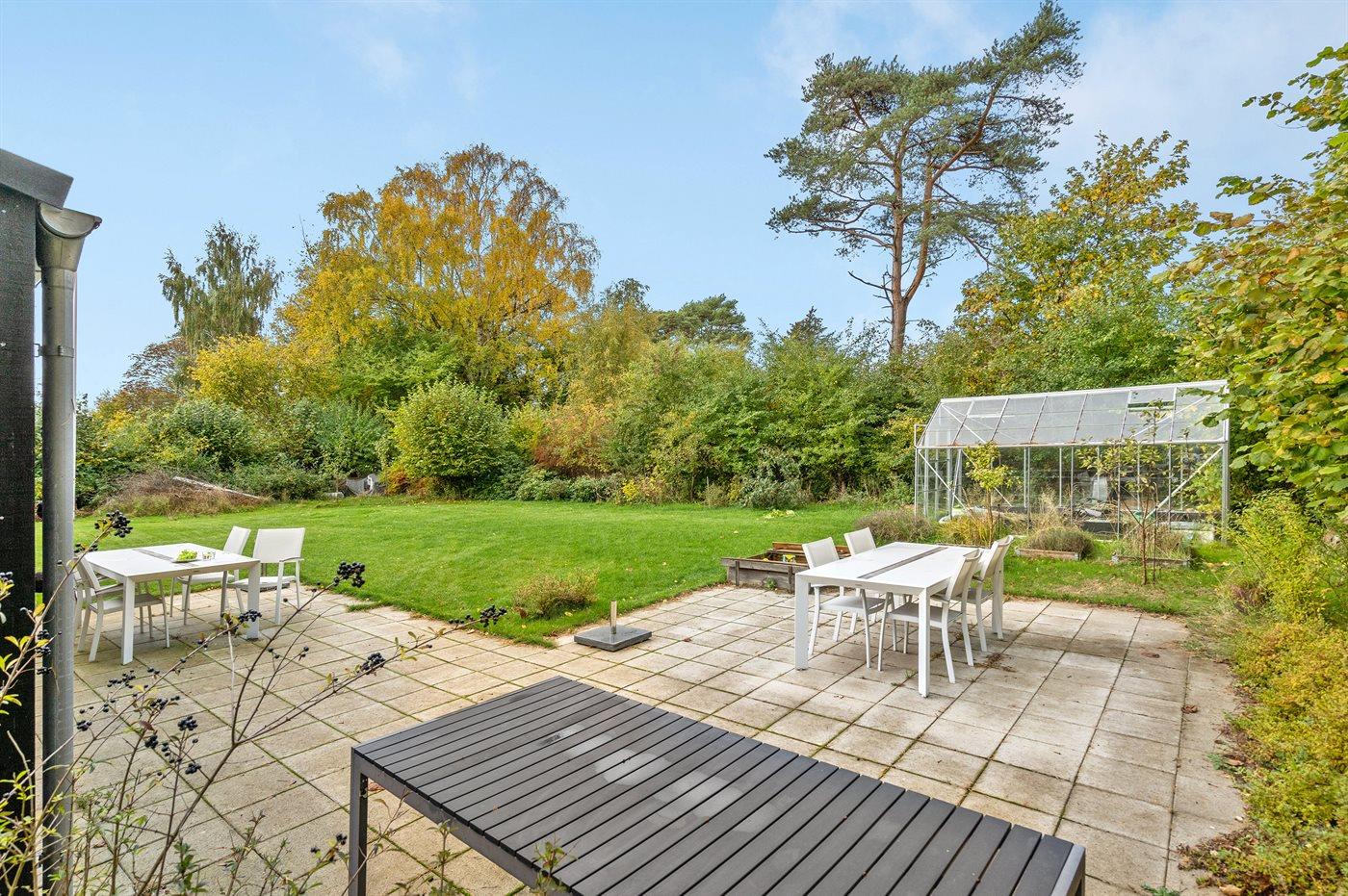 Fra henholdsvis entreen og stuen er der udgang til de 2 overdækkede terrasser, som befinder sig i hver ende af huset. Der er desuden en stor fliseterrasse.