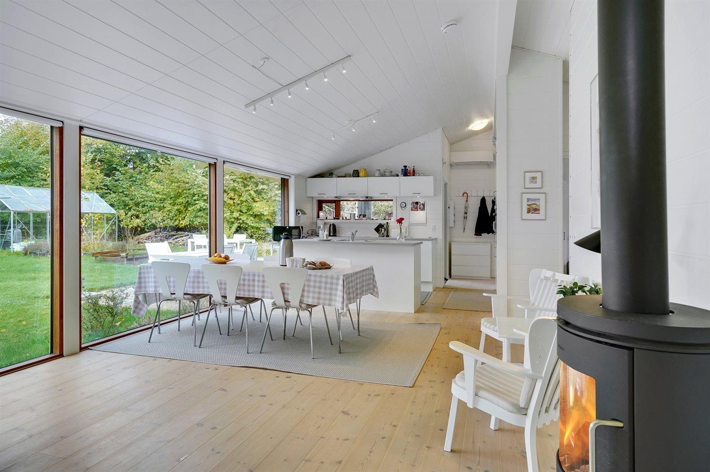 Dette nye sommerhus fra 2019 byder på masser af lys og luft takket være de store vinduespartier og loft til kip i alle rum. Huset er opført i gode materialer og er indrettet i en moderne stil. Husets hjerte er det store opholdsrum med køkken, spiseplads og stue ud i et. Huset indeholder 4 soveværelser samt 2 badeværelser med gulvvarme og bruseniche. I forbindelse med det ene badeværelse er der tillige sauna. Der er også udebruser.