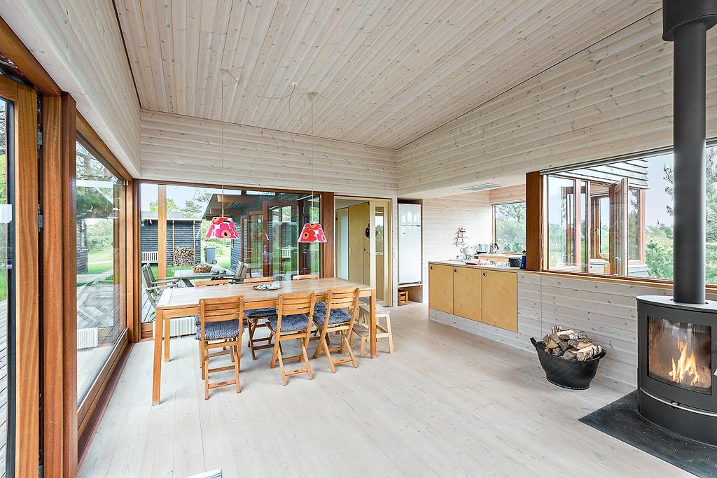 Træd ind i dette lyse og rummelige sommerhus, hvor indretningen med naturmaterialer og de store panoramavinduer skaber en harmonisk forbindelse mellem inde og ude. Stuen indbyder til samvær med komfortable møbler, hvor du kan læne dig tilbage og nyde udsigten over de smukke hestefolde. Det åbne køkken, der er forbundet med spiseområdet, gør det nemt at tilberede måltider, mens du stadig er en del af samtalen. Her er tænkt på detaljerne, så du straks føler dig hjemme. Når aftenen falder på, kan du trække dig tilbage til de hyggelige soveværelser, der er indrettet til ro og afslapning. Badeværelset er elegant og indbydende, med plads til både velvære og praktisk funktionalitet.