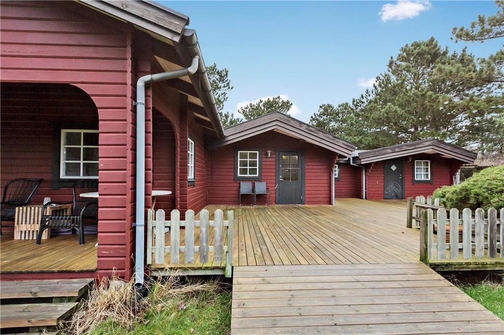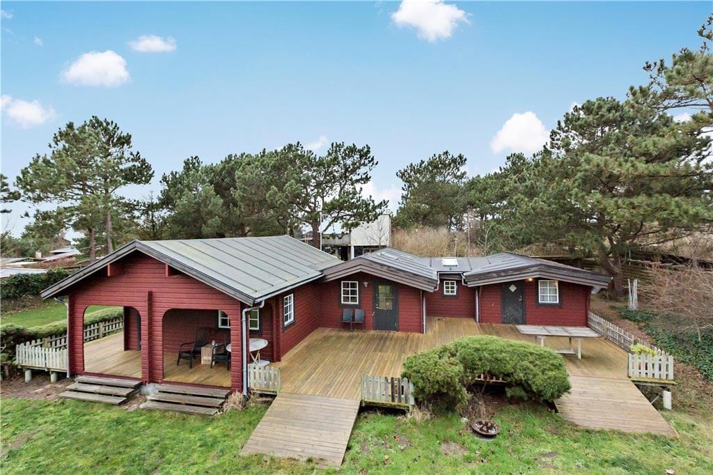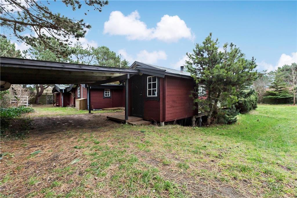 Sommerhuset ligger på en 1200 kvm stor, indhegnet grund, perfekt til børnefamilier. Fra opholdsstuen er der direkte udgang til den overdækkede terrasse, hvor du kan nyde de lange sommeraftener, selv når duggen falder eller regnen trommer blidt på taget. Terrassen er udstyret med grill og havemøbler, hvilket gør det til det perfekte sted for hyggelige grillmiddage under åben himmel.