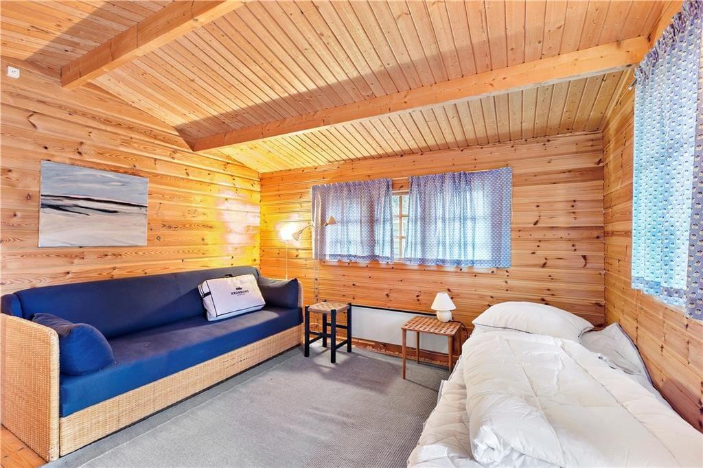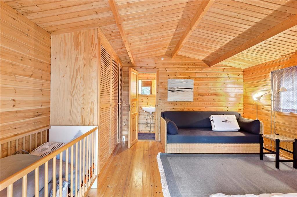 Annekset, indrettet med en dobbeltseng og en sovesofa, byder på endnu mere plads til ro og hygge. Her er også et ekstra badeværelse med toilet og bruseniche, hvilket gør opholdet endnu mere komfortabelt.