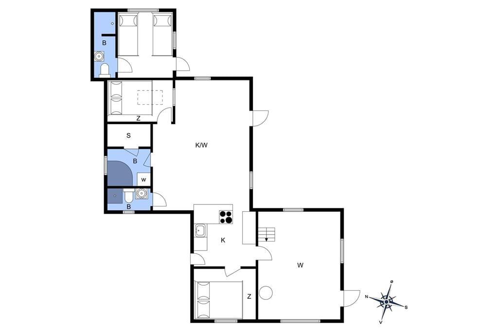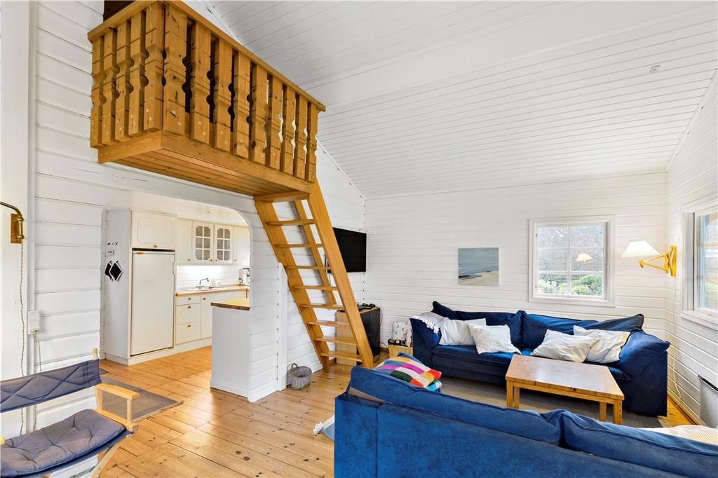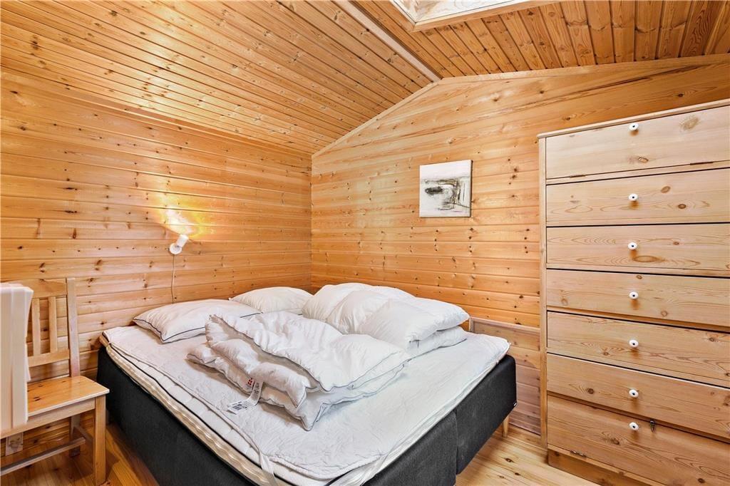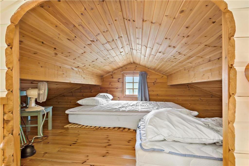 Sovepladserne er fordelt på to værelser med komfortable dobbeltsenge og en hyggelig hems med to enkeltsenge, perfekte til en rolig nats søvn. Badeværelset byder på et dejligt brusebad og toilet.