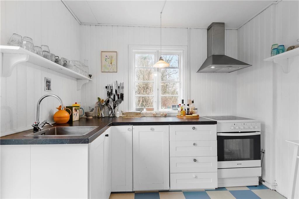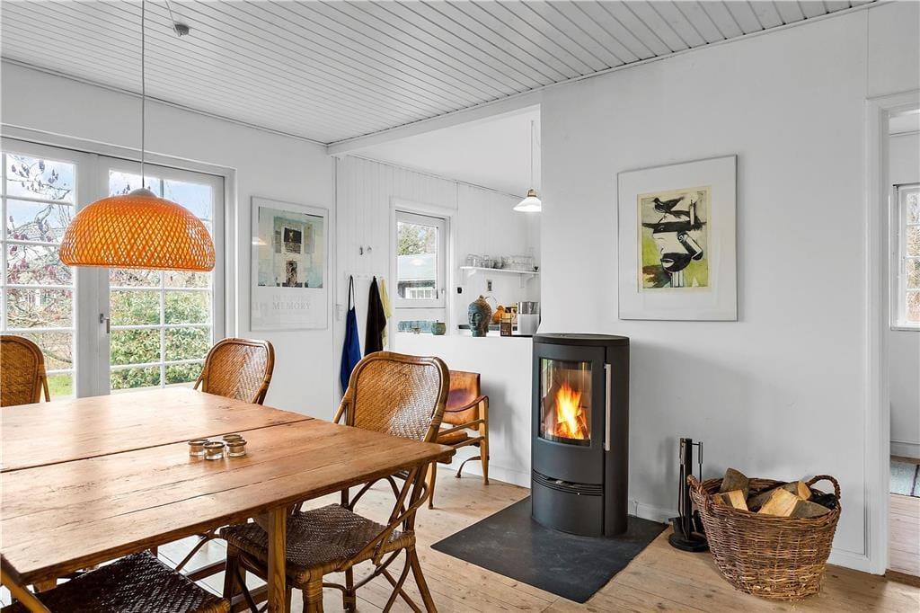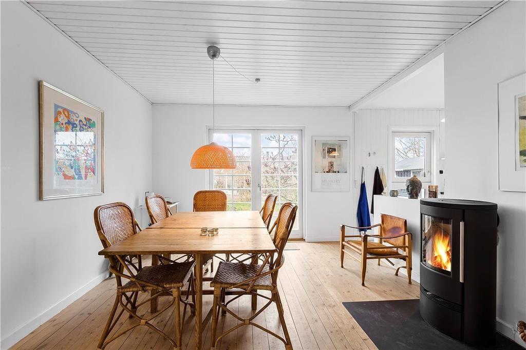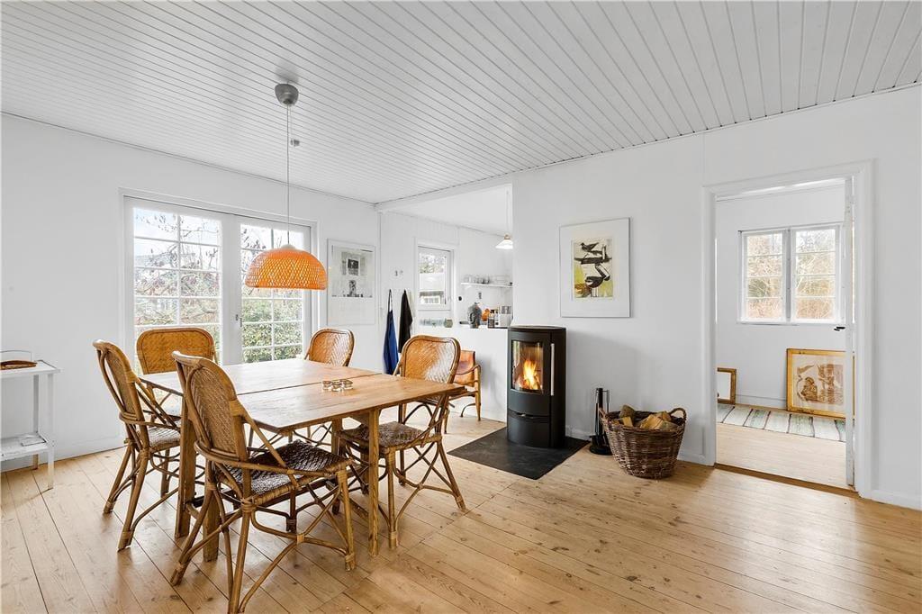 Den lille, hyggelige opholdsstue byder på en komfortabel sofa med udsigt til haven gennem store vinduer, der lader solens stråler fylde rummet. Køkkenet ligger i åben forbindelse med spisepladsen, hvilket gør det nemt at være en del af samtalen, mens du tilbereder lækre måltider. Ved spisebordet kan I nyde dagens måltider, lægge puslespil eller spille brætspil med hele familien. Fra spisestuen er der direkte udgang til terrassen, hvor du nemt kan tage kaffen med ud og nyde morgenstilheden i den friske luft.