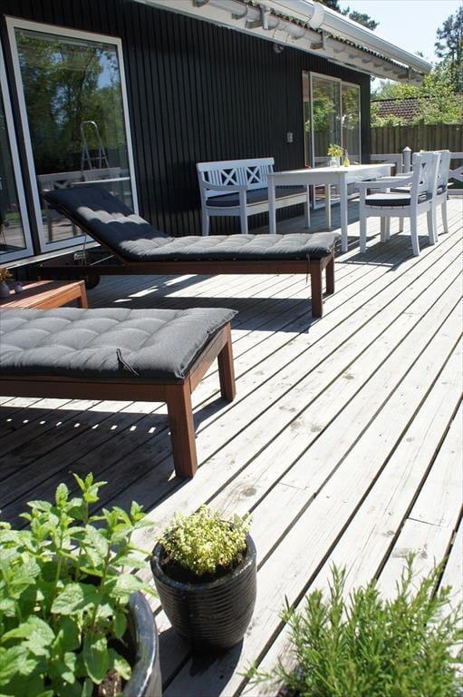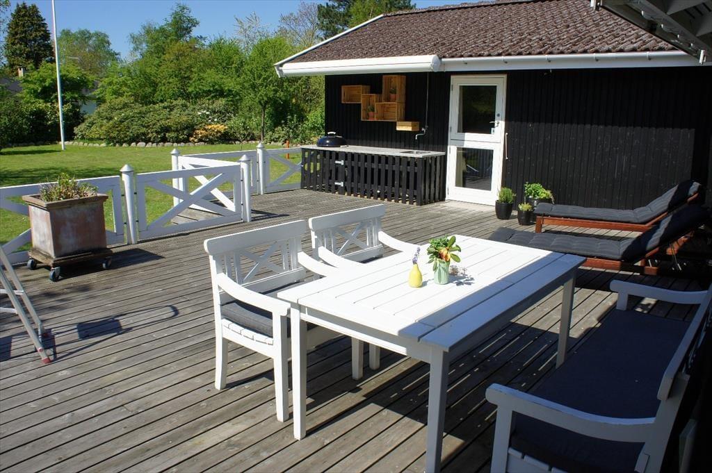Her kan I samles med familien og nyde roen i en velholdt og ugeneret have. Haven er et lille paradis for afslapning. Den store, lukkede have giver både fred og privatliv, og den solrige terrasse er ideel til afslappende stunder med en god bog eller en kop kaffe. Med udekøkken og gasgrill kan I lave lækre måltider under åben himmel. Den udendørs bruser er perfekt efter en dag ved stranden. Forestil jer at sidde på terrassen med solen i ansigtet, en kølig drik i hånden, mens I lytter til fuglenes kvidren og nyder de lange sommeraftener.