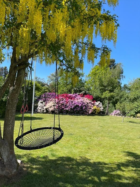 Her er der masser af plads til at børnene kan lege, mens de voksne slapper af.